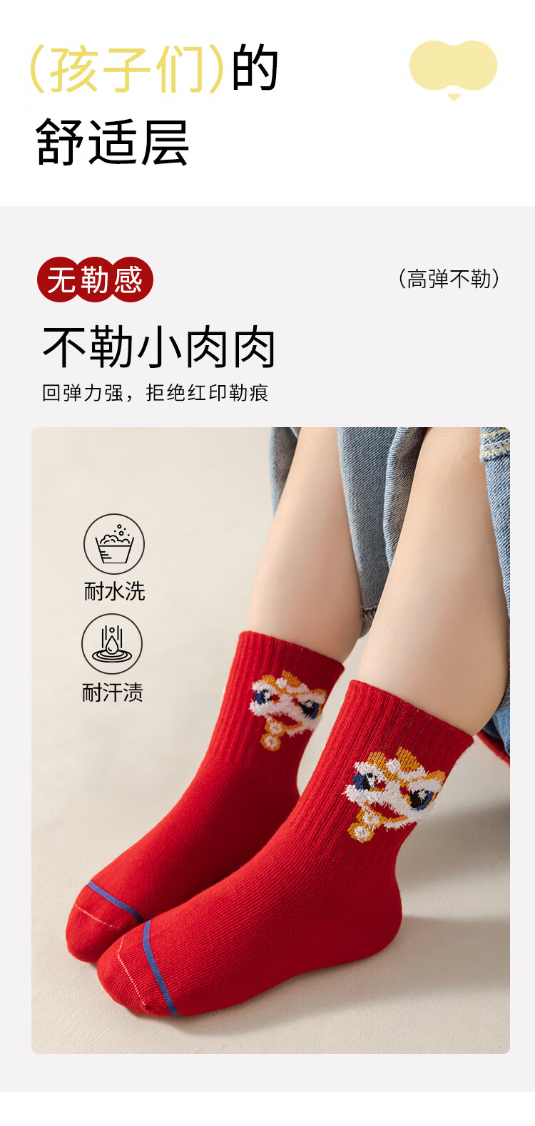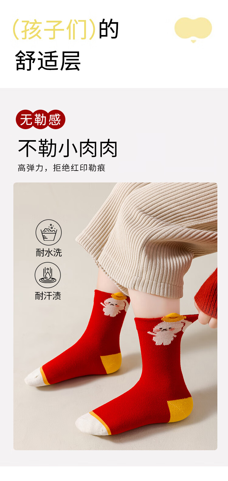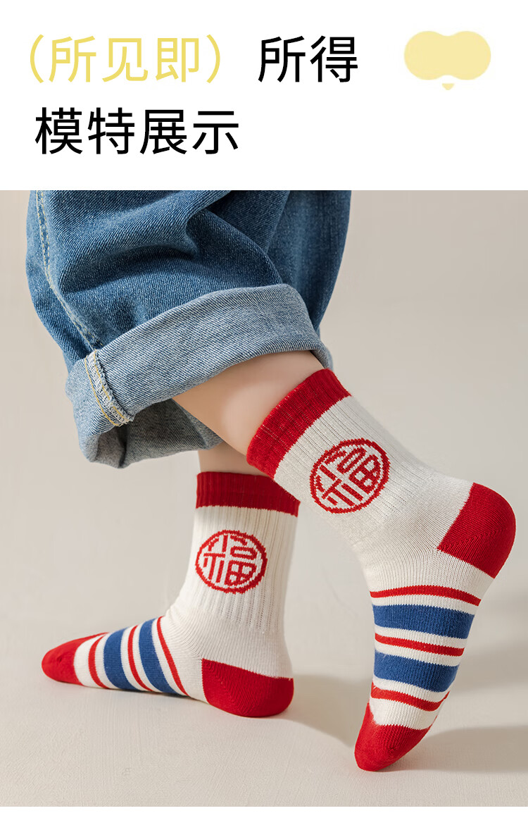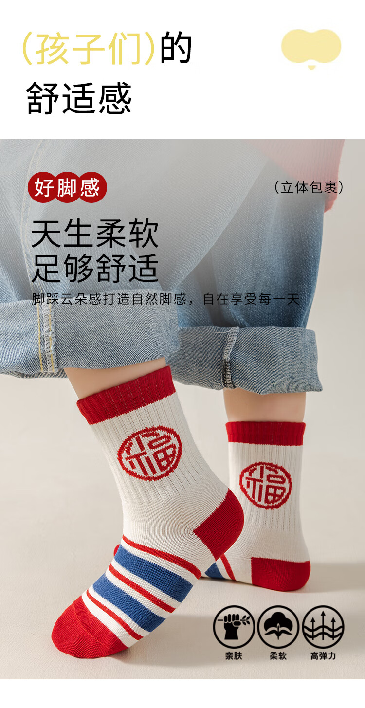 卡拉美拉(Caramella)儿童袜子女童男童秋冬款棉袜红色中筒袜亲肤透气可爱卡通休闲袜 男童红袜5色 5双 1-3岁 (S)