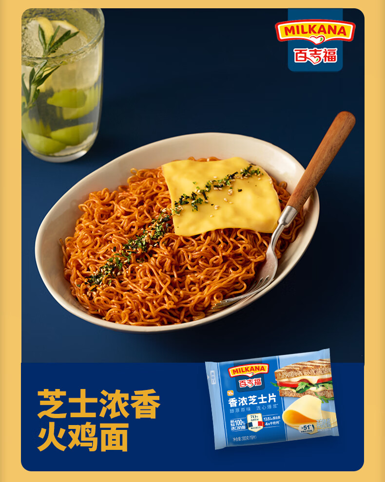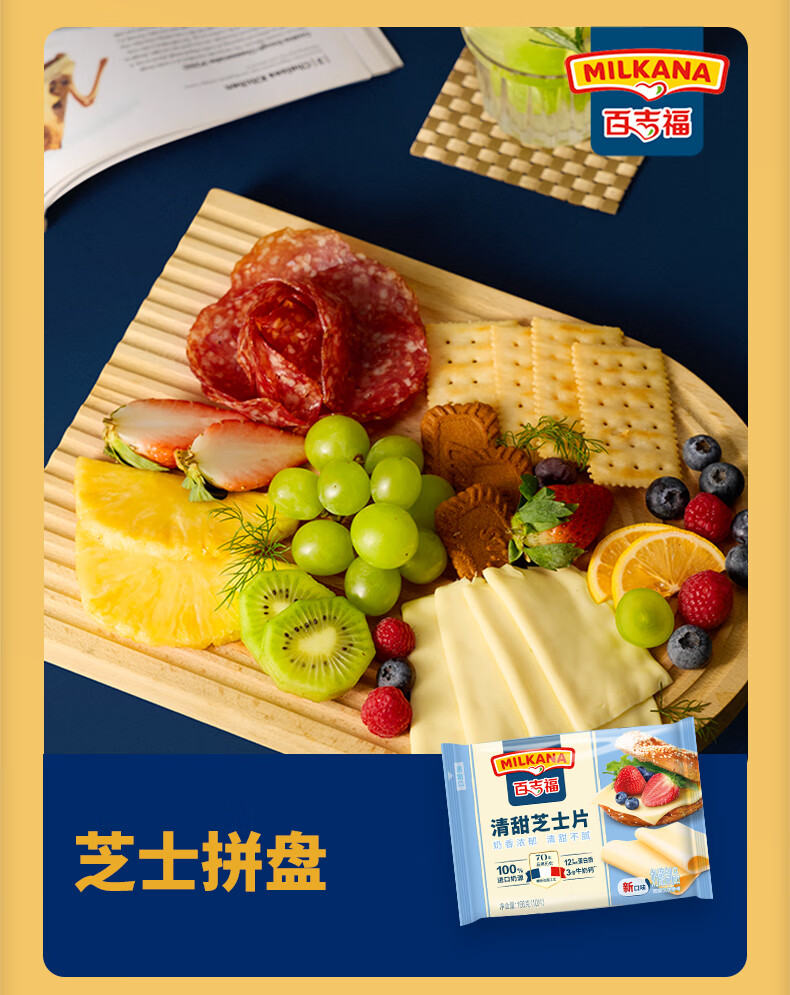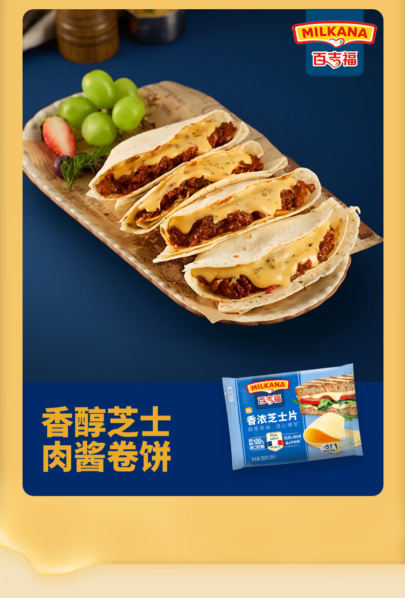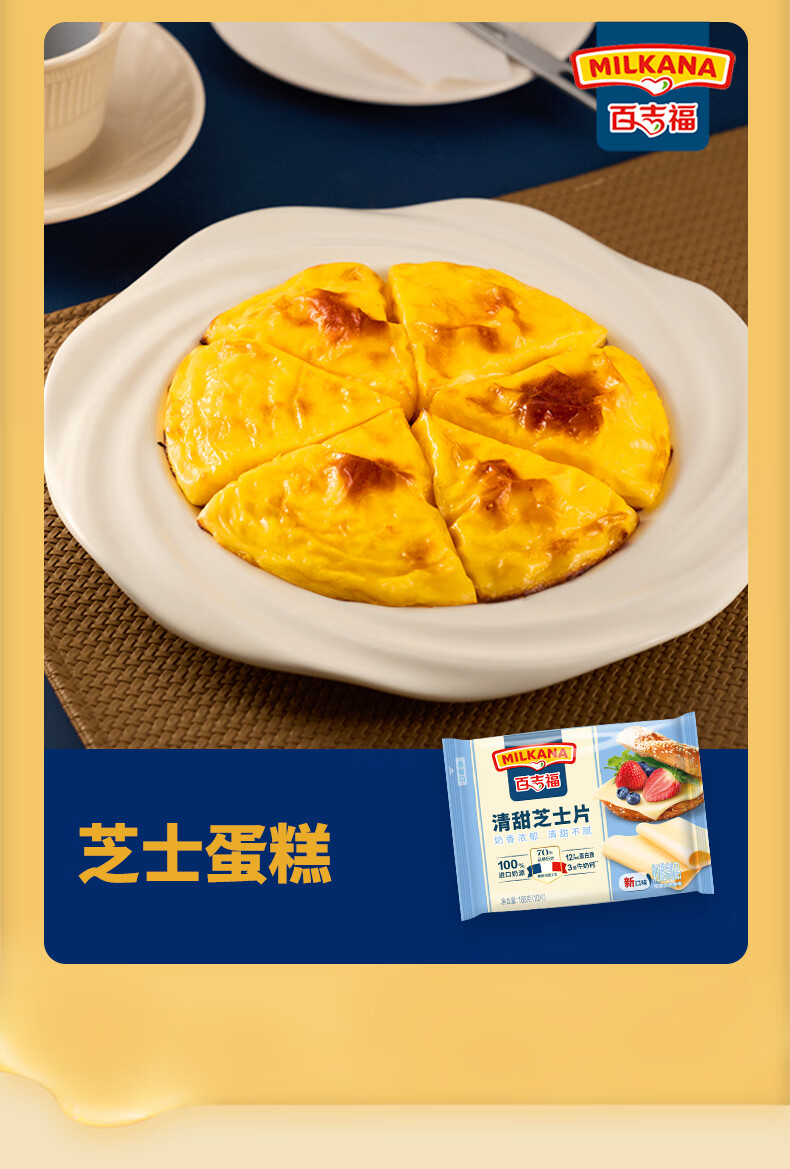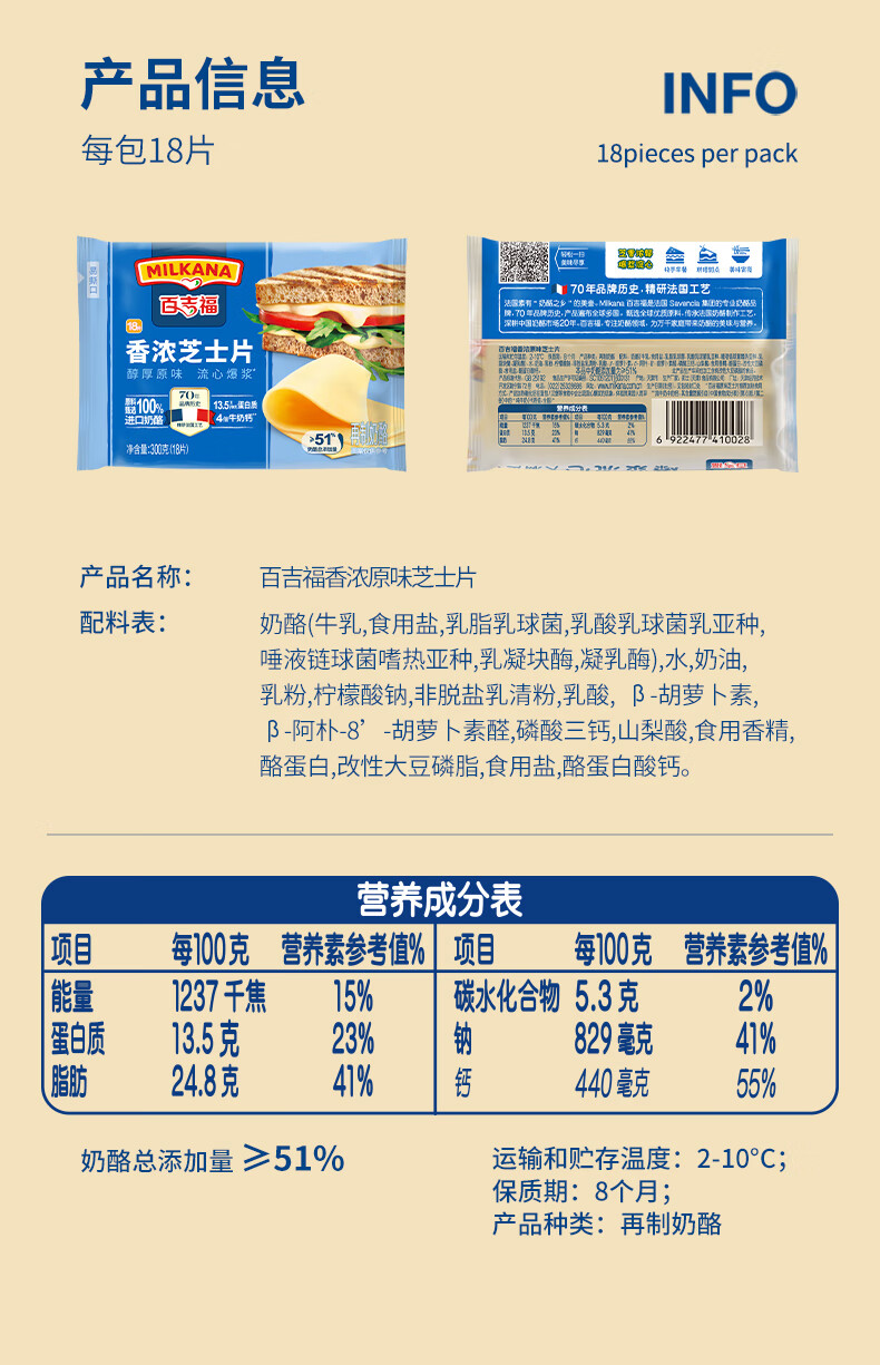 百吉福芝士片 ≥51%奶酪含量 早餐三明治汉堡烘焙原料 奶酪烘焙冷藏 166g减脂芝士片*2袋(共20片)