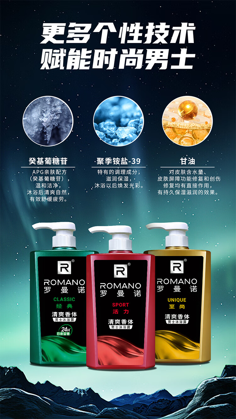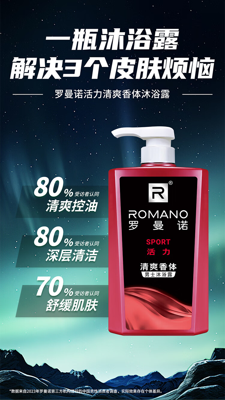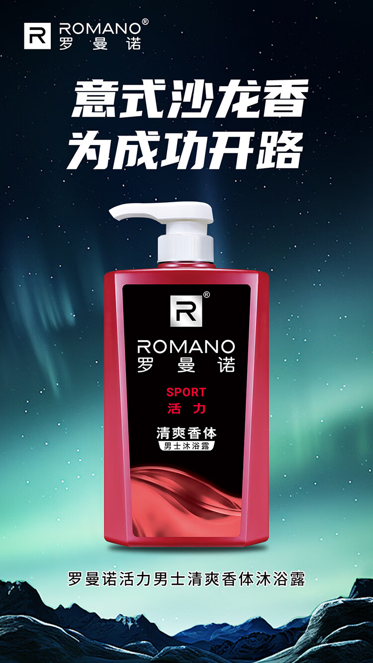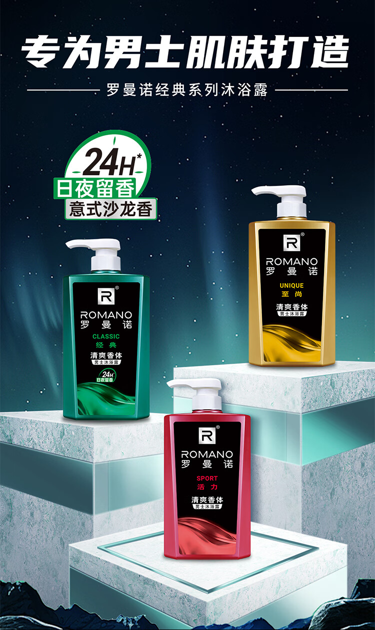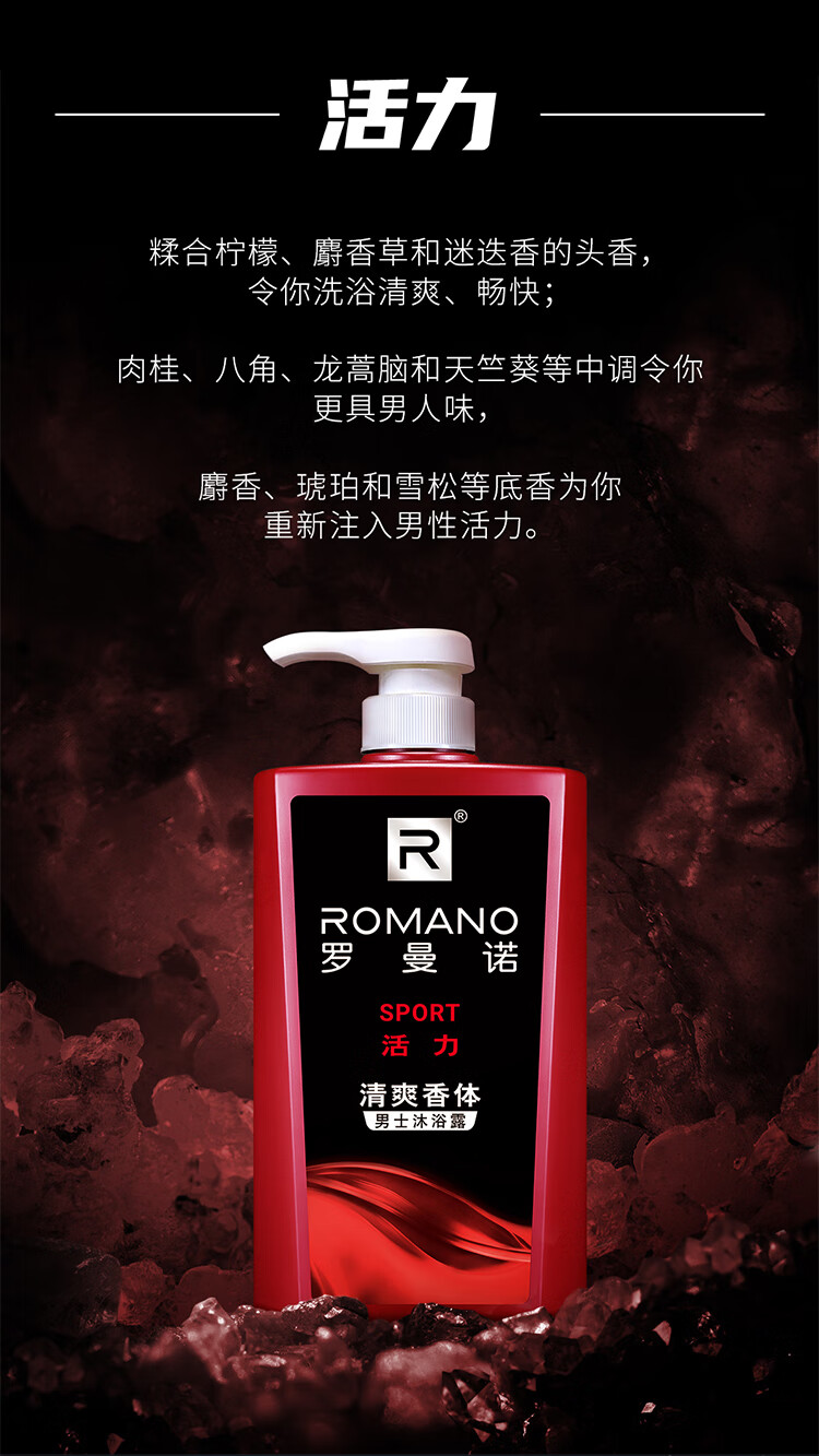 罗曼诺(ROMANO)沐浴露男士 持久留香滋润保湿香水沐浴乳 活力净爽醒肤600ml
