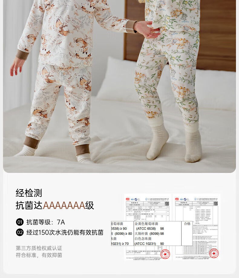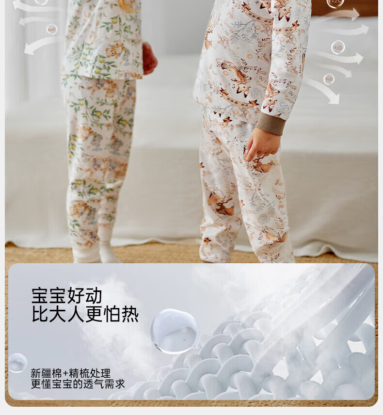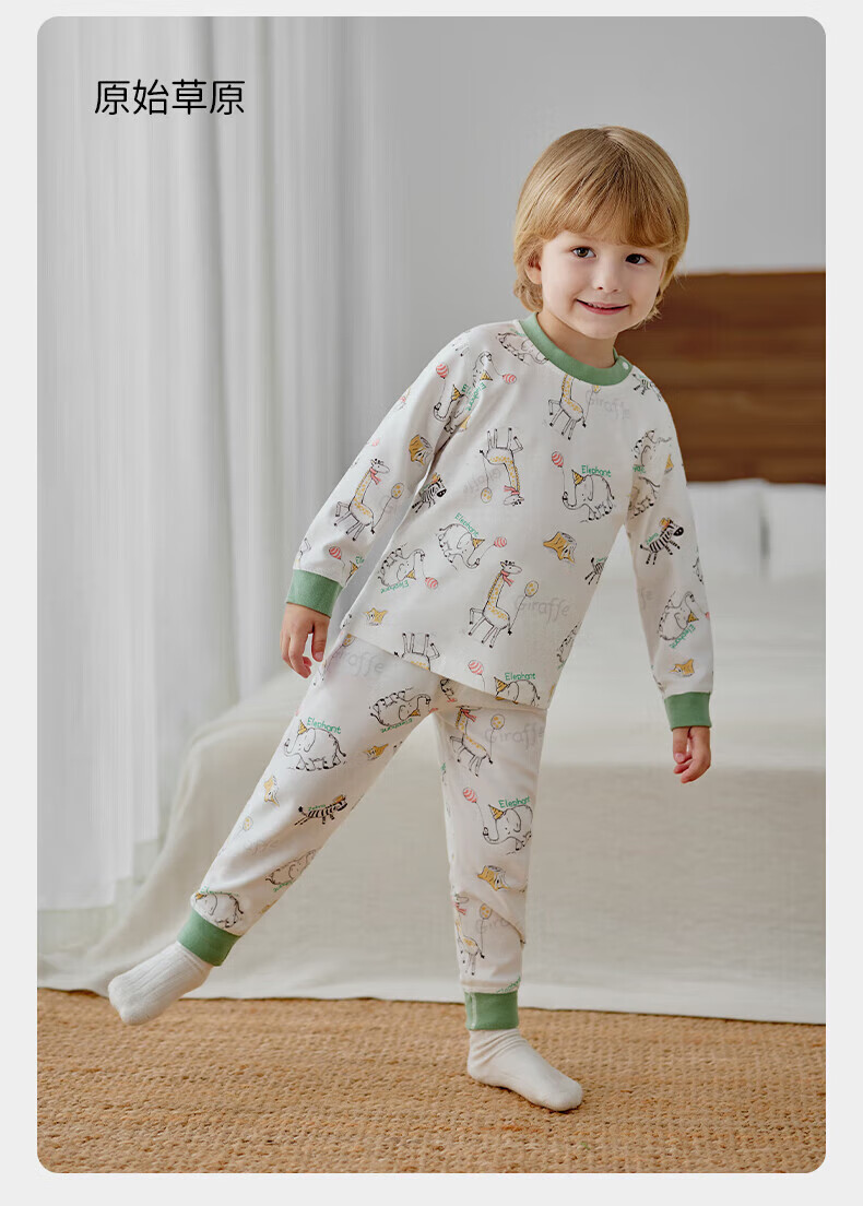 欧孕(OUYUN)儿童秋衣秋裤宝宝秋衣套装男童女童纯棉保暖内衣A类全棉睡衣 原始草原 【7A抗菌新疆棉】 110 【建议身高:105cm-115cm】