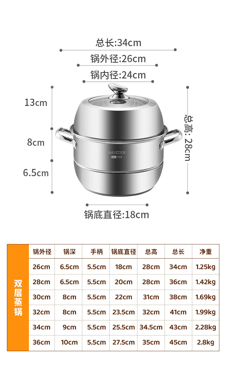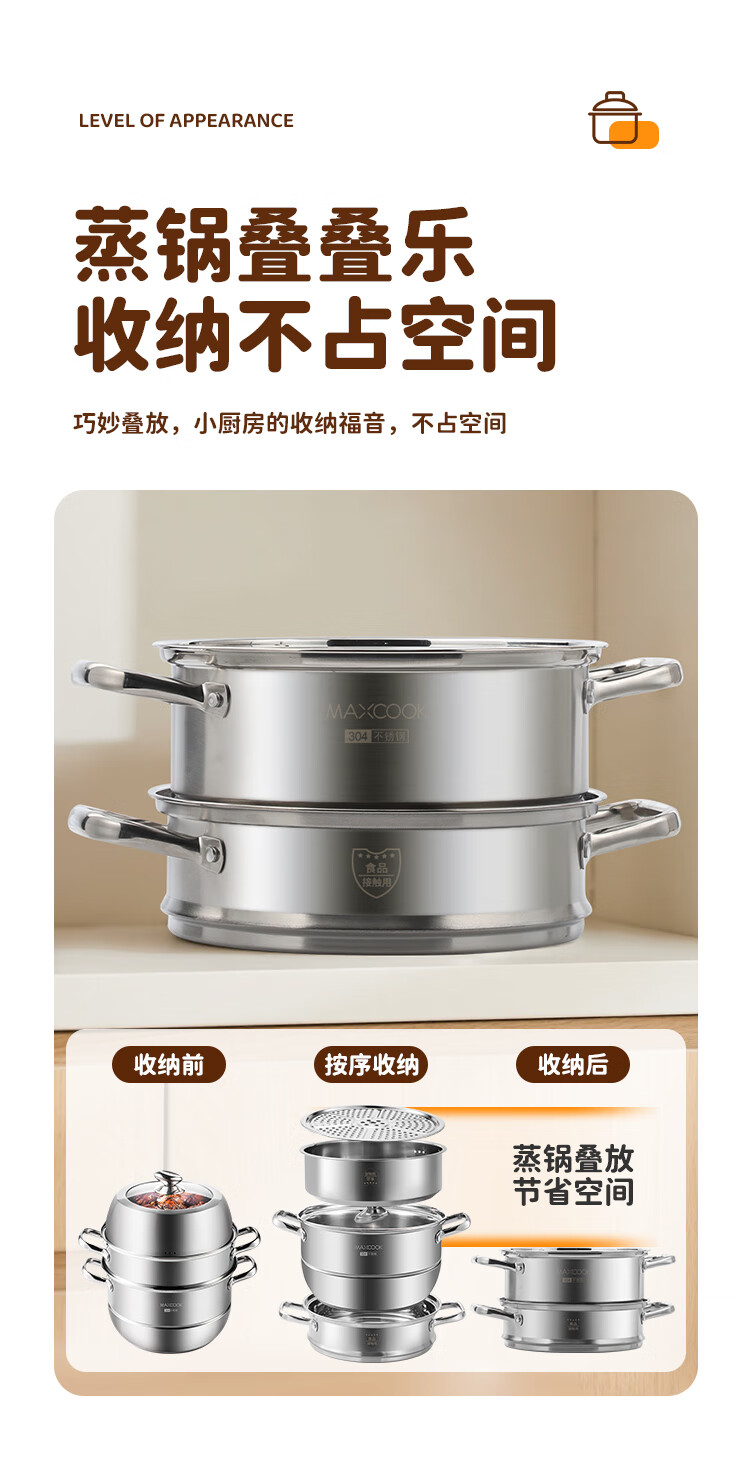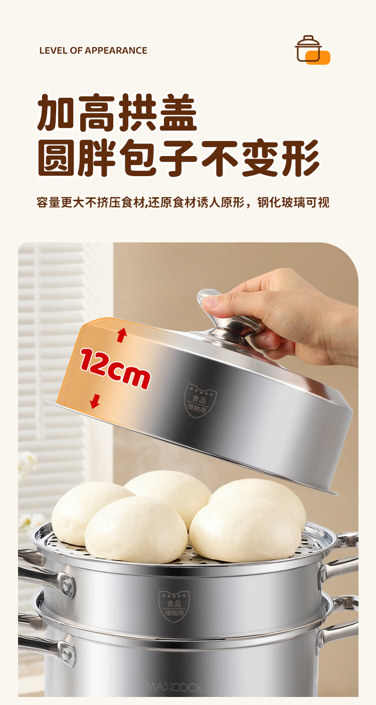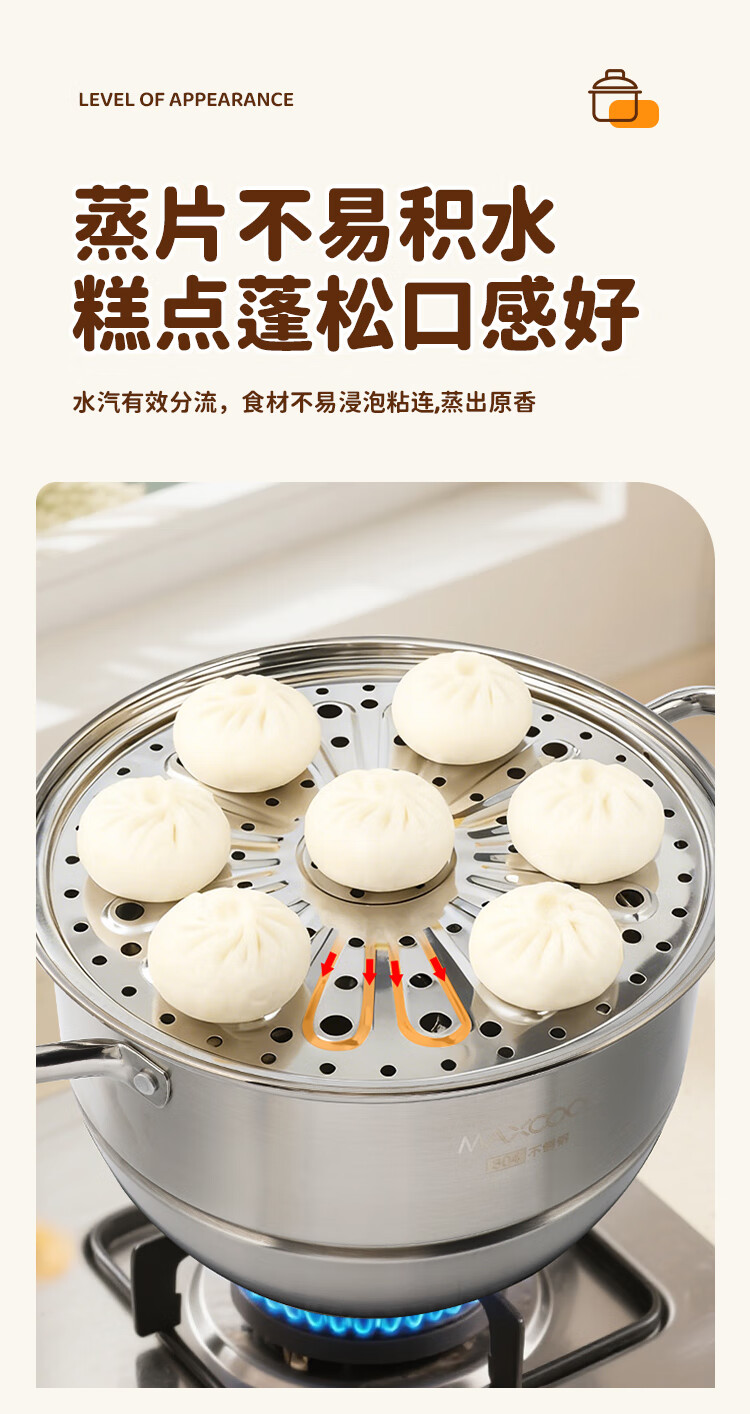 美厨(MAXCOOK)蒸锅 304不锈钢30CM三层蒸锅 加厚复底汤锅 燃气电磁炉通用