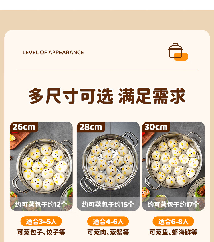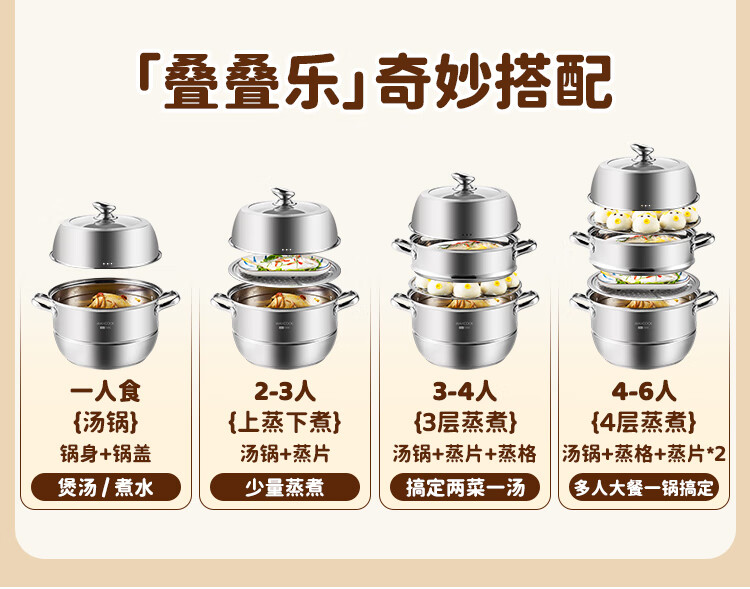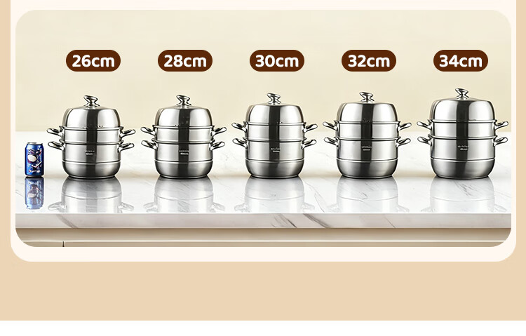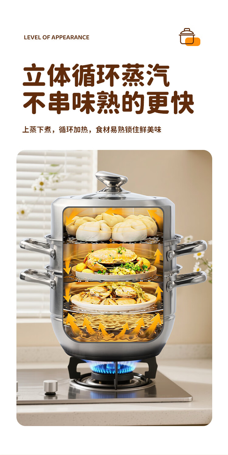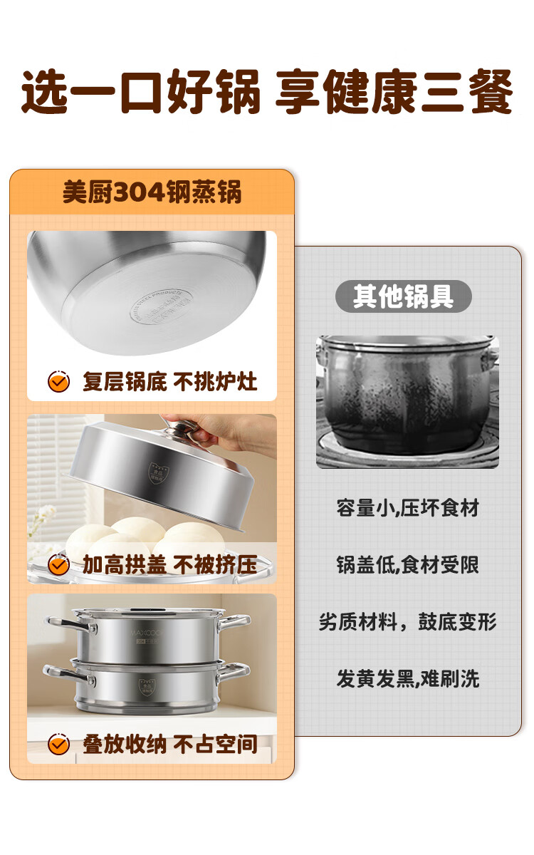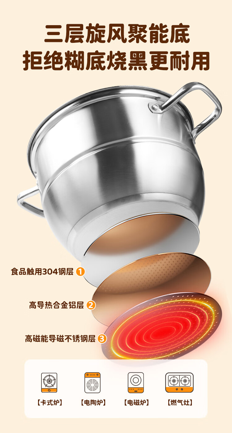 美厨(MAXCOOK)蒸锅 304不锈钢30CM三层蒸锅 加厚复底汤锅 燃气电磁炉通用