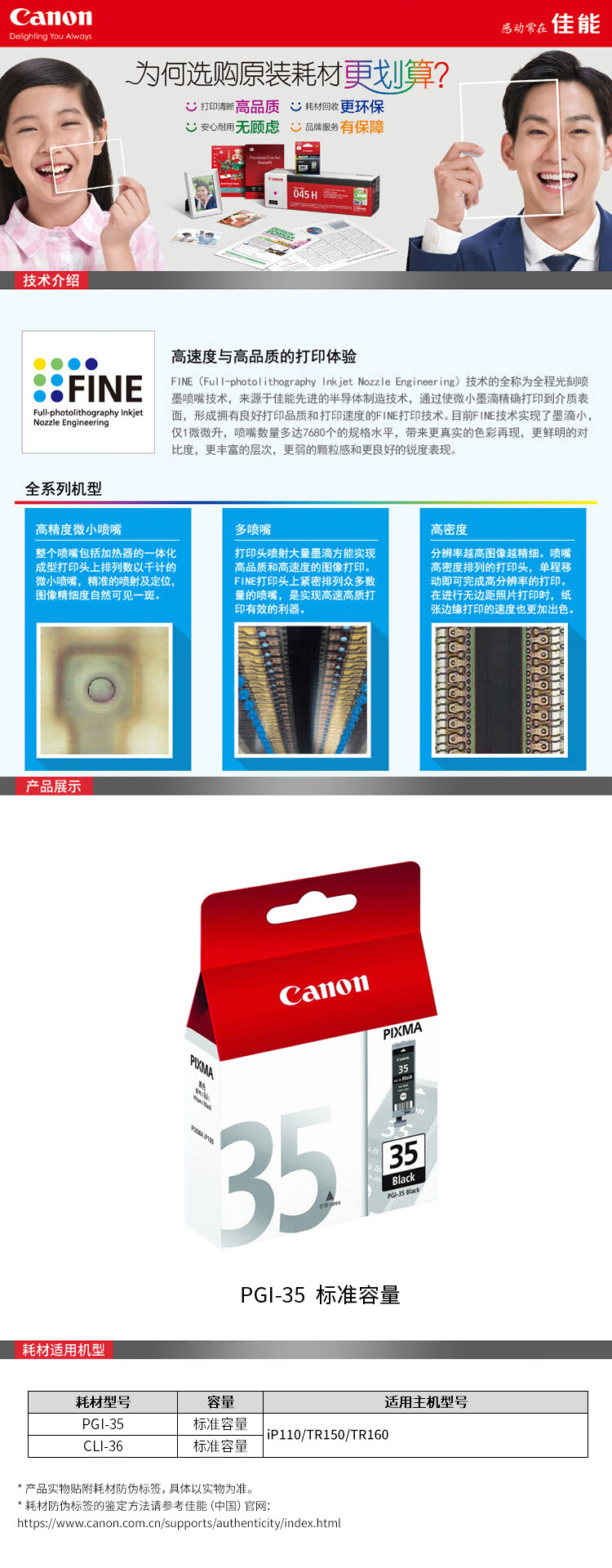 佳能(Canon)PGI-35 黑色墨盒(适用iP110/TR150/TR160)
