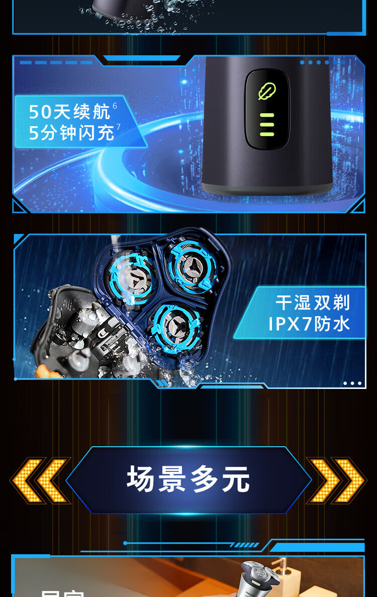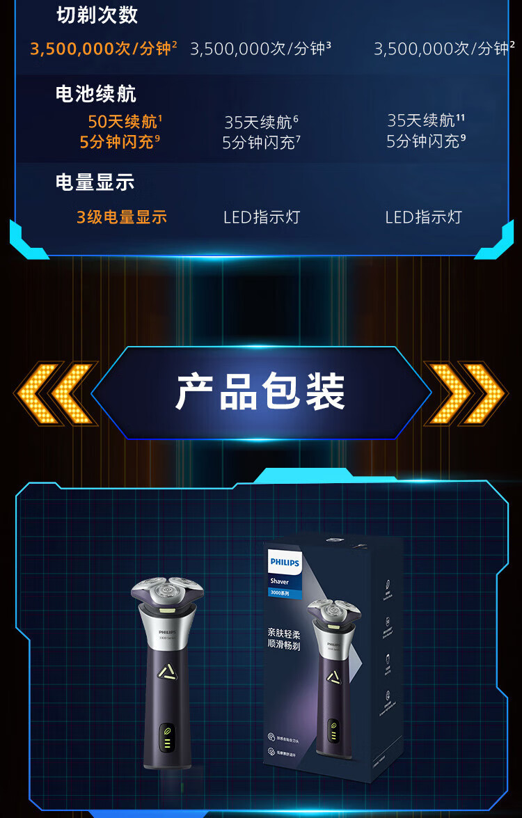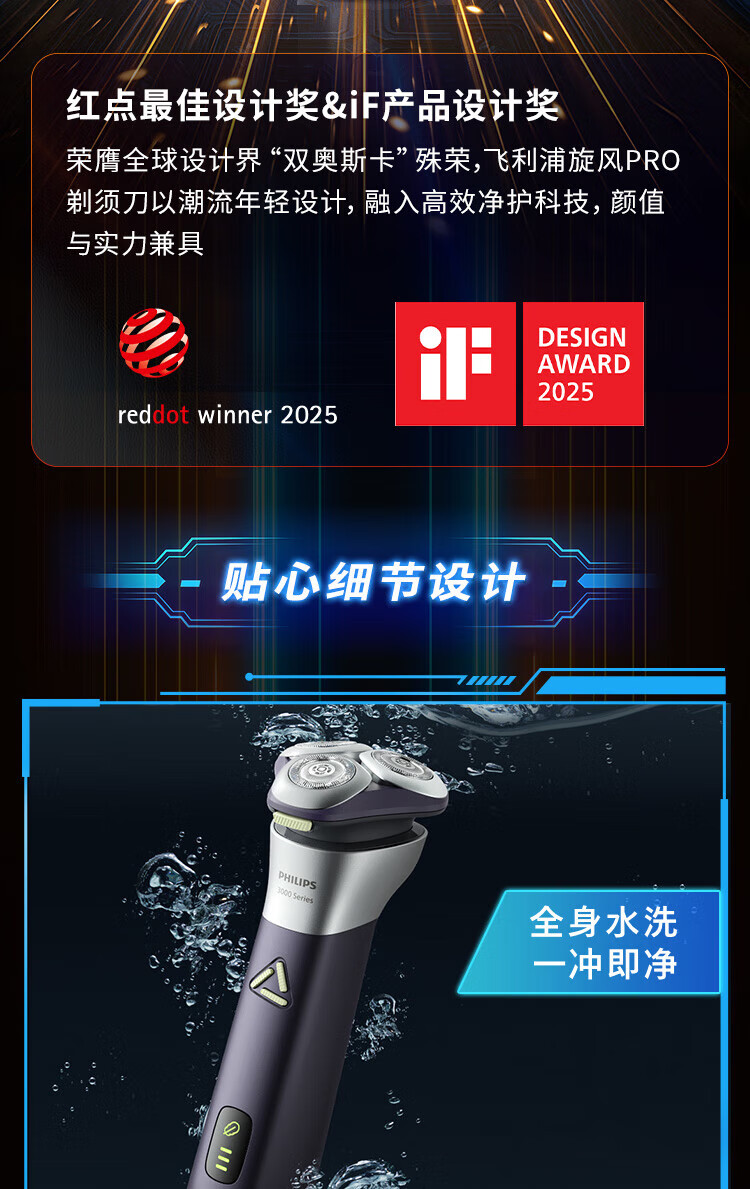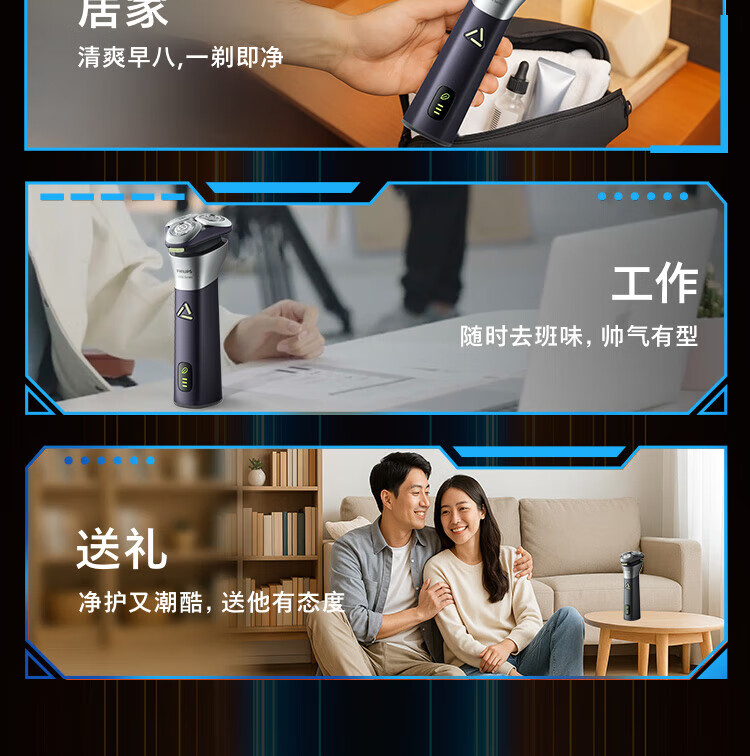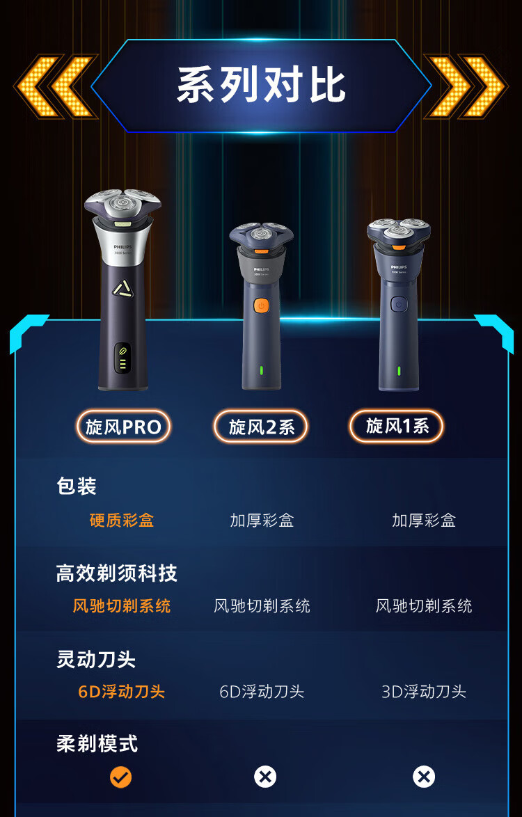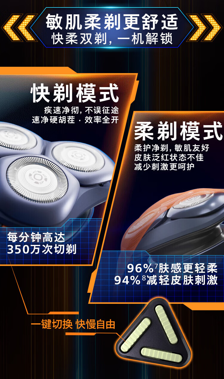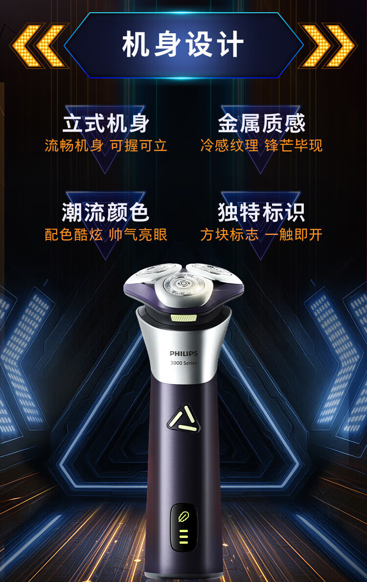飞利浦电动剃须刀电动3系旋风PRO刮胡刀电动胡须刀剃胡刀生日礼物送男士/男生实用圣诞节平安夜礼物 【旋风般速剃丨超长续航】深紫色S3885