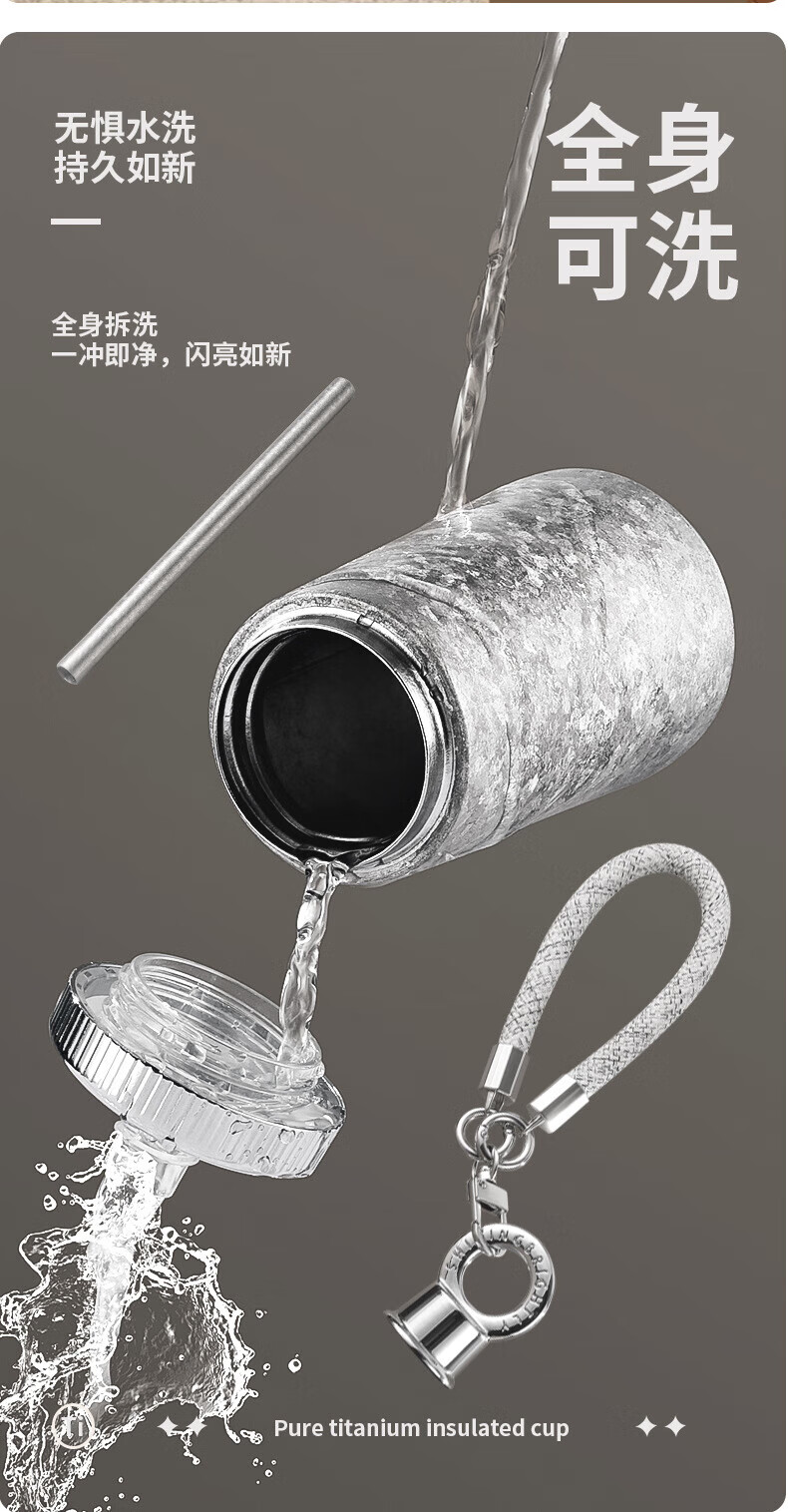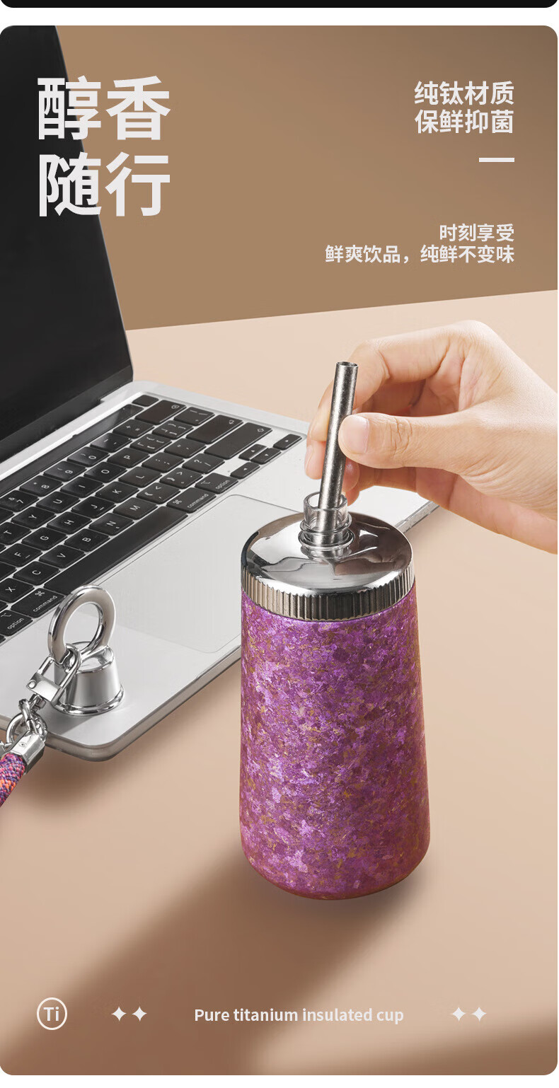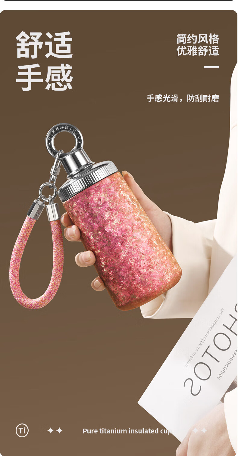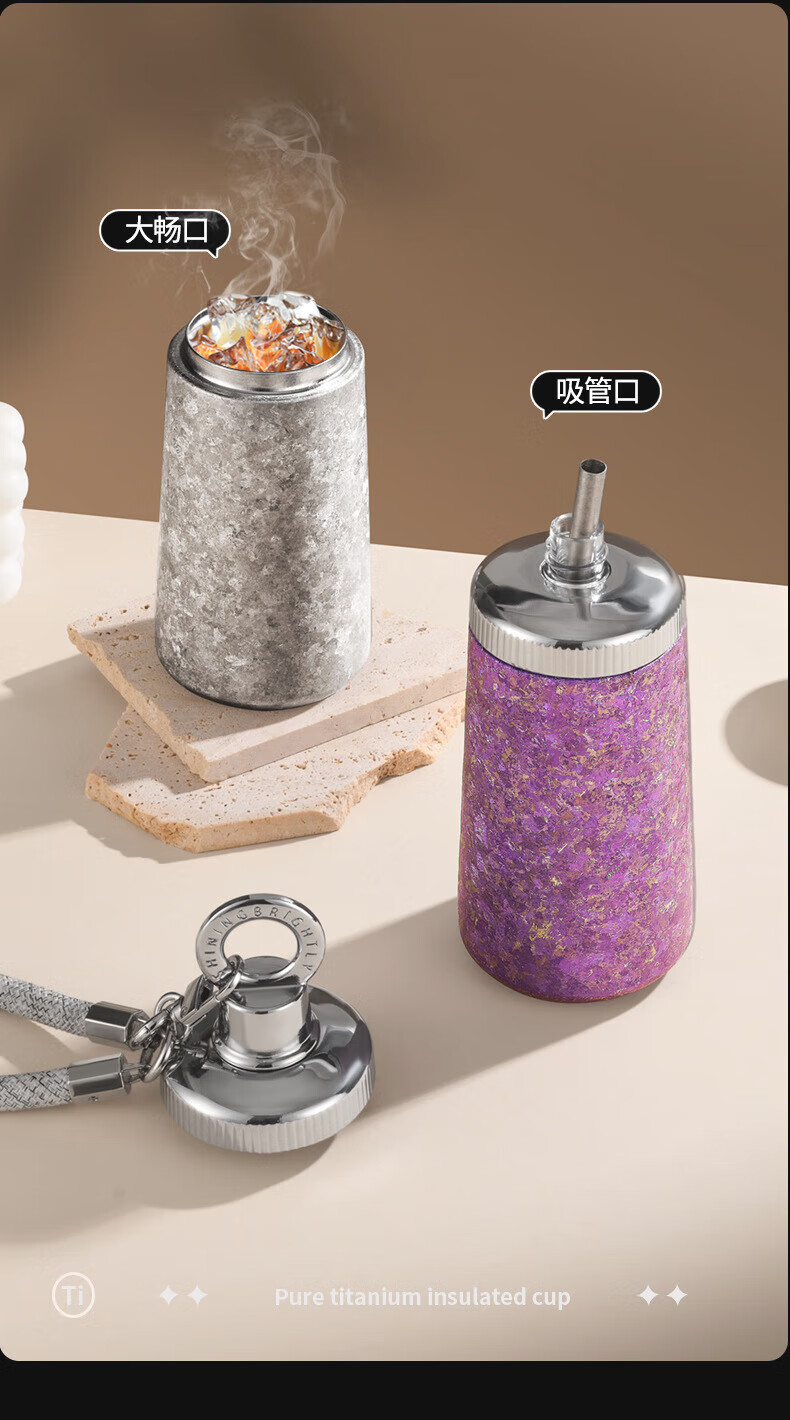 WFFPM德国品牌纯钛女神杯女生高颜值保温杯带吸管钛杯女生闺蜜生日礼物 皓月银300ml 20*8.5cm