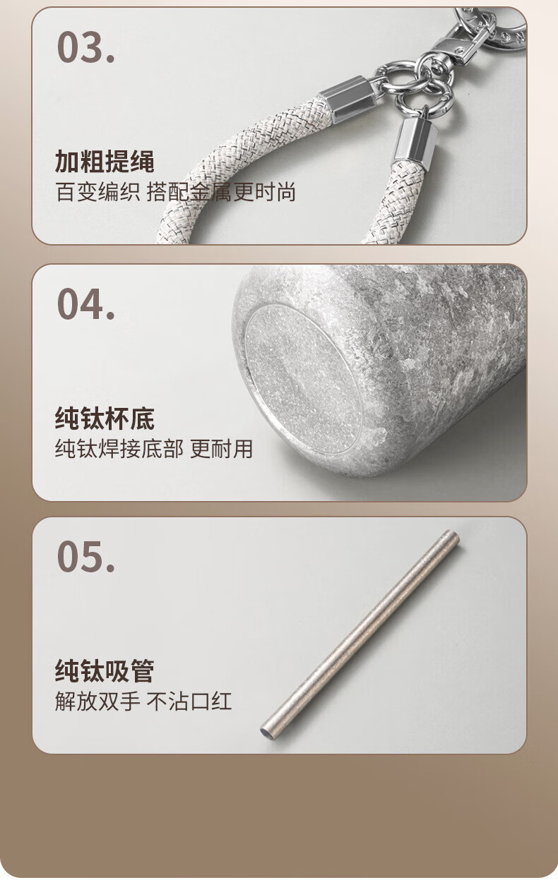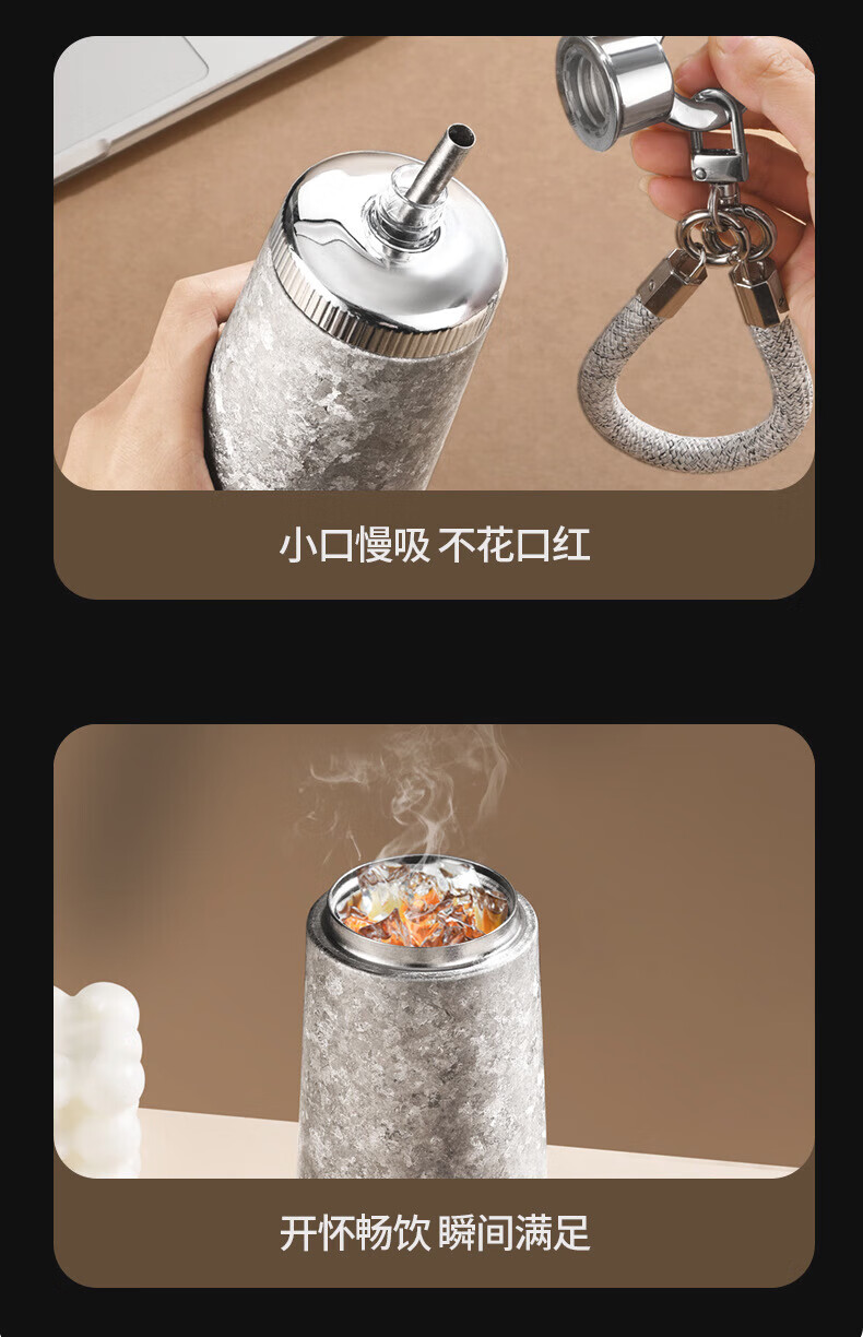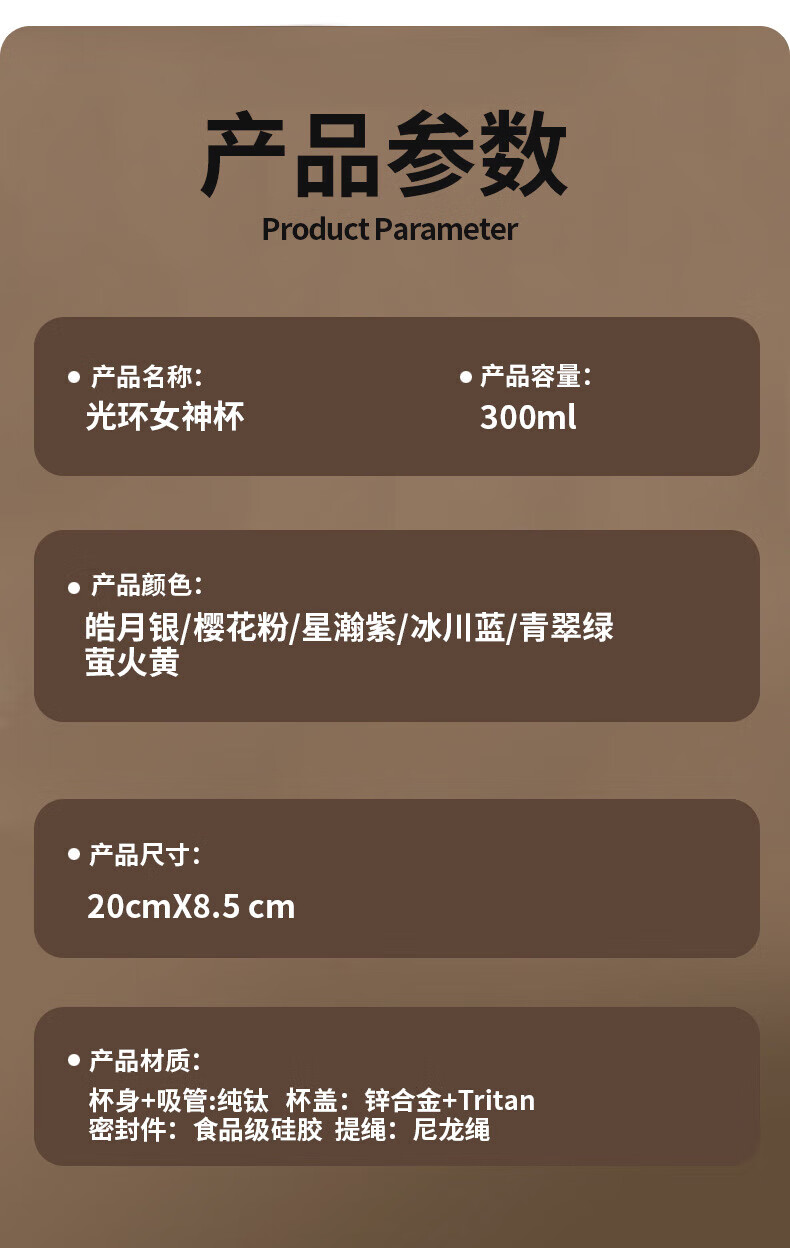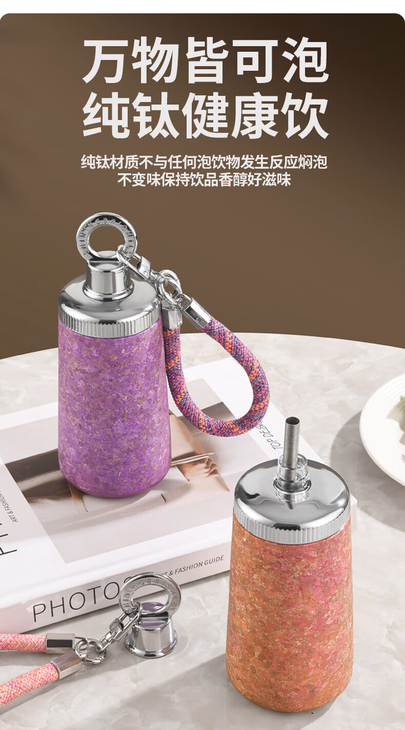 WFFPM德国品牌纯钛女神杯女生高颜值保温杯带吸管钛杯女生闺蜜生日礼物 皓月银300ml 20*8.5cm