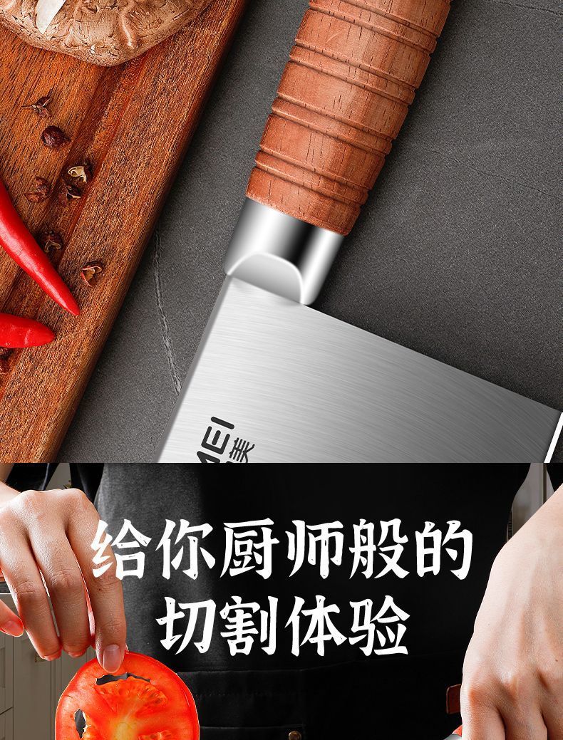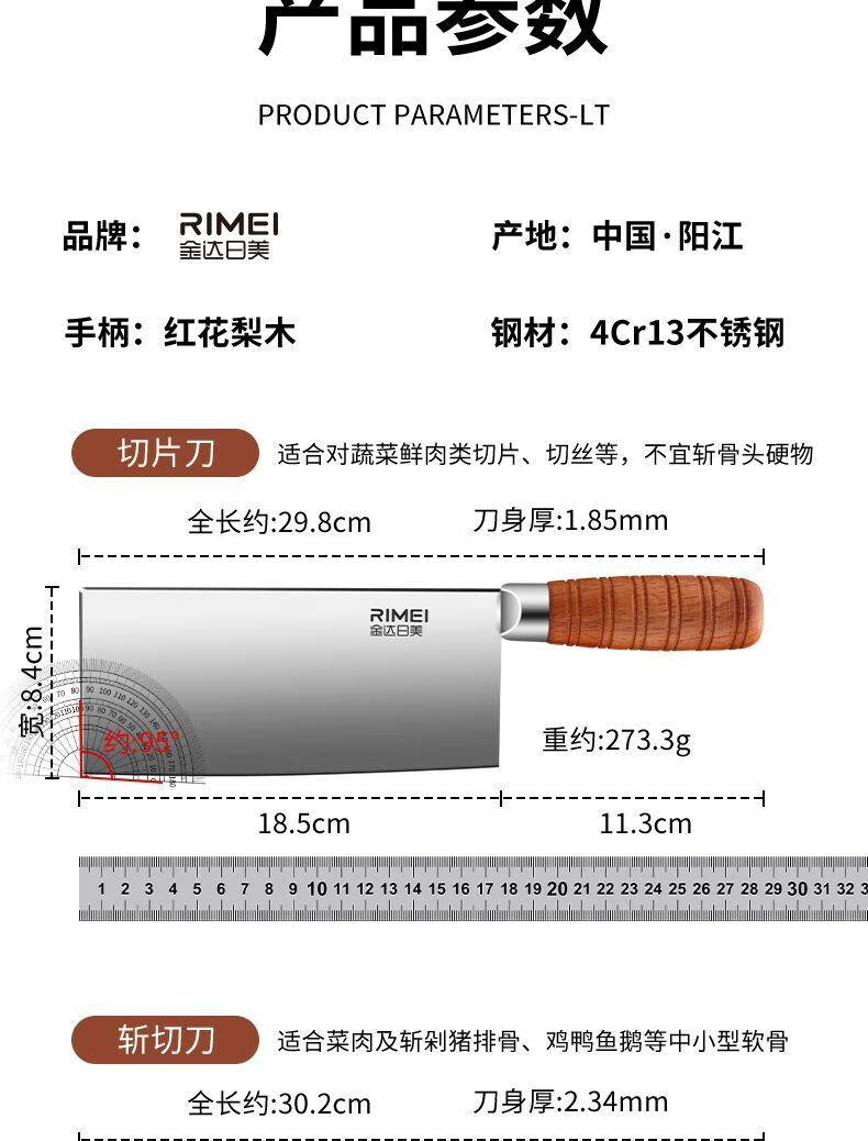 金达日美菜刀家用不锈钢厨房切菜切肉两用斩切刀切片刀厨师专用斩骨头菜刀 RIMEI-中式|斩切刀【前切后砍两用】