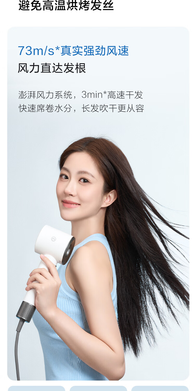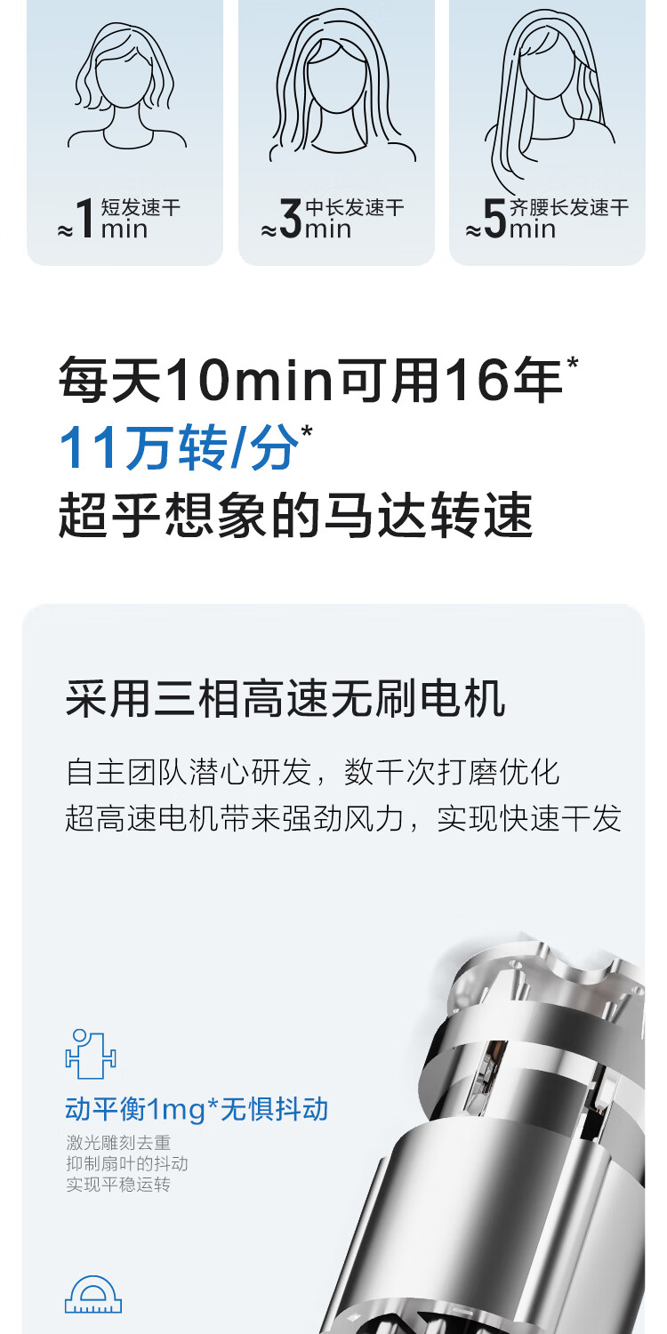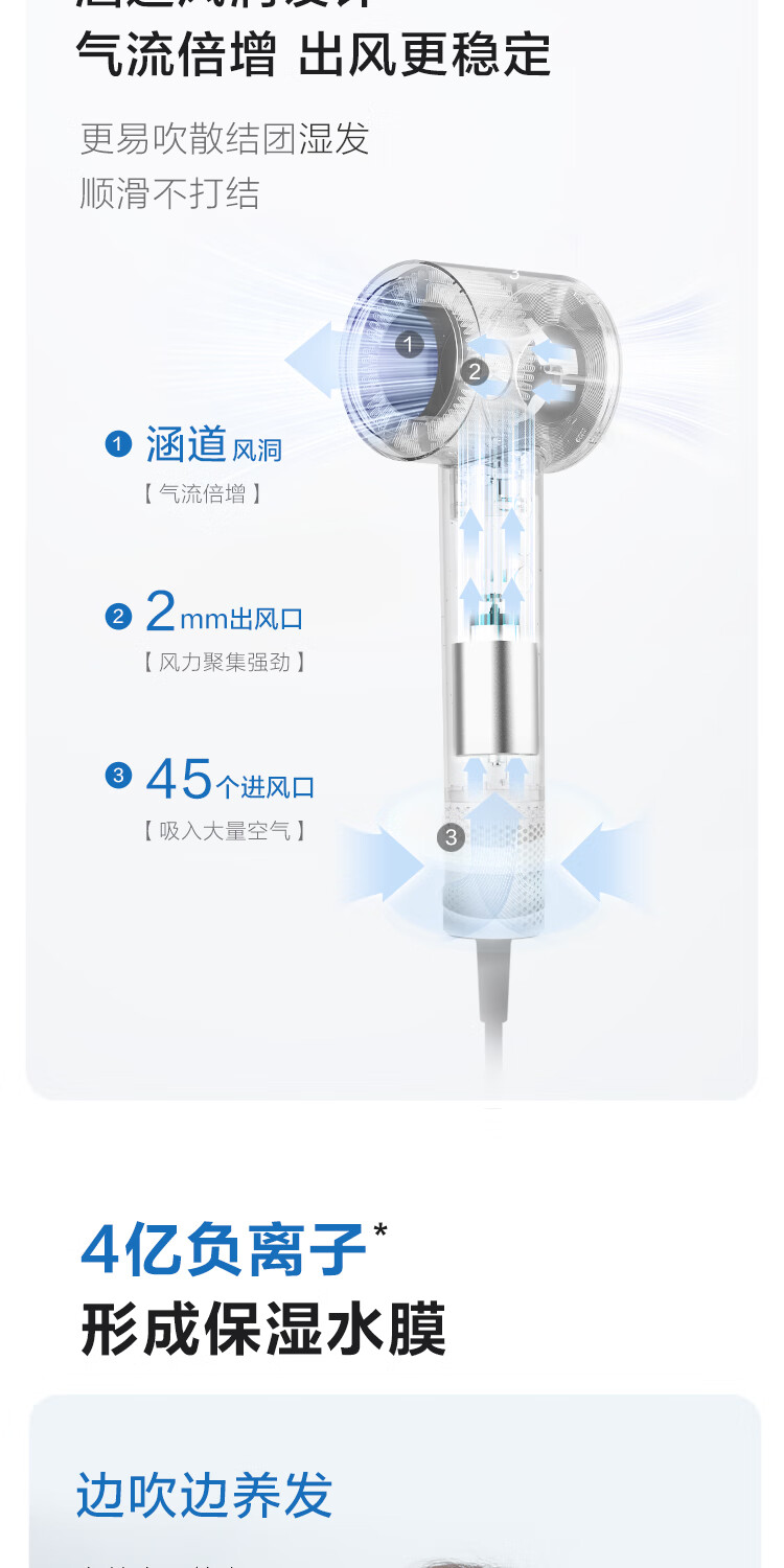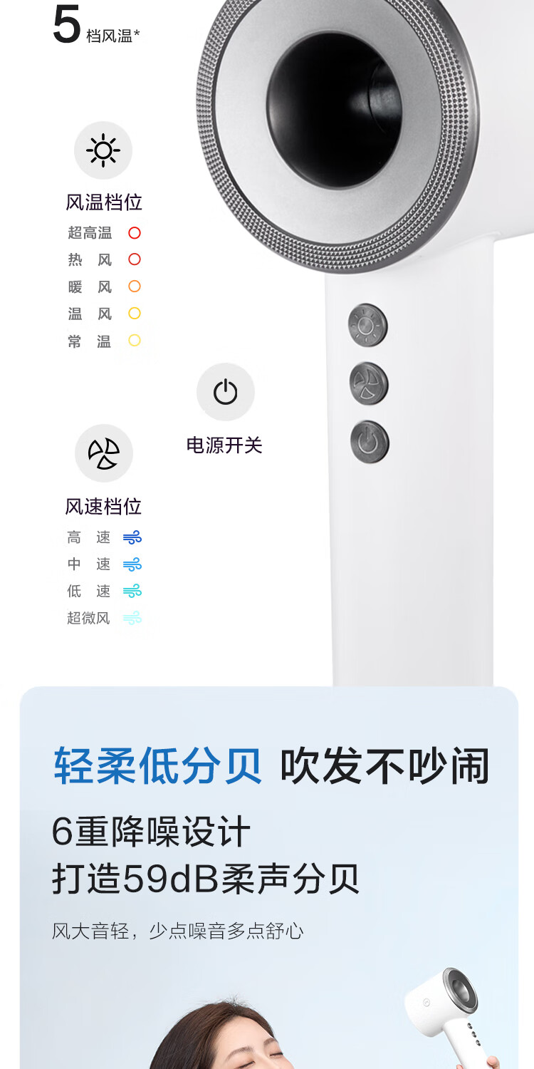 1号会员店(One's Member)高速电吹风 家用负离子护发吹风机速干大功率风筒京东自营礼物推荐 OM01-W 白露银晨
