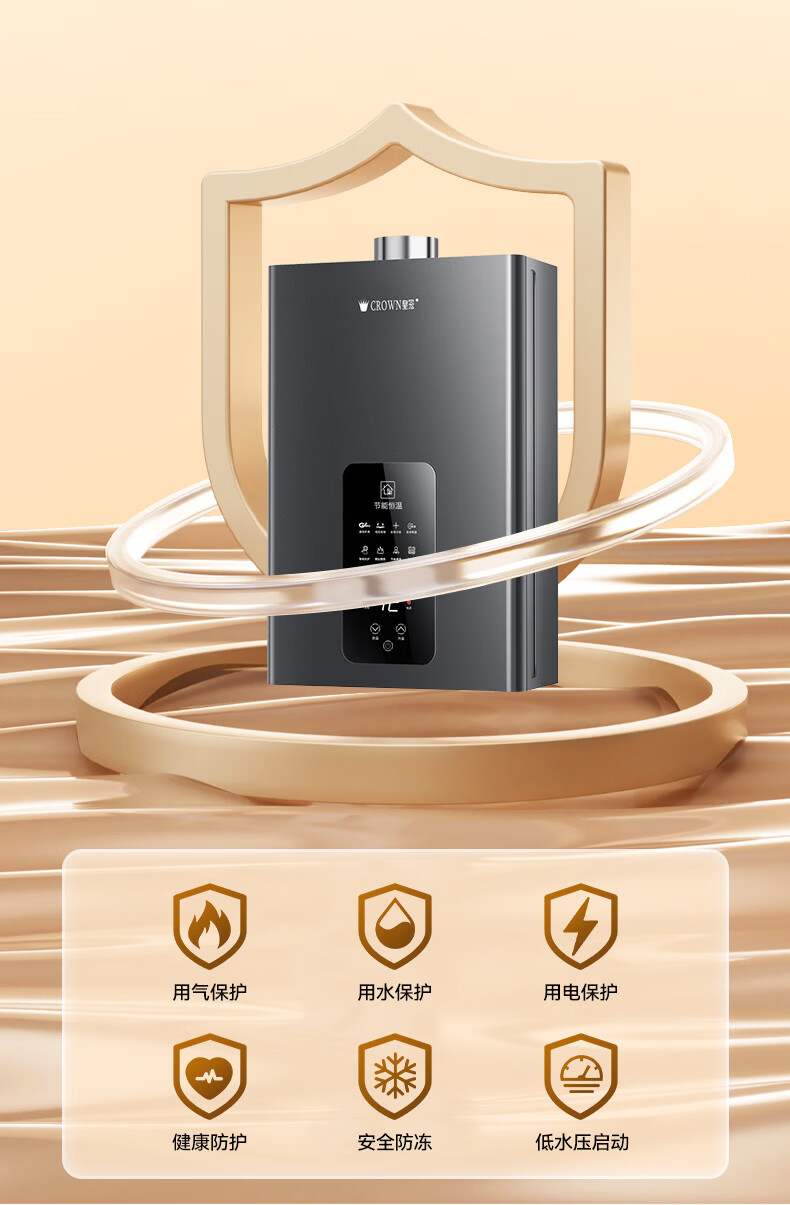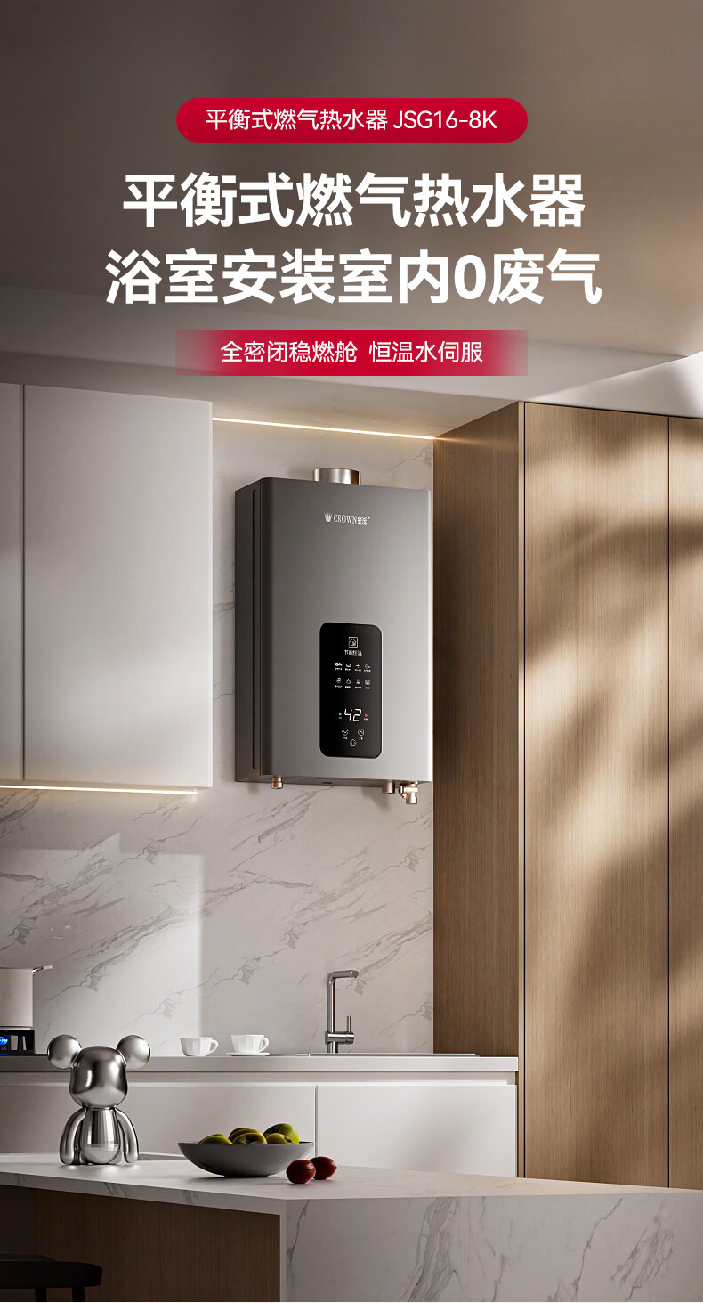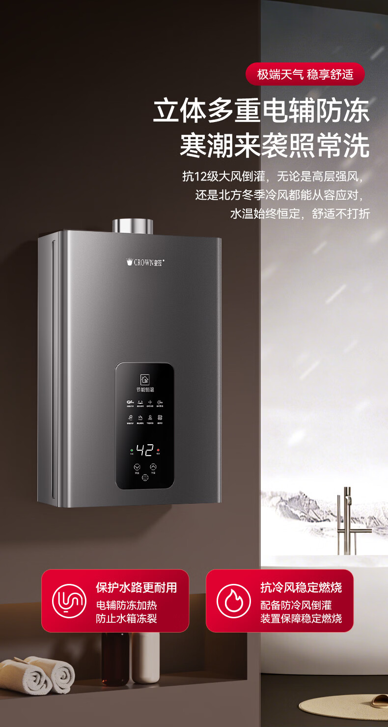 皇冠(CROWN)【浴室安装】平衡式燃气热水器燃气天然气8-12升家用智控增压水节能平衡机以旧换新10L 8L 液化气