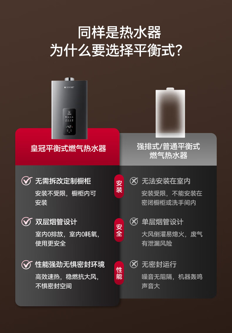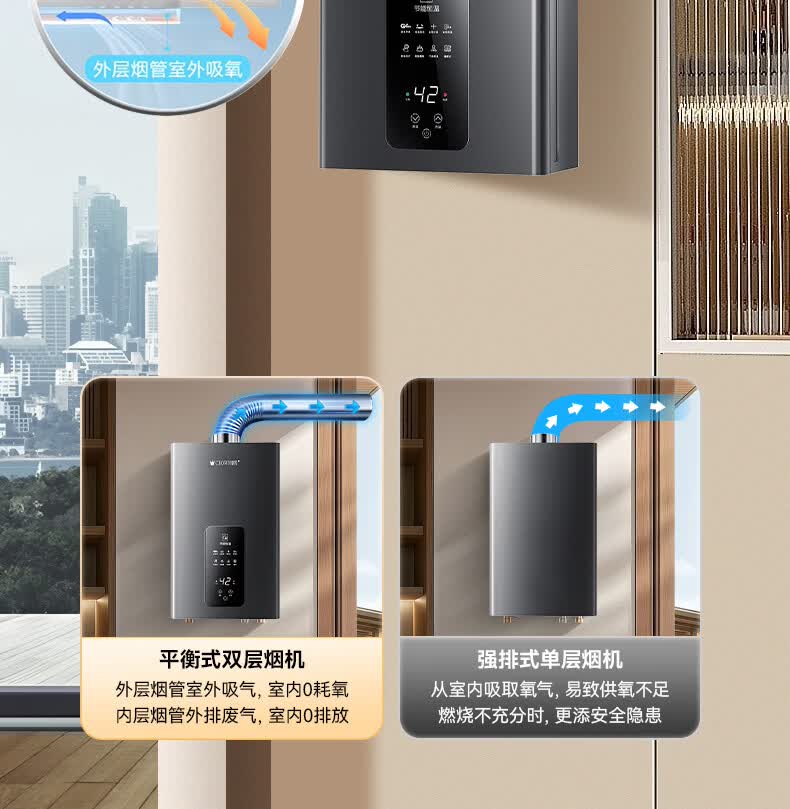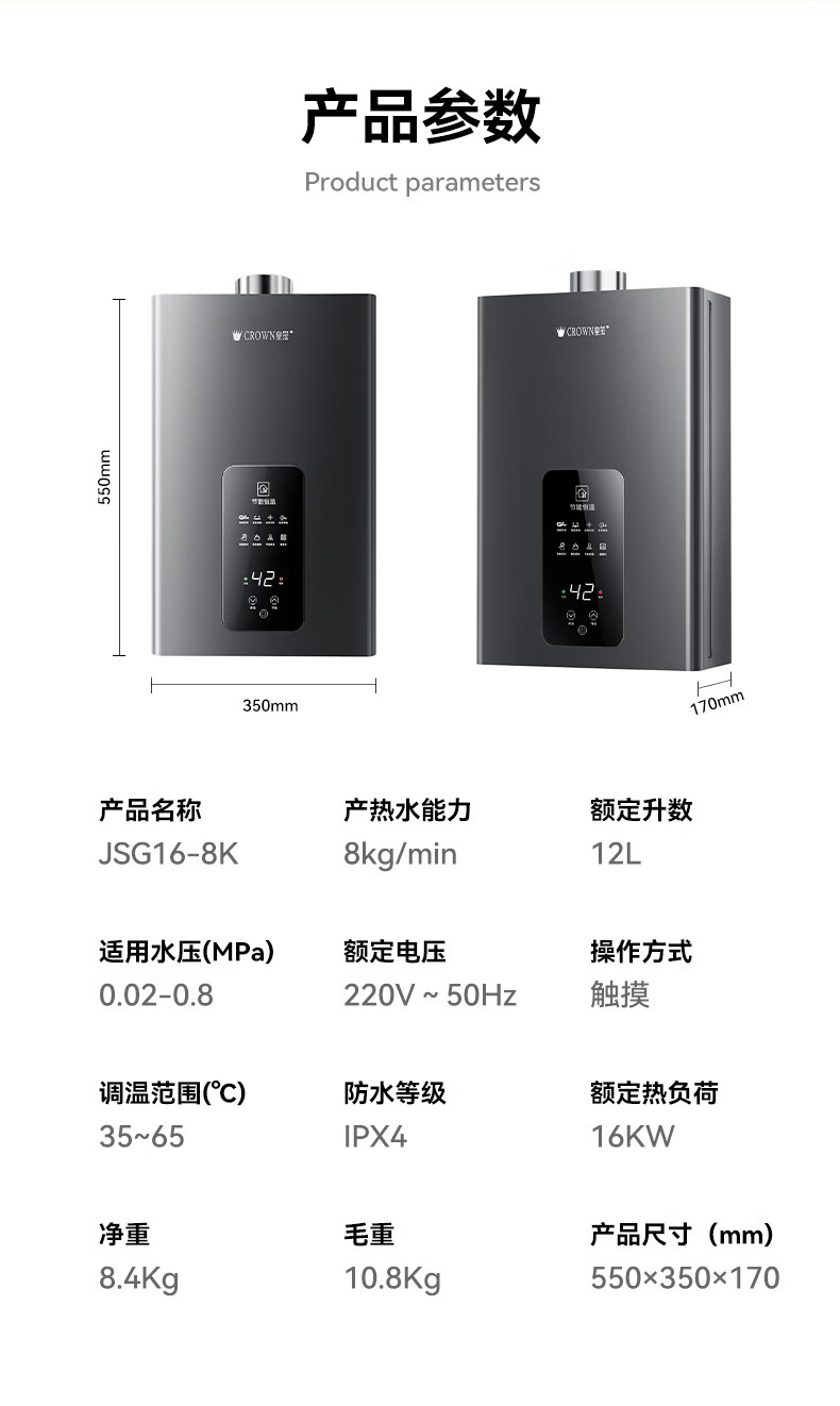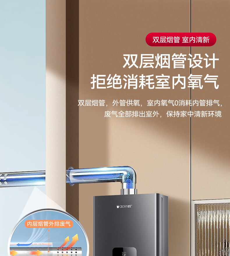 皇冠(CROWN)【浴室安装】平衡式燃气热水器燃气天然气8-12升家用智控增压水节能平衡机以旧换新10L 8L 液化气