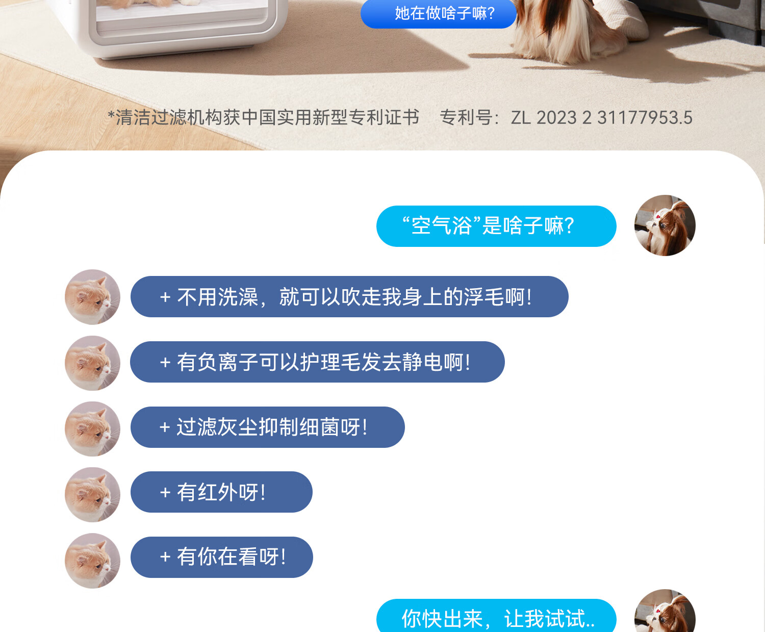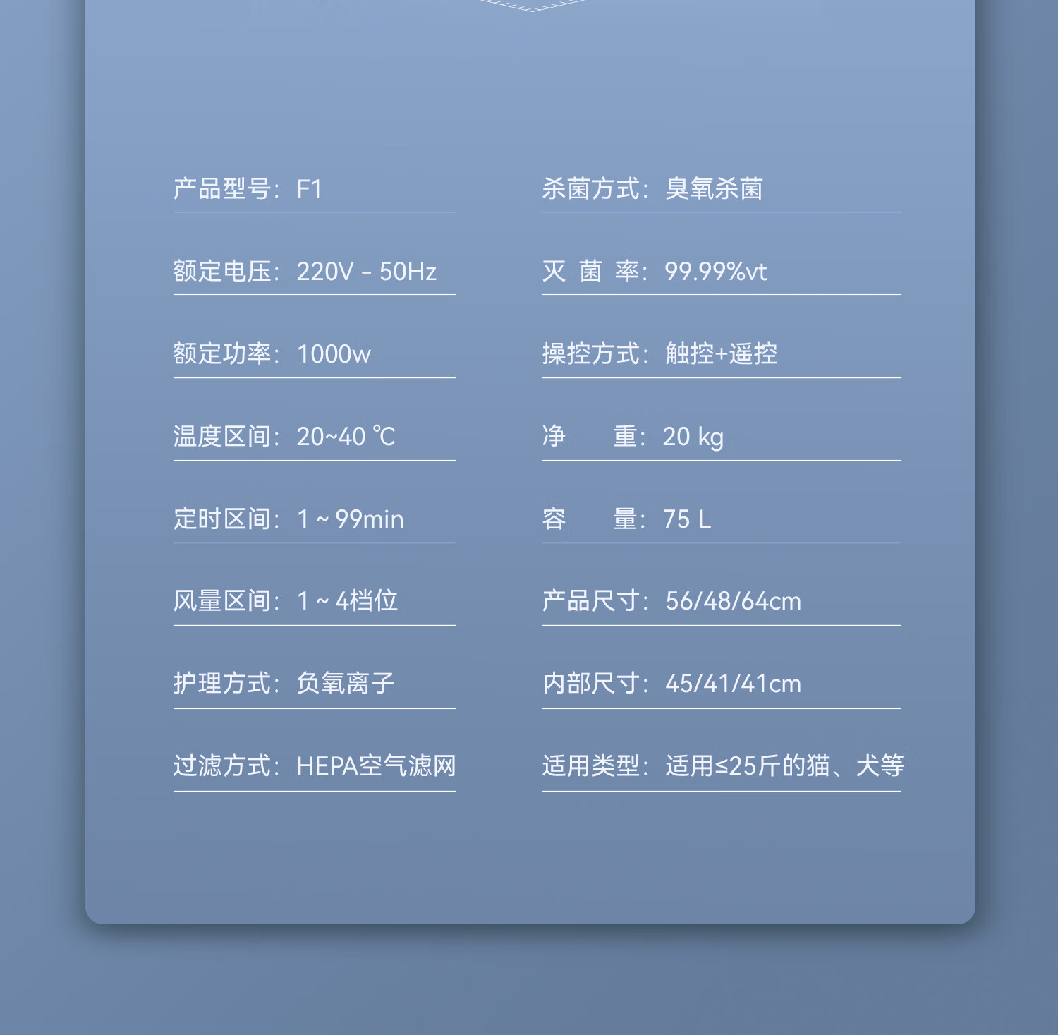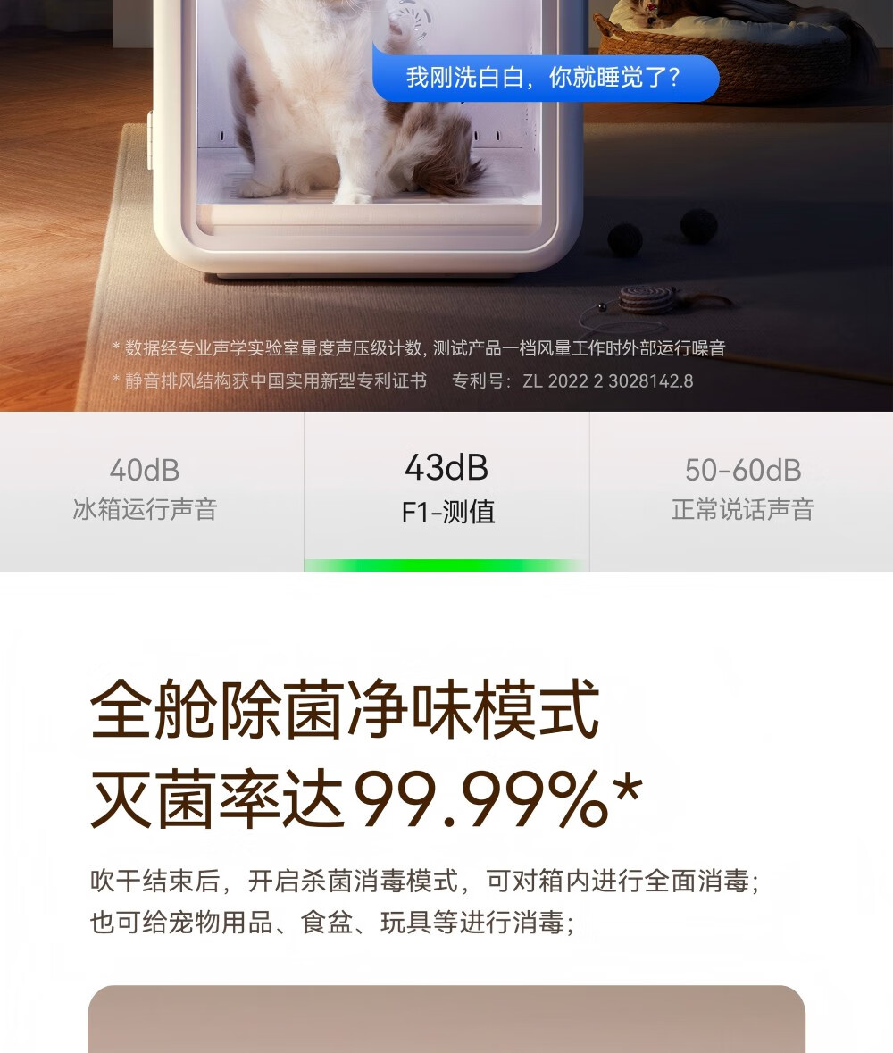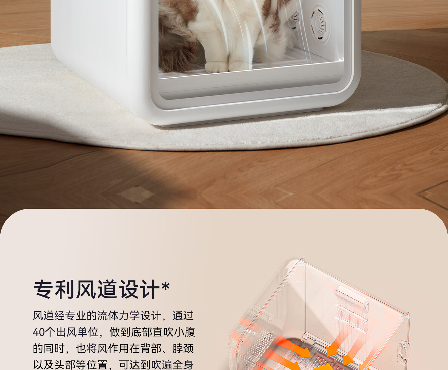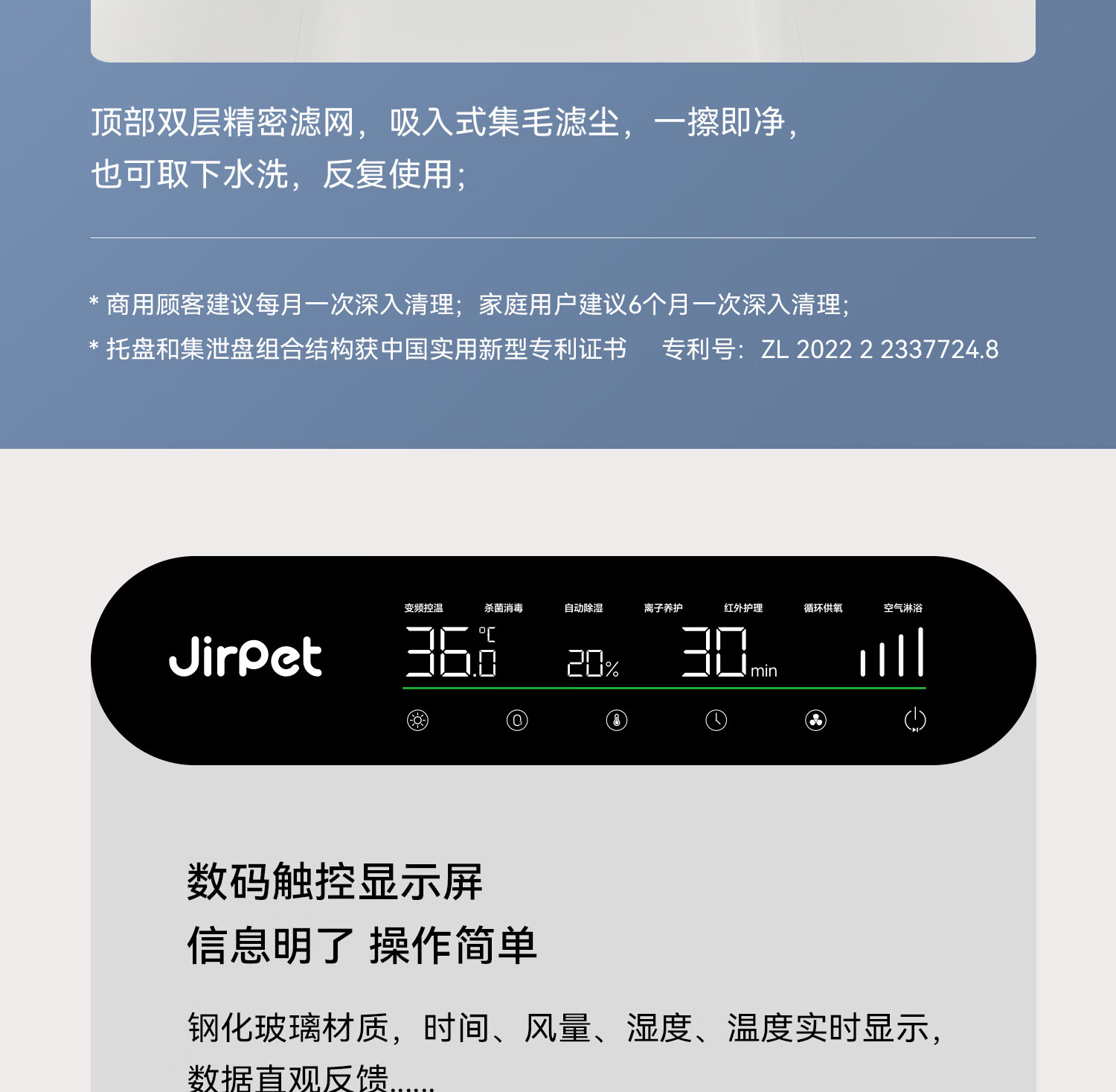 Jirpet宠物烘干箱F1猫咪狗狗吹干机底部出风低噪吹风机记洱
