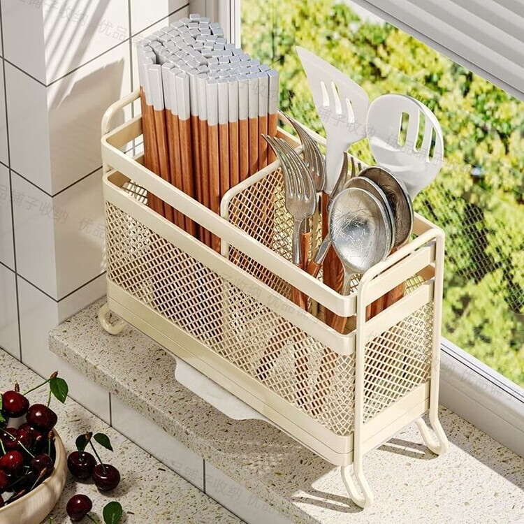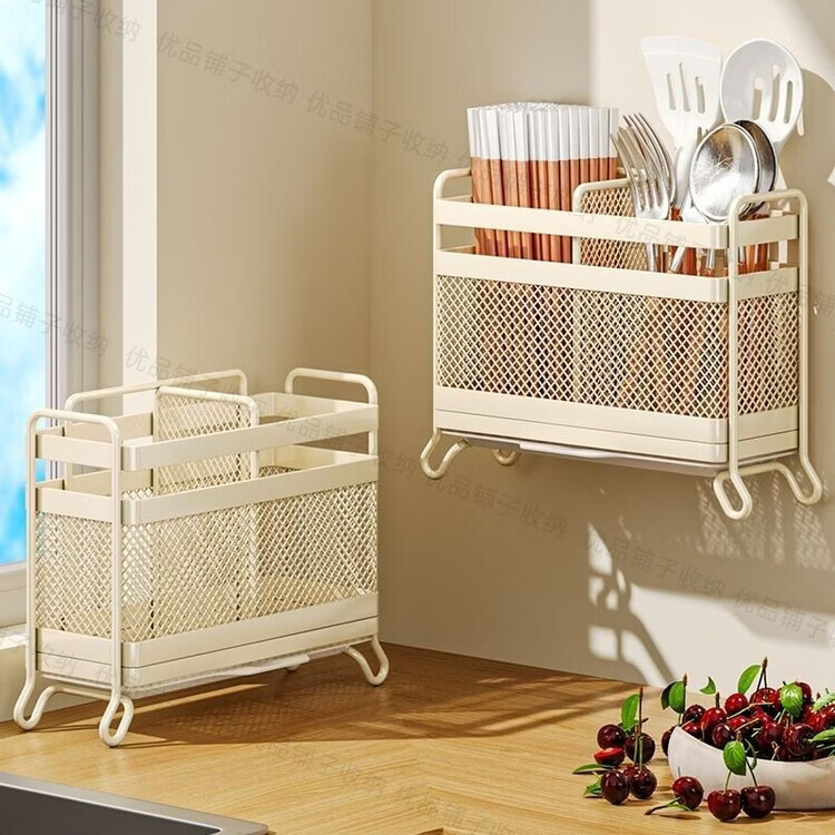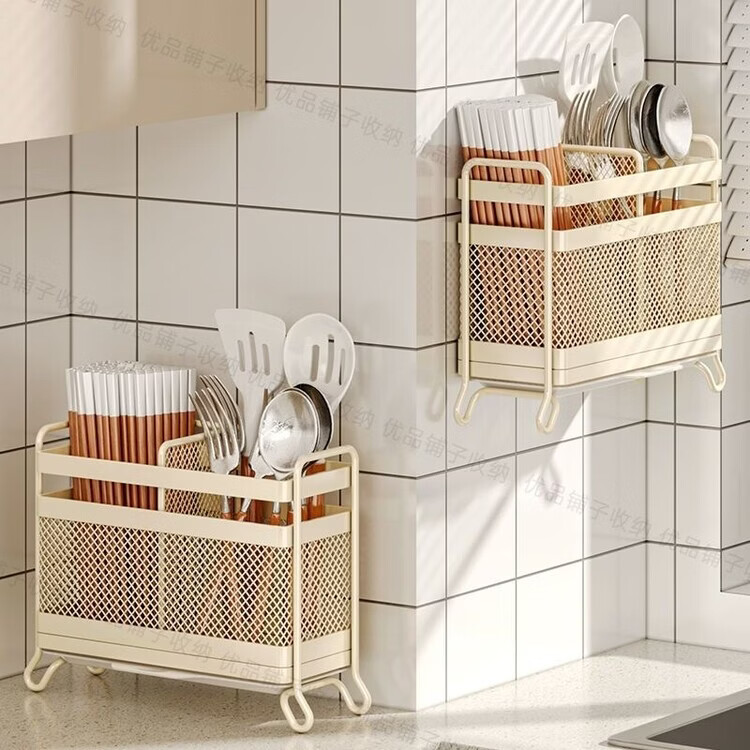 咏夏筷子收纳盒厨房筷子笼壁挂式筷笼家用新款勺子筷子篓筷子筒置物架 【台面款2分格】密网筷子不侧漏-黑色