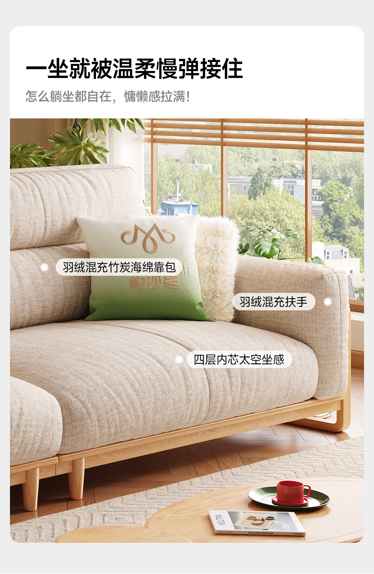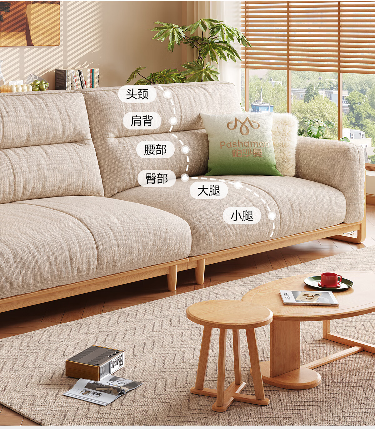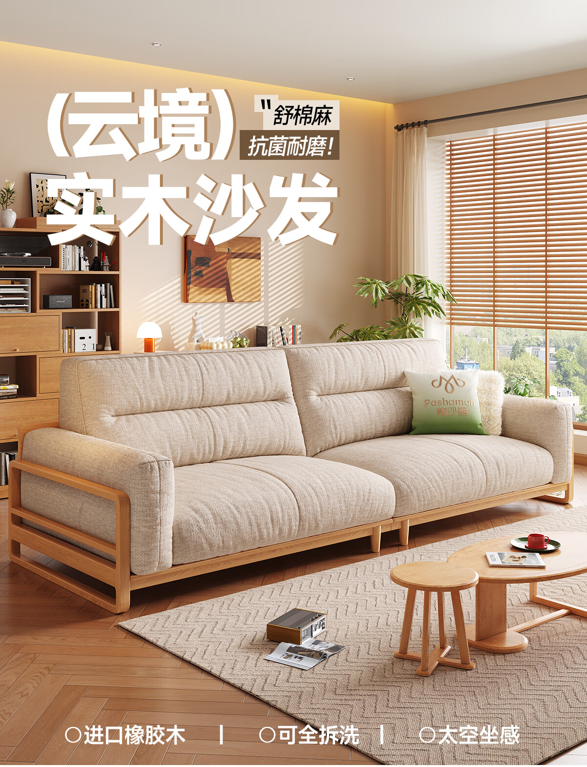 帕沙曼可拆洗实木沙发布艺小户型客厅原木风高靠背直排沙发棉麻 2971ZF 3.1米多人位【全拆洗设计】 抗菌棉麻DM600【旗舰版】 硅胶棉+紫罗兰海绵+竹炭海绵