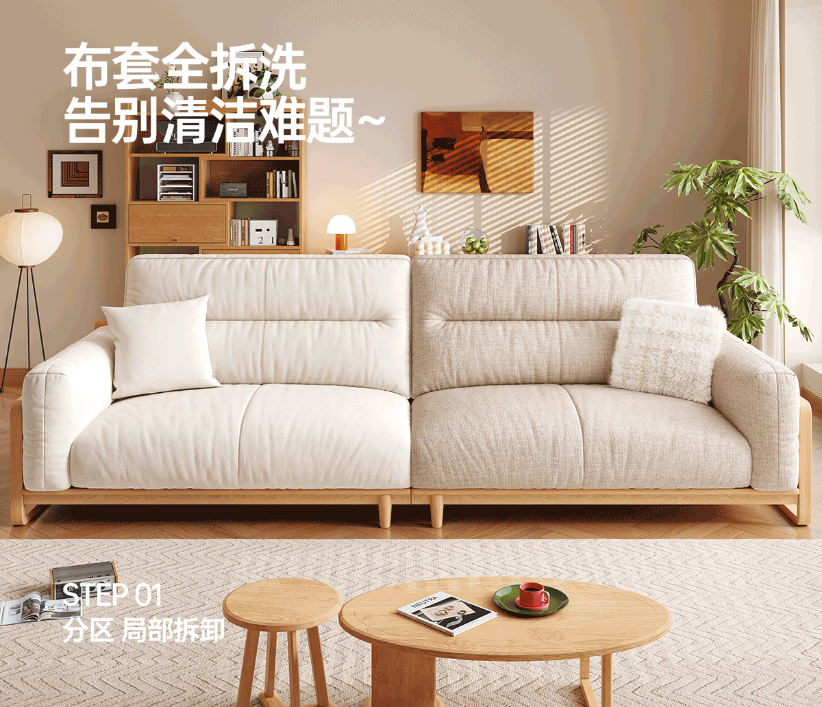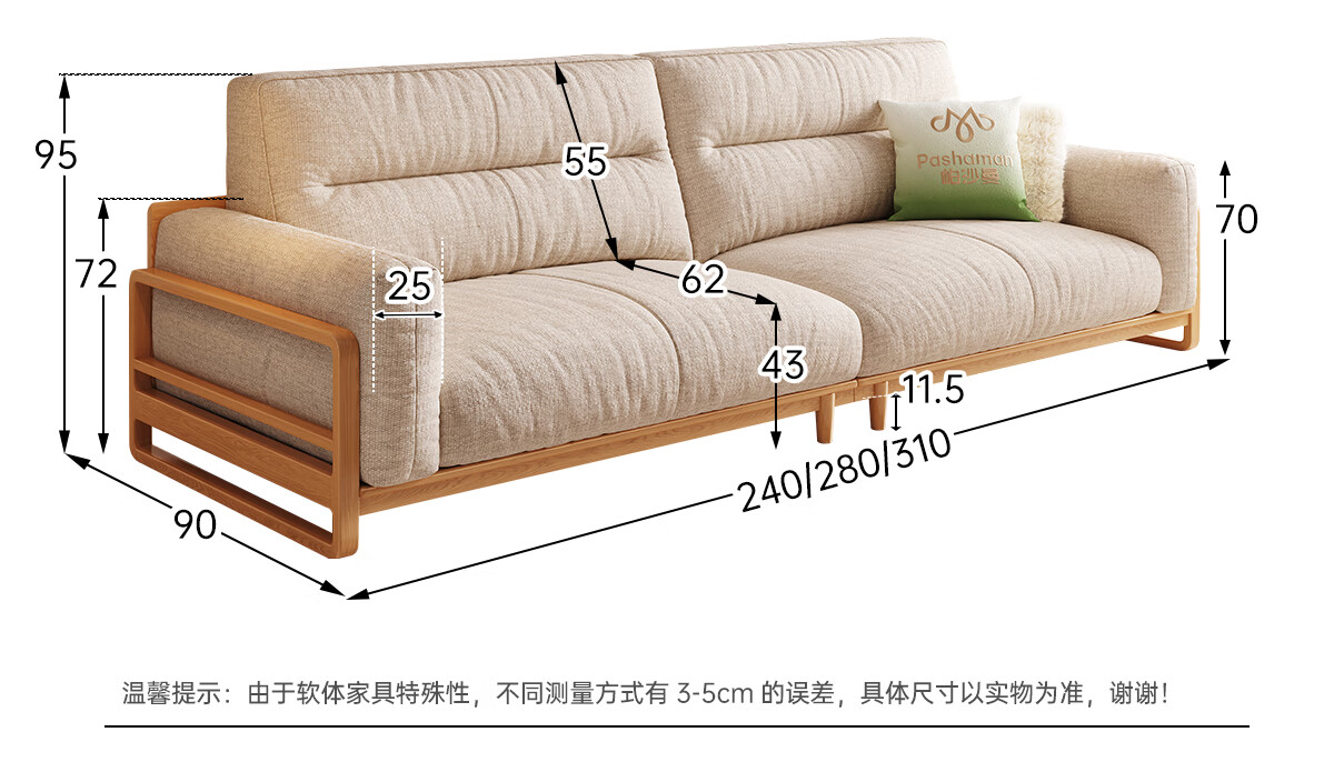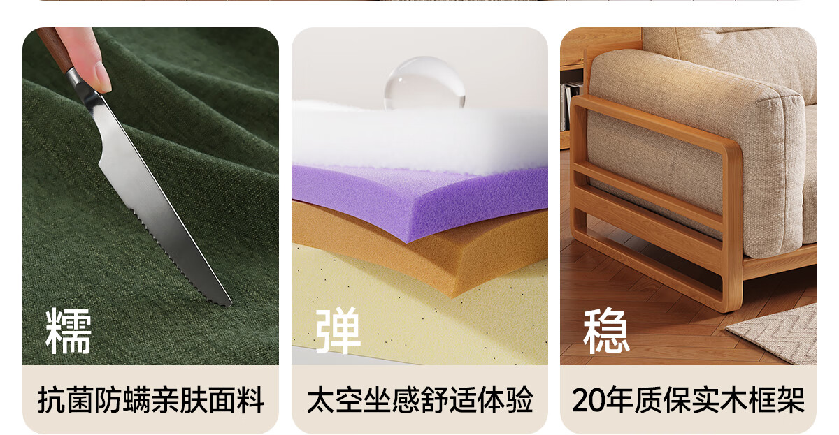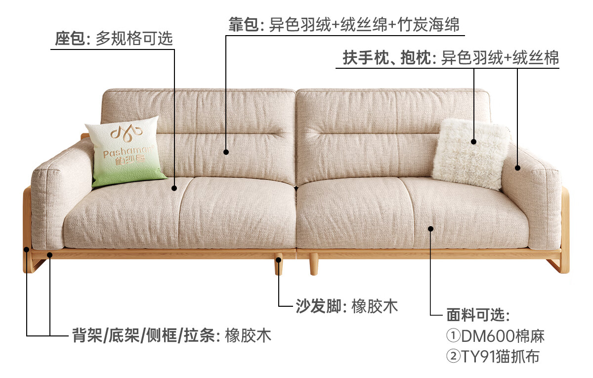 帕沙曼可拆洗实木沙发布艺小户型客厅原木风高靠背直排沙发棉麻 2971ZF 3.1米多人位【全拆洗设计】 抗菌棉麻DM600【旗舰版】 硅胶棉+紫罗兰海绵+竹炭海绵