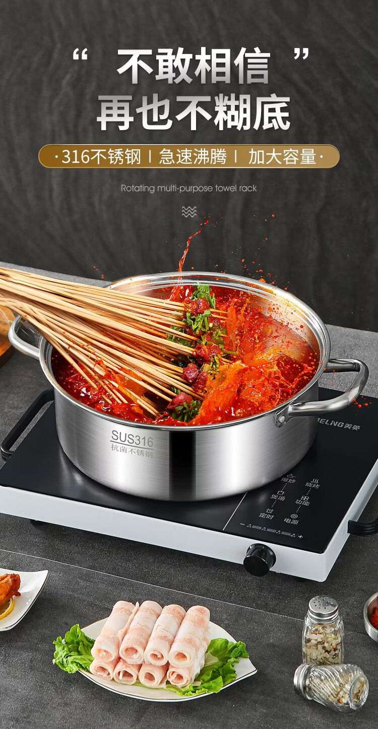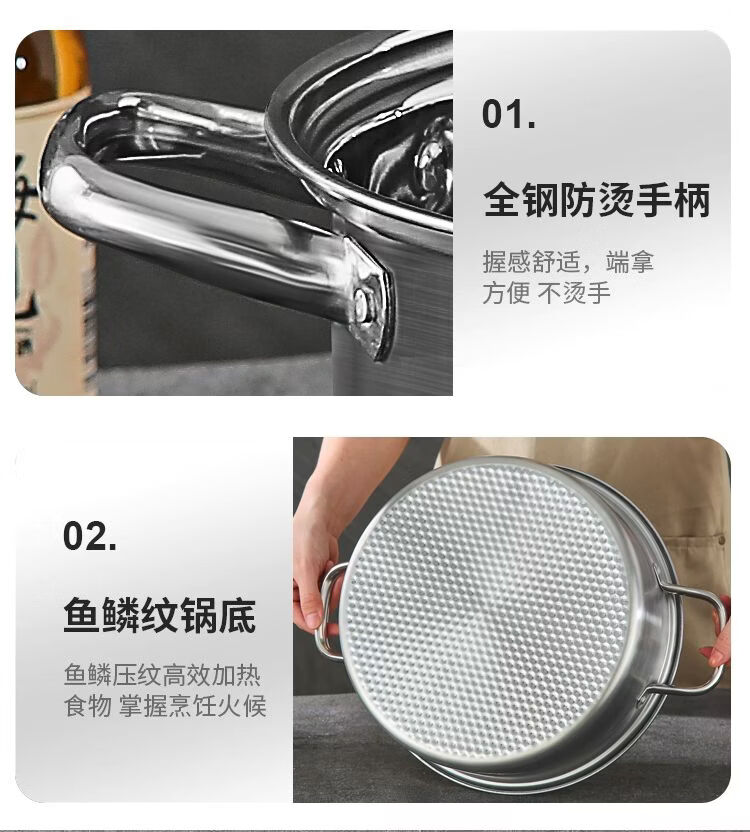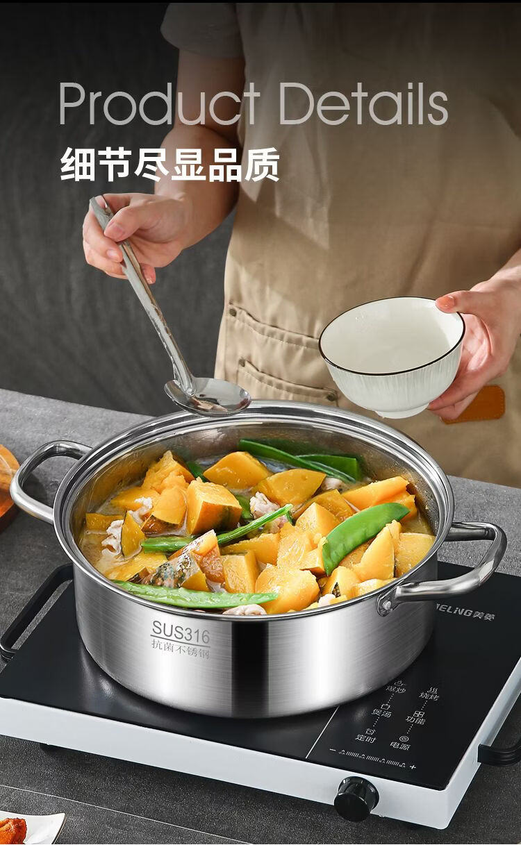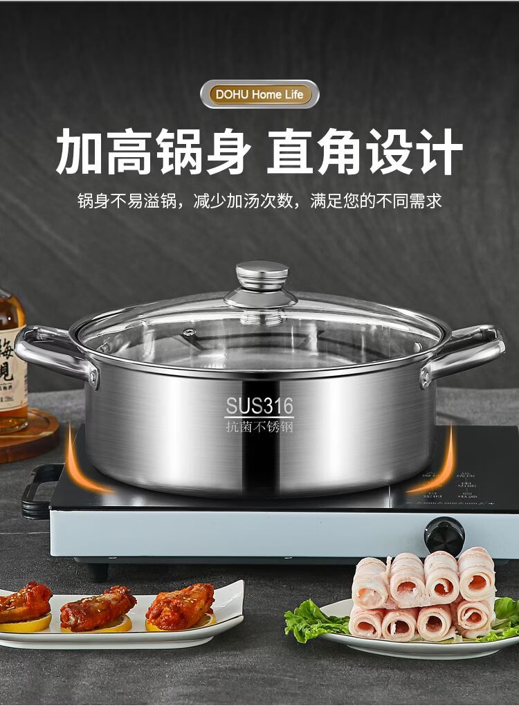 咏夏特厚汤锅316不锈钢电磁炉专用燃煤气灶蒸炖煮加厚双耳火锅家用锅 特厚316L汤锅28CM【适用2-3人】 0寸