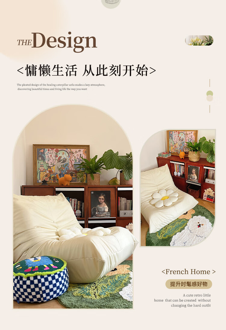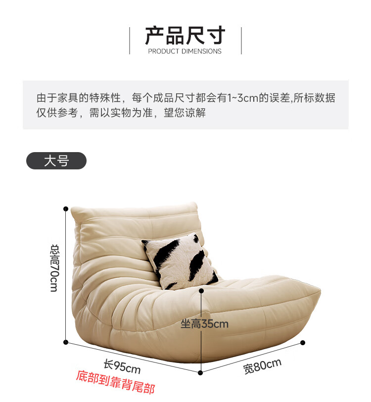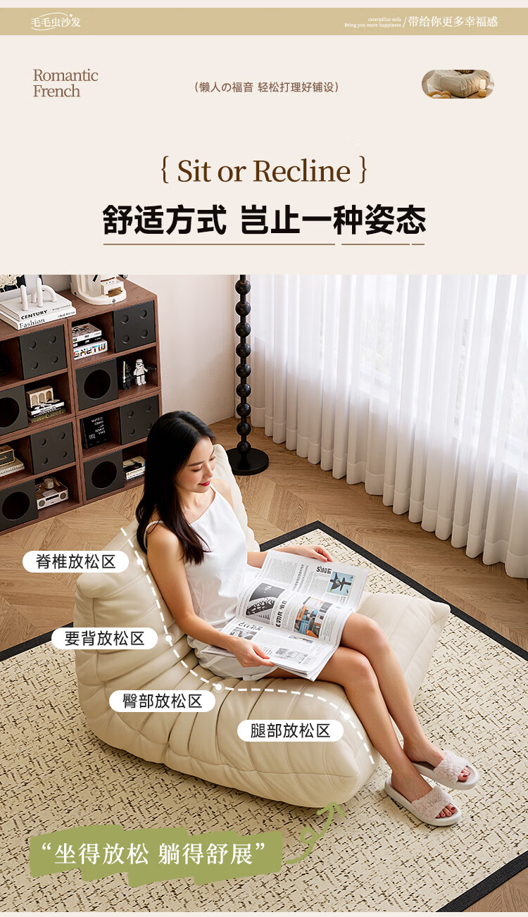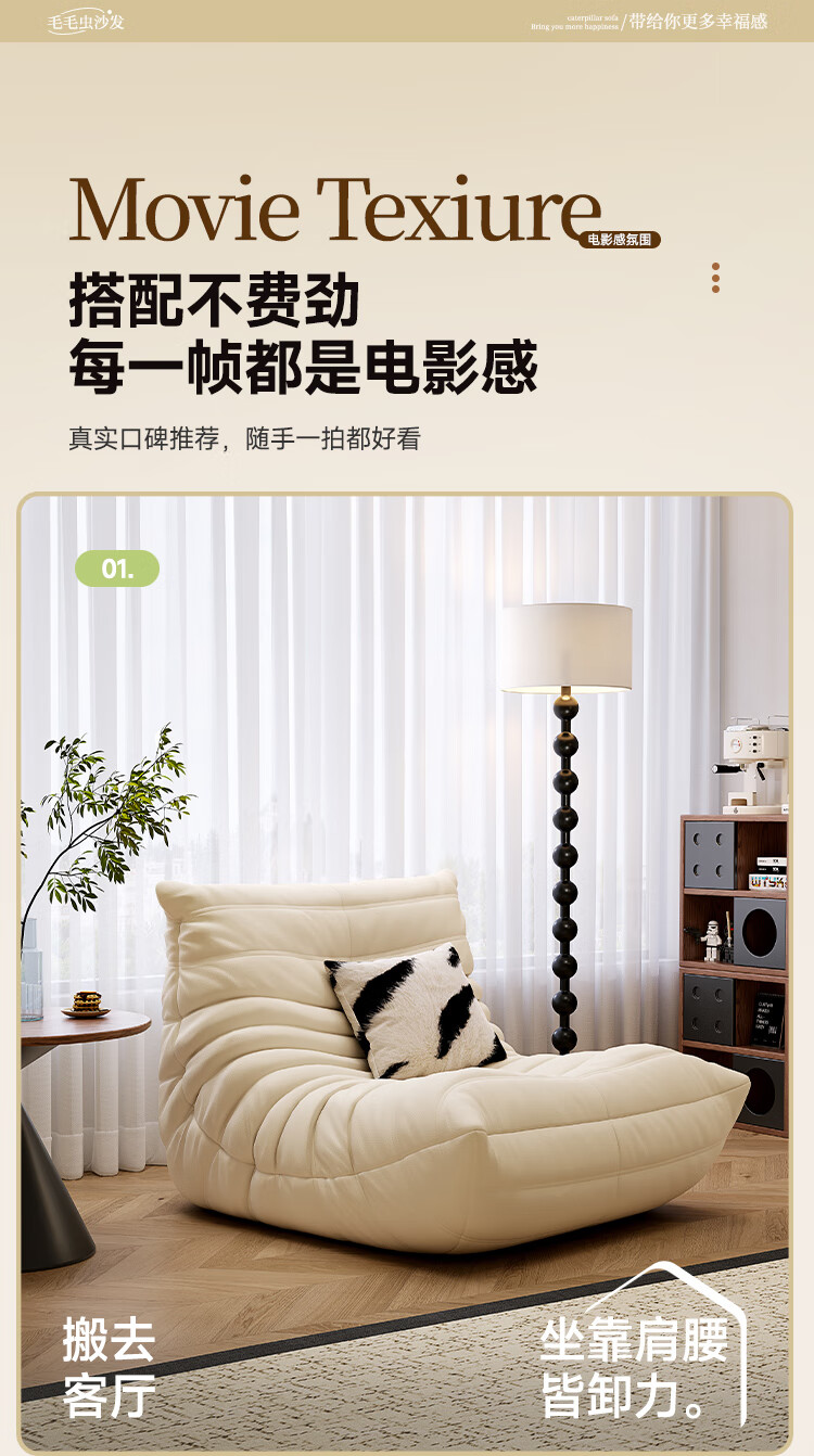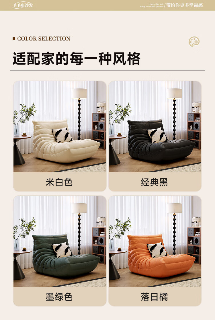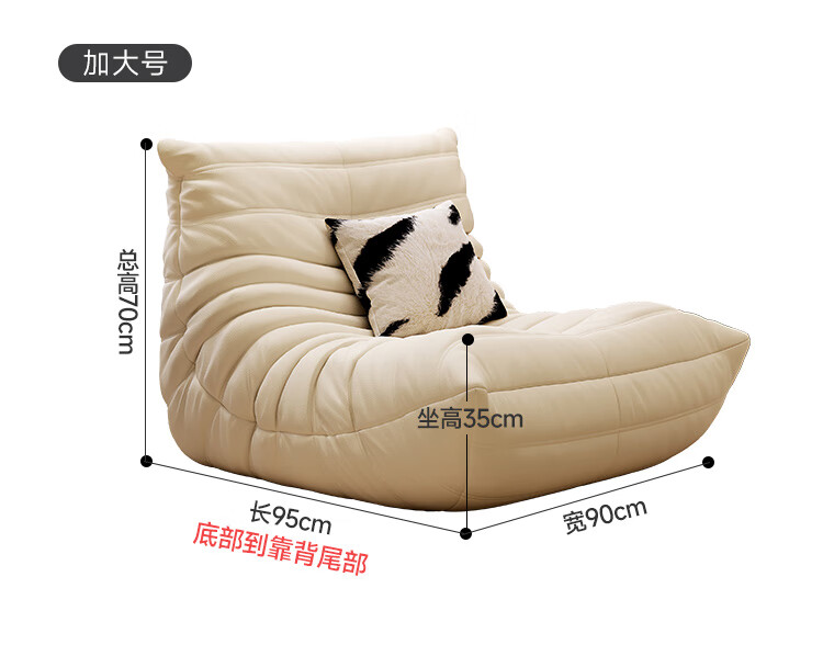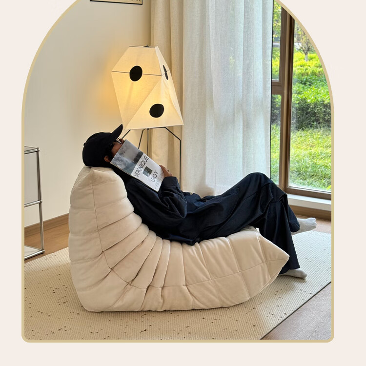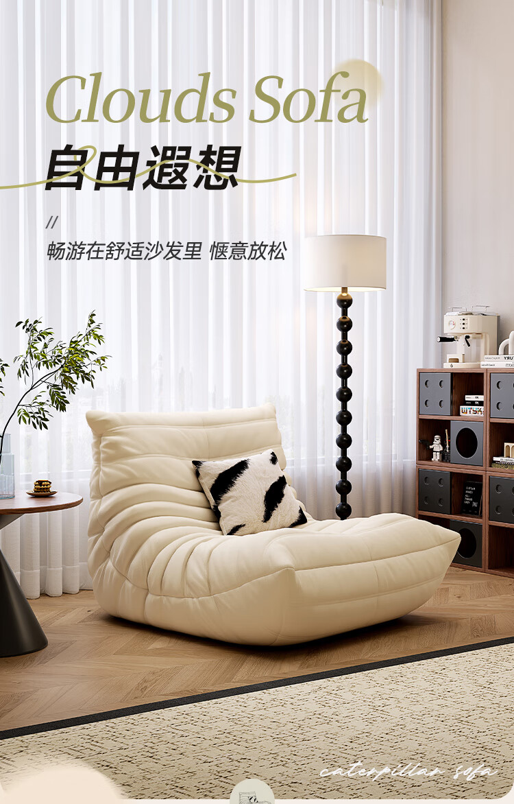 芈迪毛毛虫懒人沙发客厅可睡可躺阳台卧室单人沙发原版togo网红休闲椅 米白色-猫爪皮 一人位 95*80*70cm