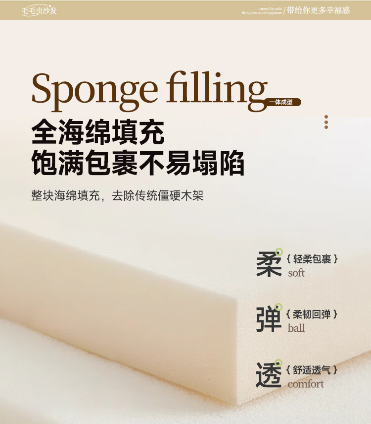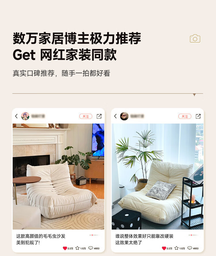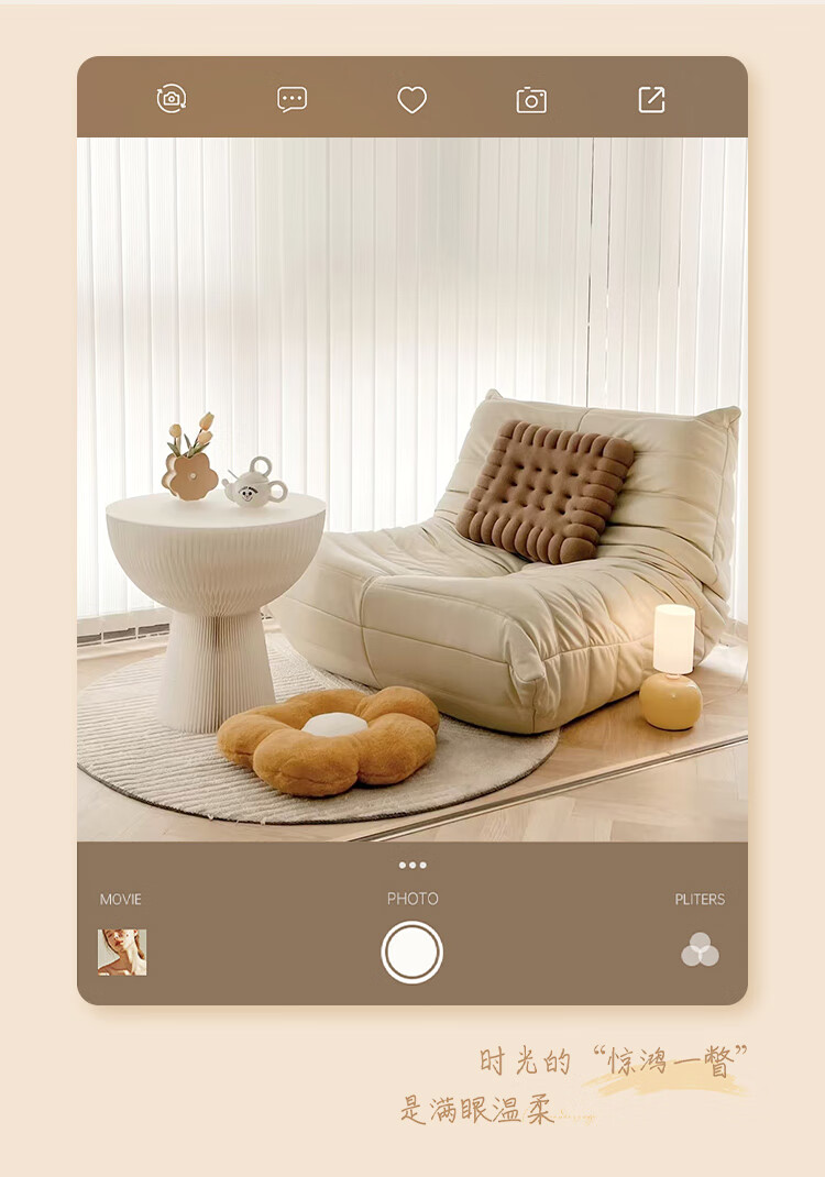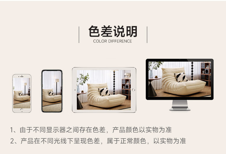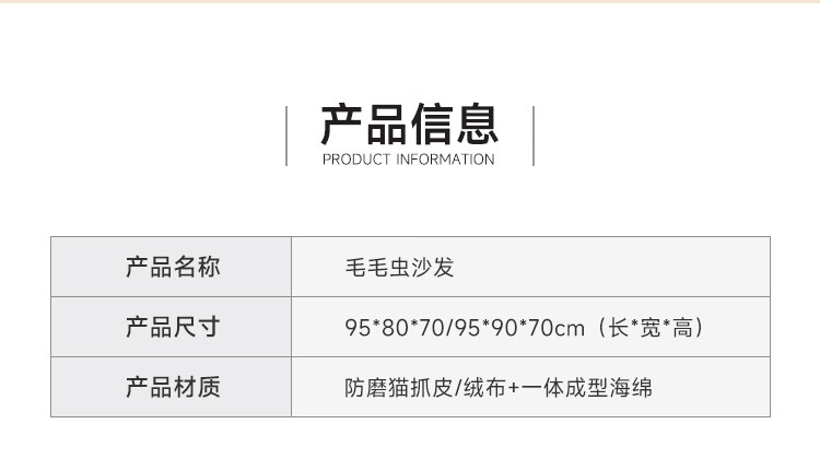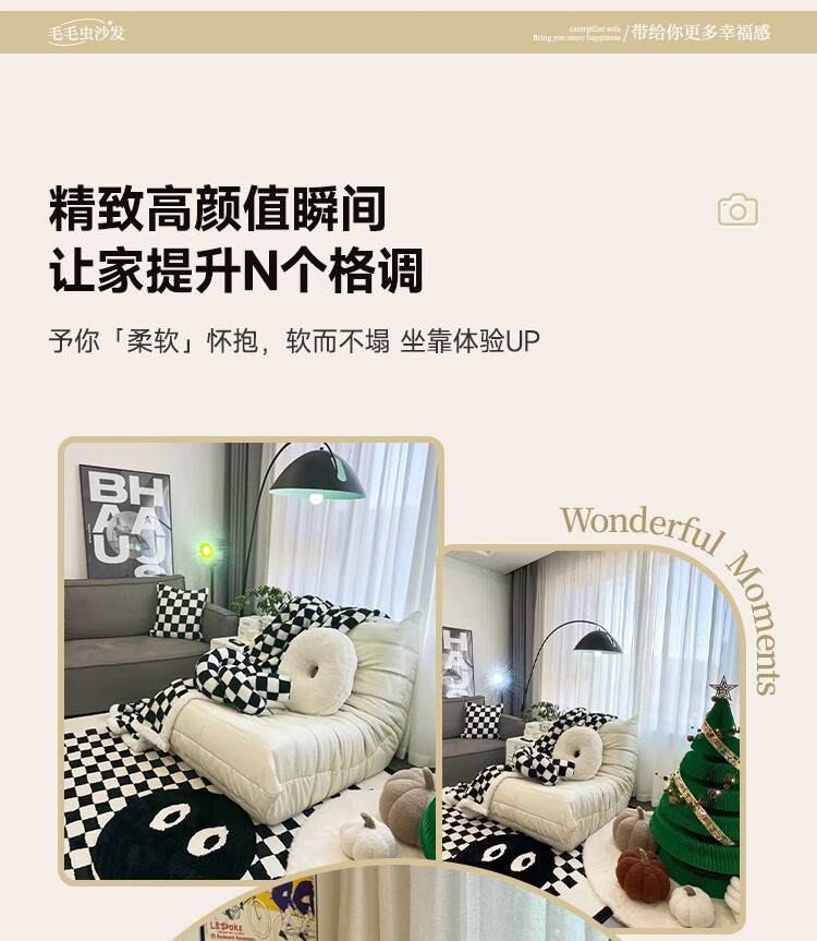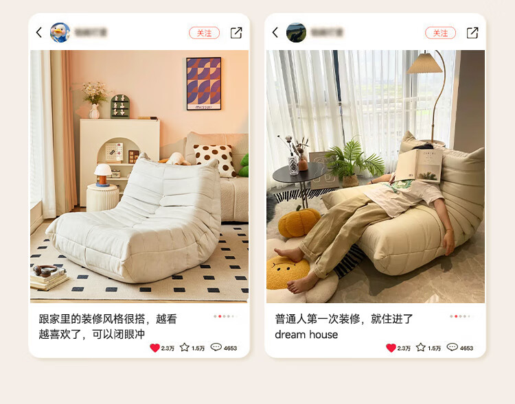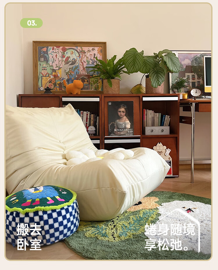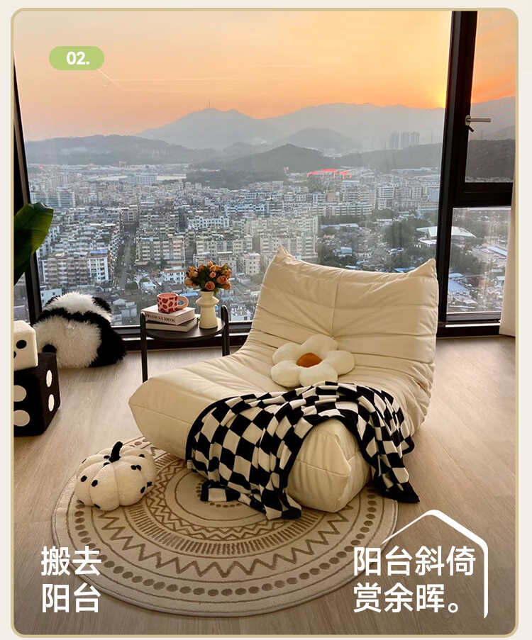 芈迪毛毛虫懒人沙发客厅可睡可躺阳台卧室单人沙发原版togo网红休闲椅 米白色-猫爪皮 一人位 95*80*70cm