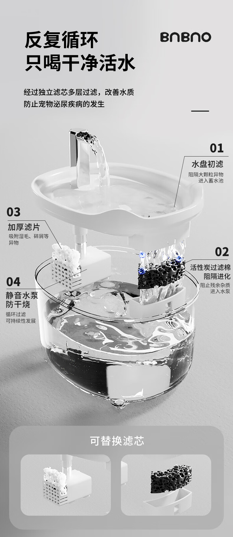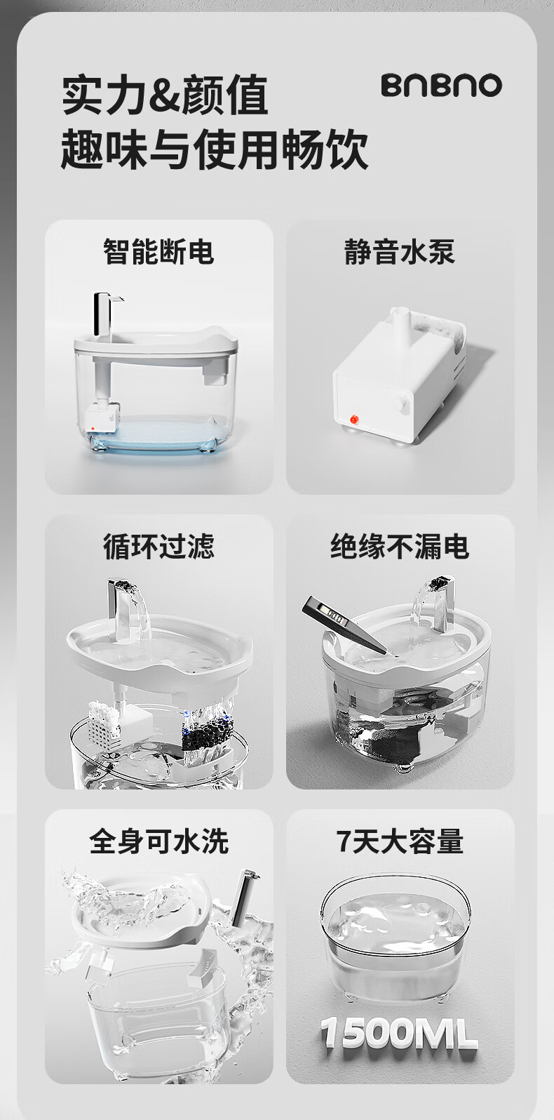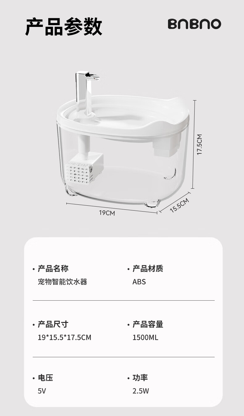 BNBNO猫咪饮水机自动循环喂水器猫喝水流动防干烧宠物饮水器自助喝水器