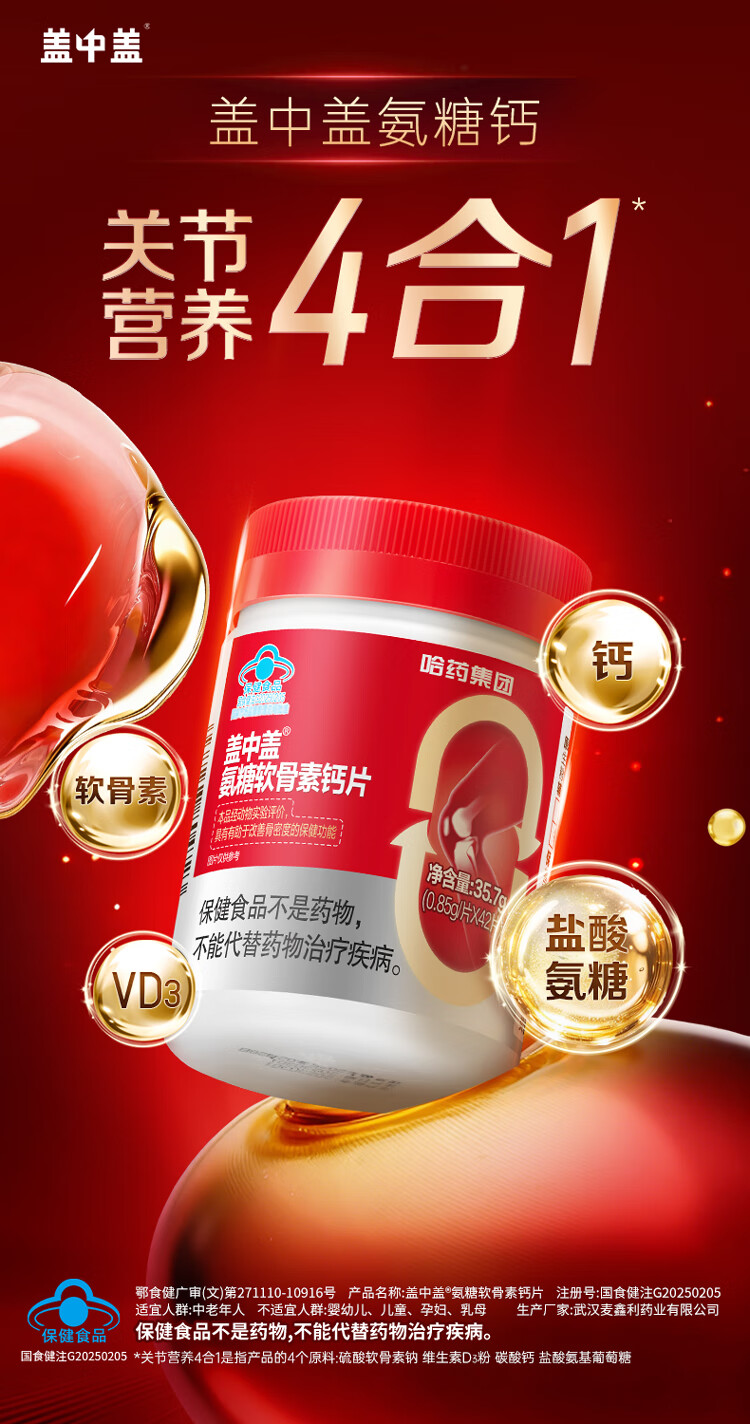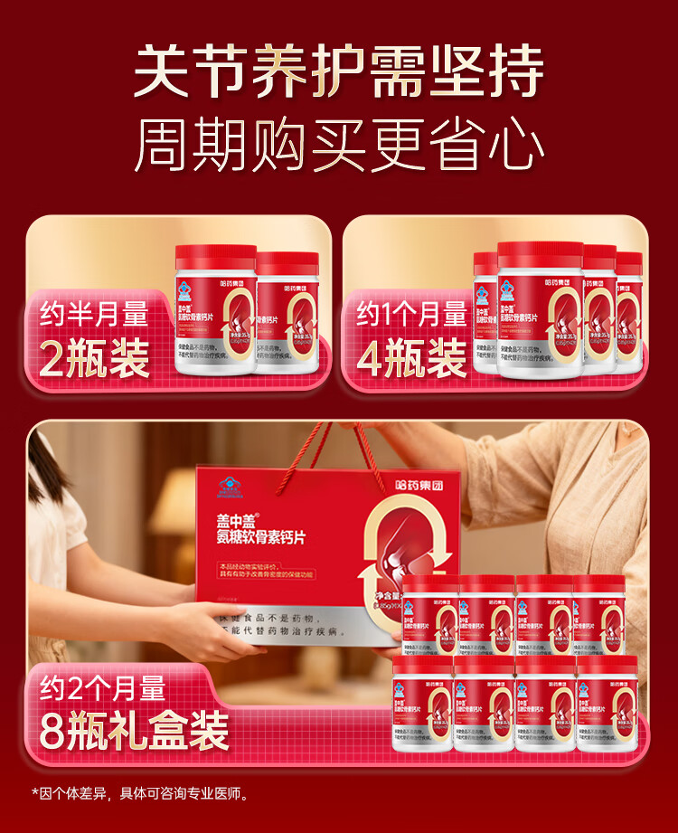 哈药盖中盖氨糖软骨素钙片 中老年钙片成人补钙添加VD增加骨密度 【礼盒装】 42片*8瓶