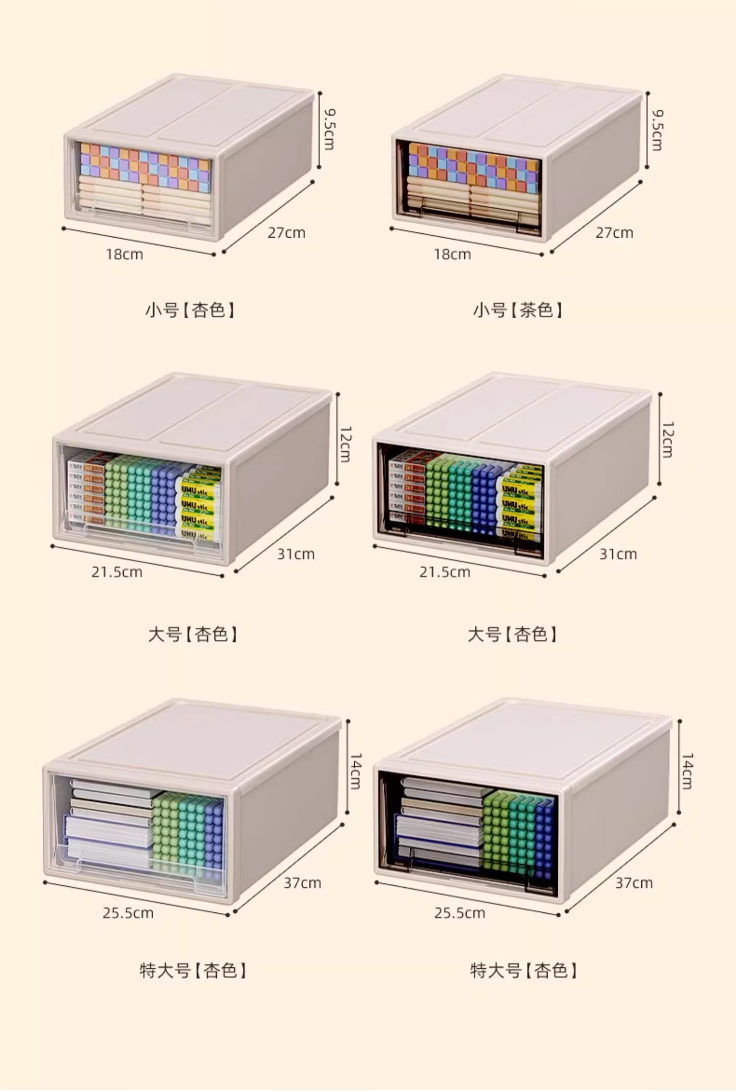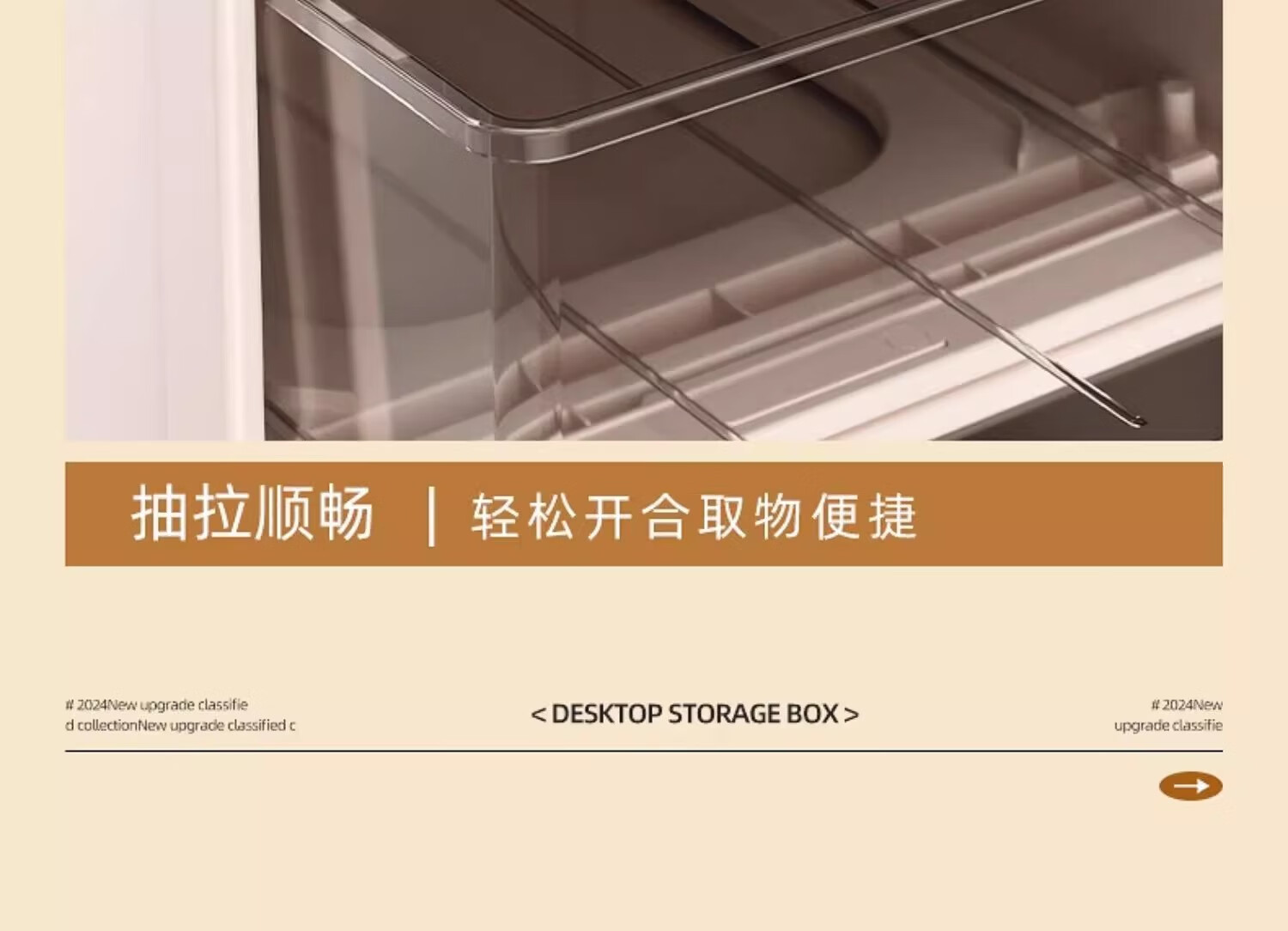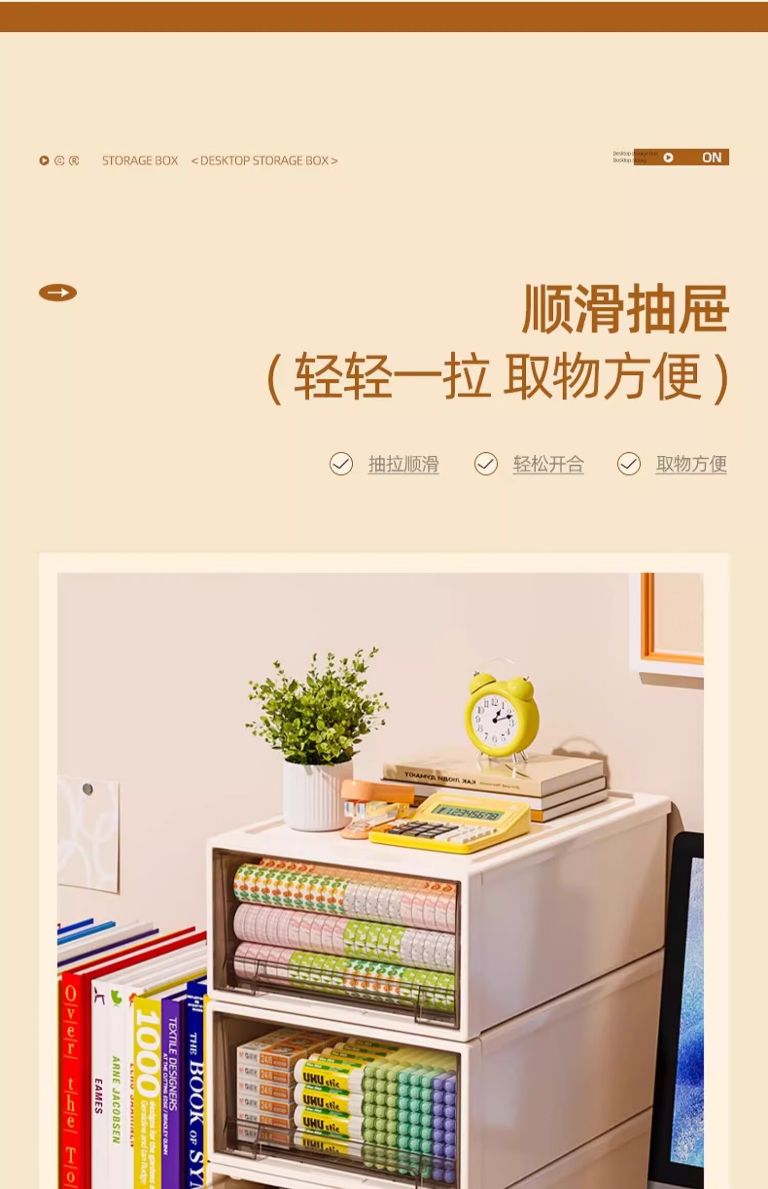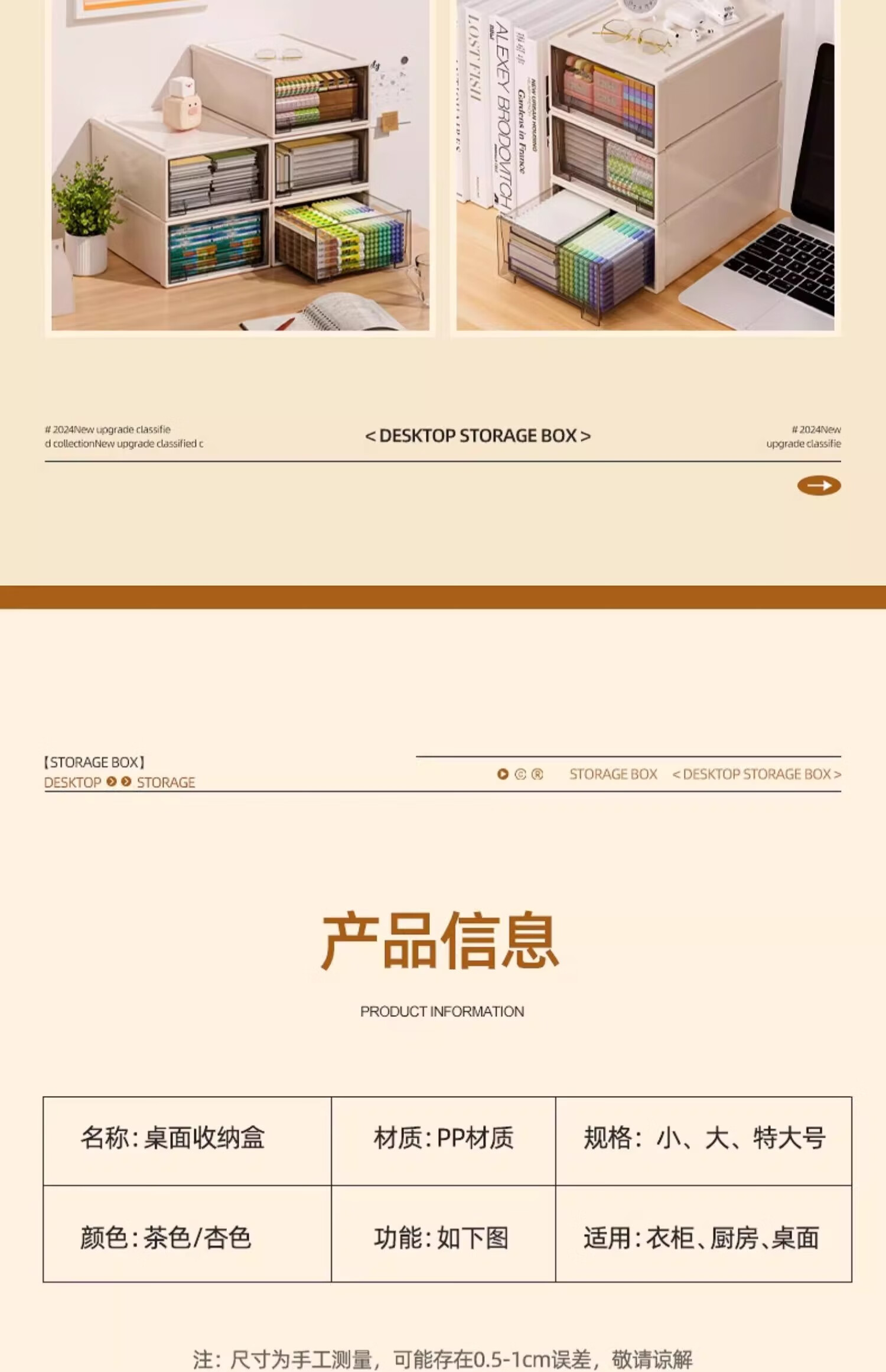 稻草熊桌面收纳盒抽屉式透明化妆品口红整理盒杂物办公室桌上文具置物架 茶色-特大号3个装【自由叠加】