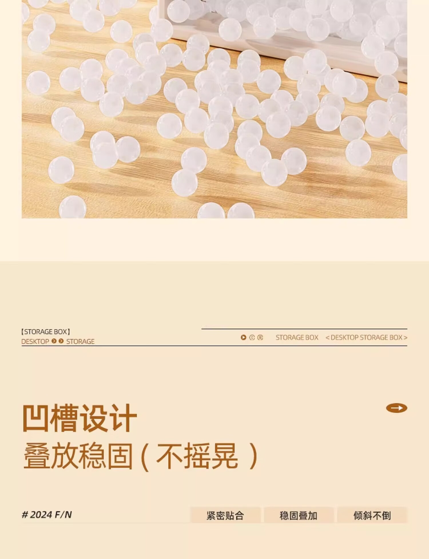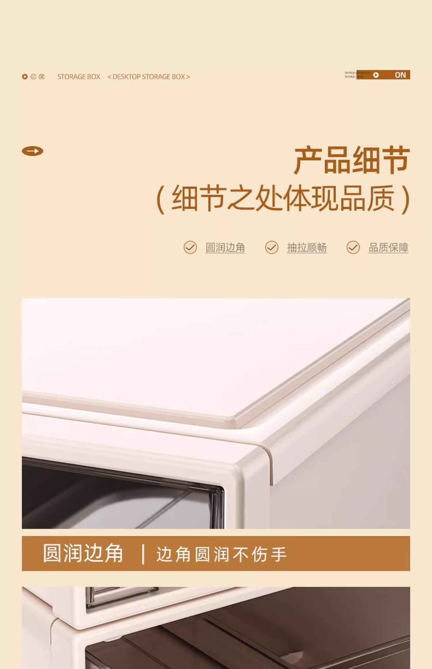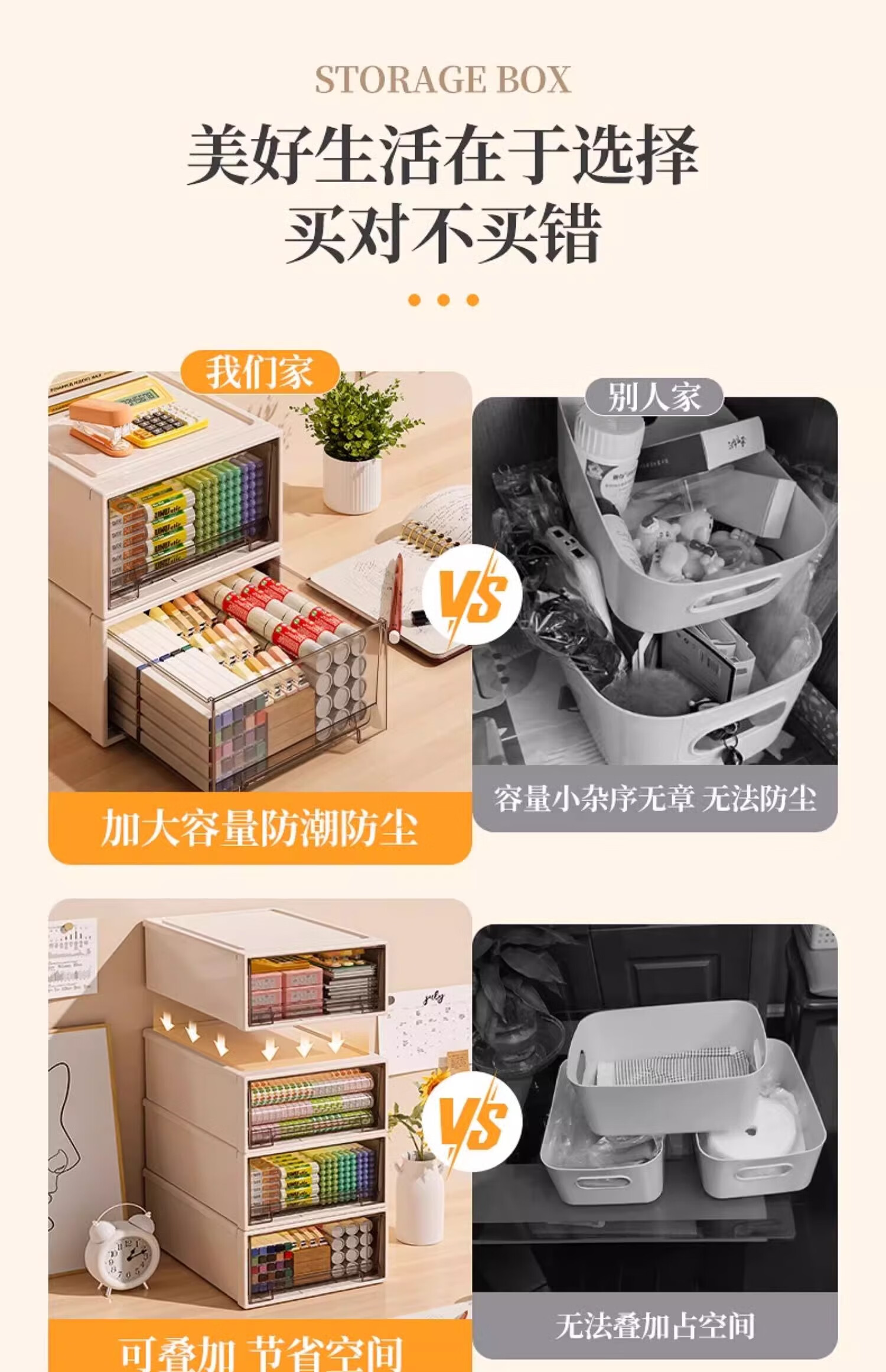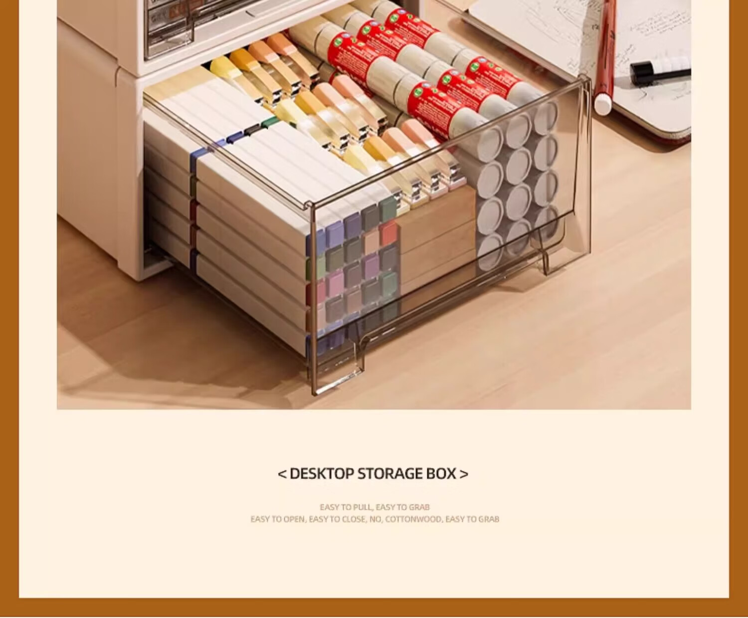 稻草熊桌面收纳盒抽屉式透明化妆品口红整理盒杂物办公室桌上文具置物架 茶色-特大号3个装【自由叠加】