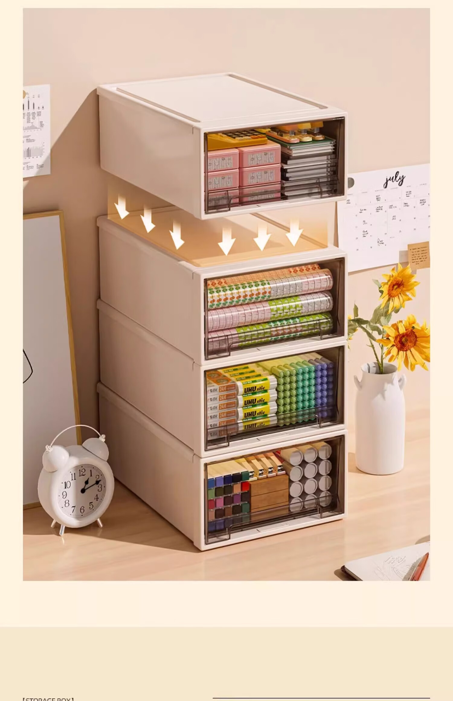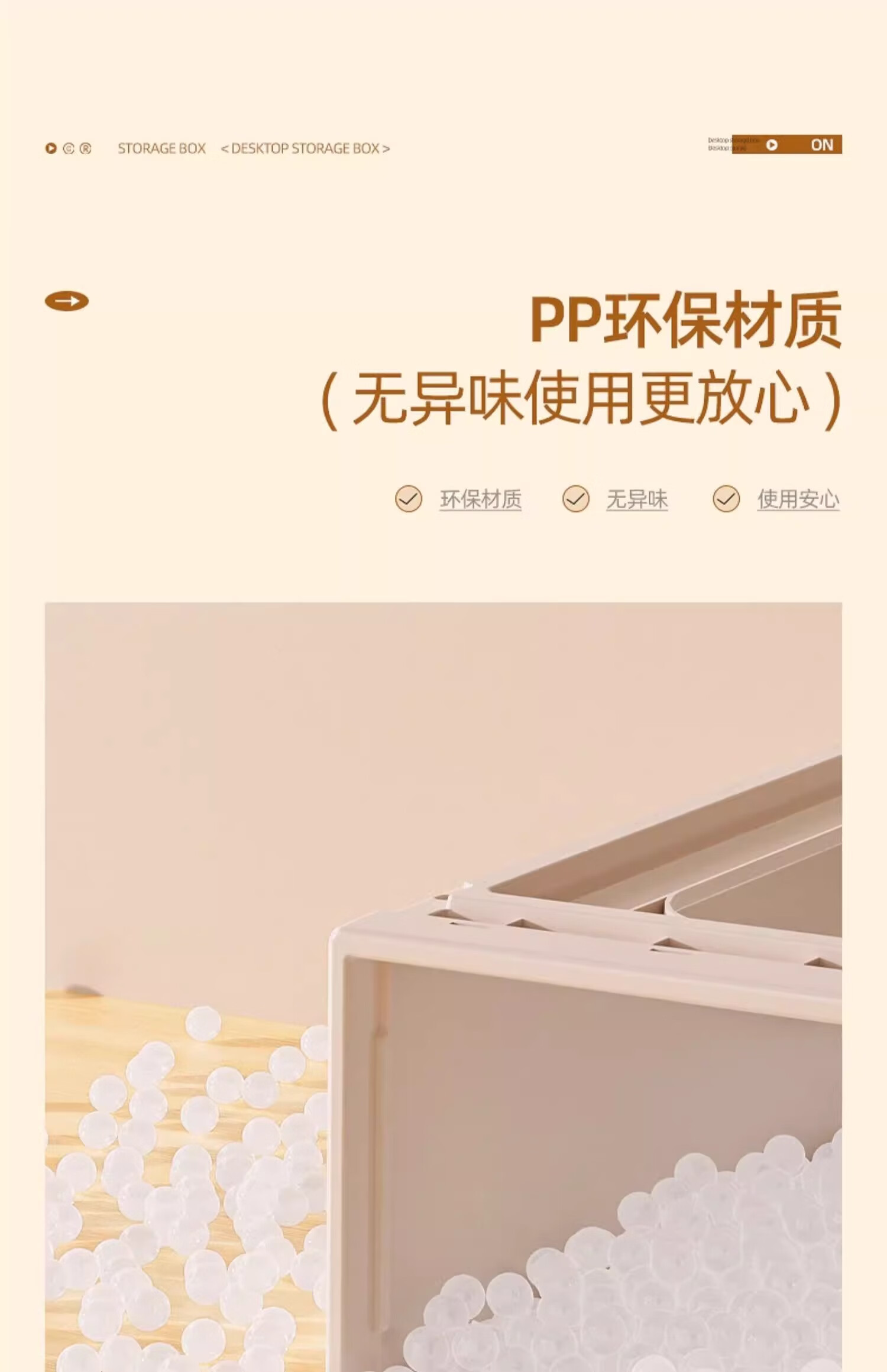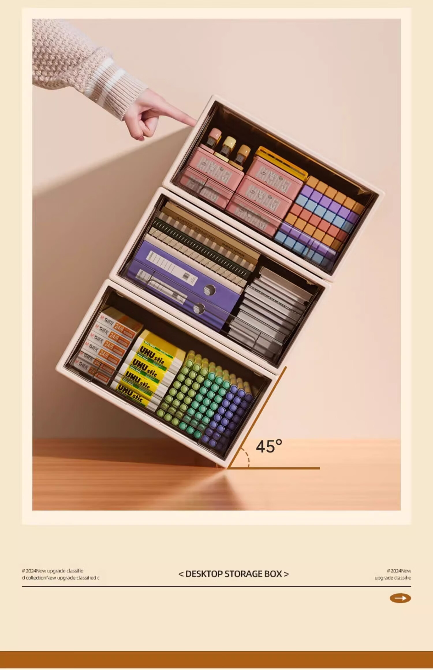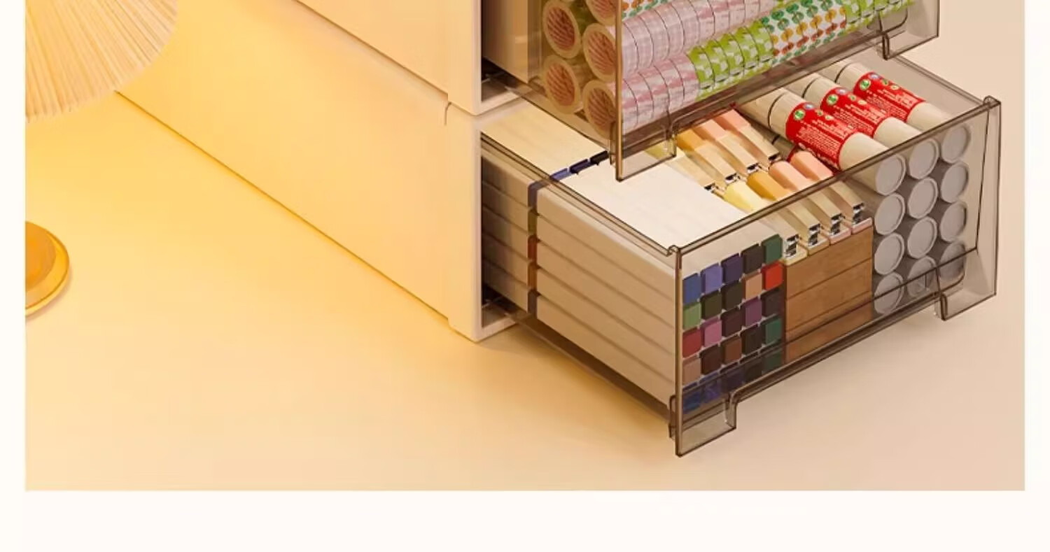 稻草熊桌面收纳盒抽屉式透明化妆品口红整理盒杂物办公室桌上文具置物架 茶色-特大号3个装【自由叠加】