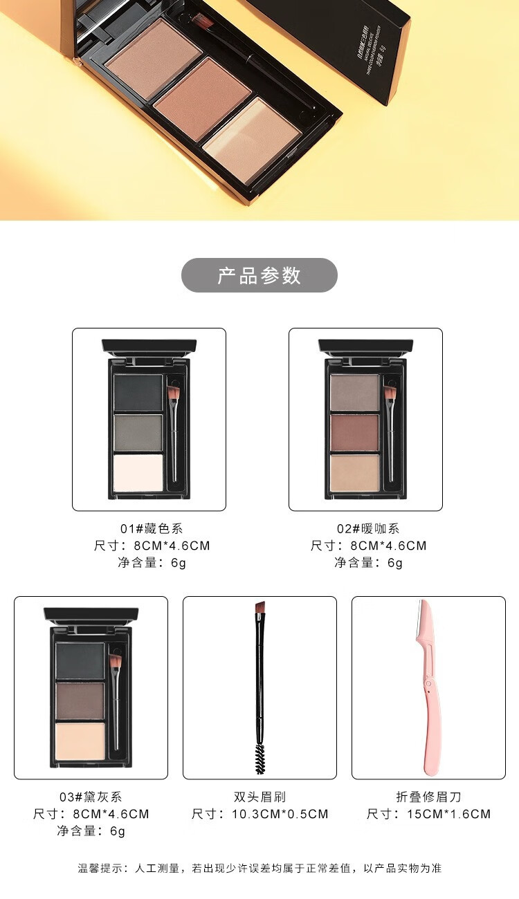 阿嚓热(ACARE)《眉粉A1p301-自然细腻三色搭配眉膏粉带刷眼部修 01#藏色系1盒 6g