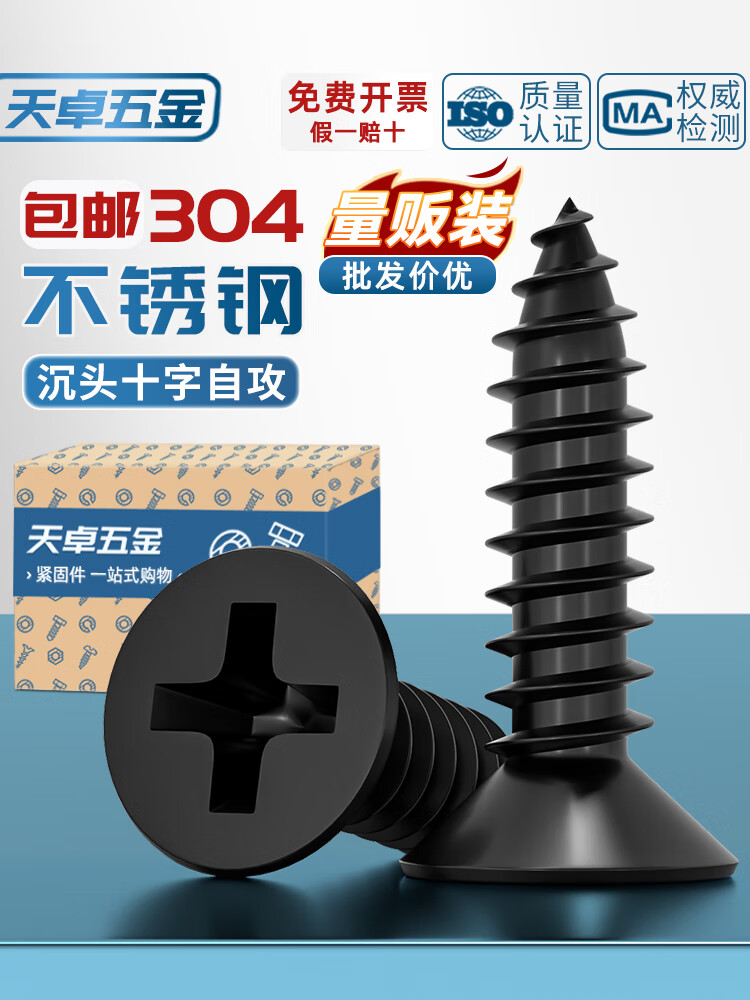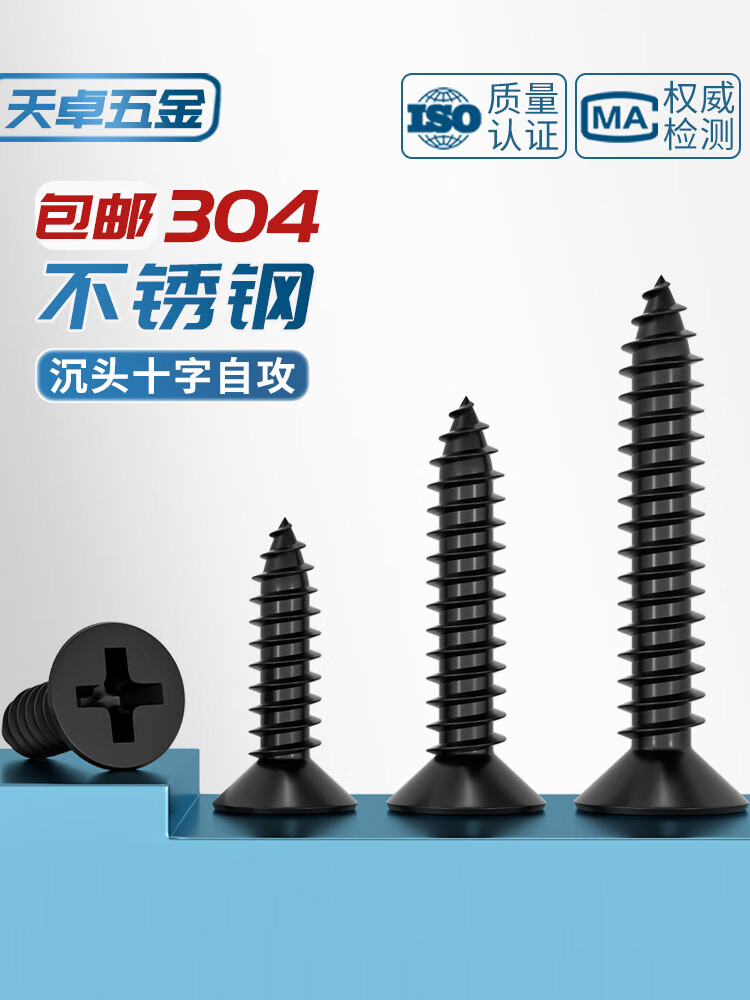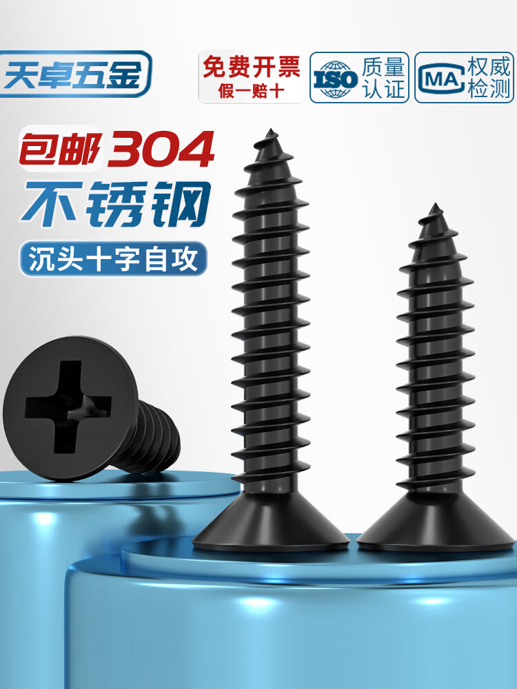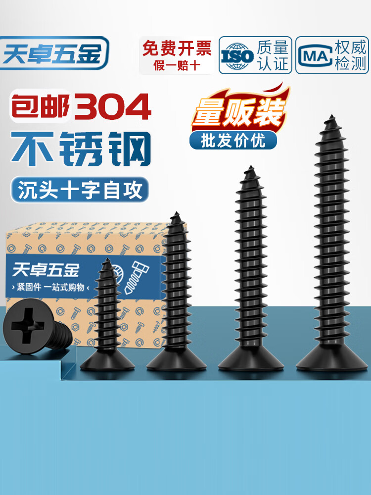 天卓五金黑色304不锈钢十字沉头自攻螺丝钉平头木工螺钉MM2M3M4M5M5.5M6.3 M1*3-300个