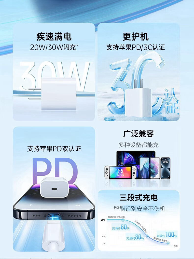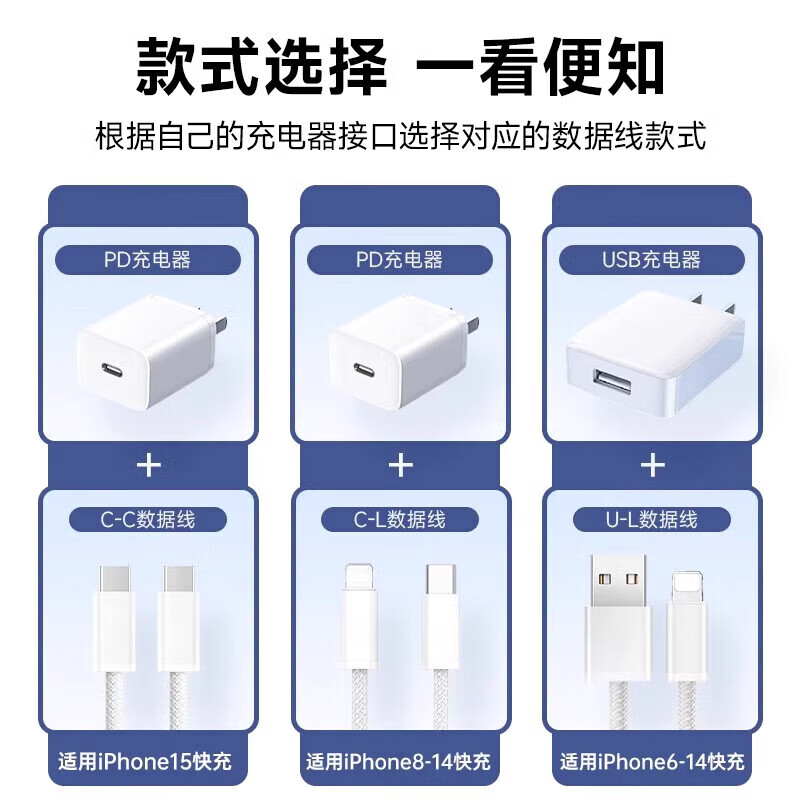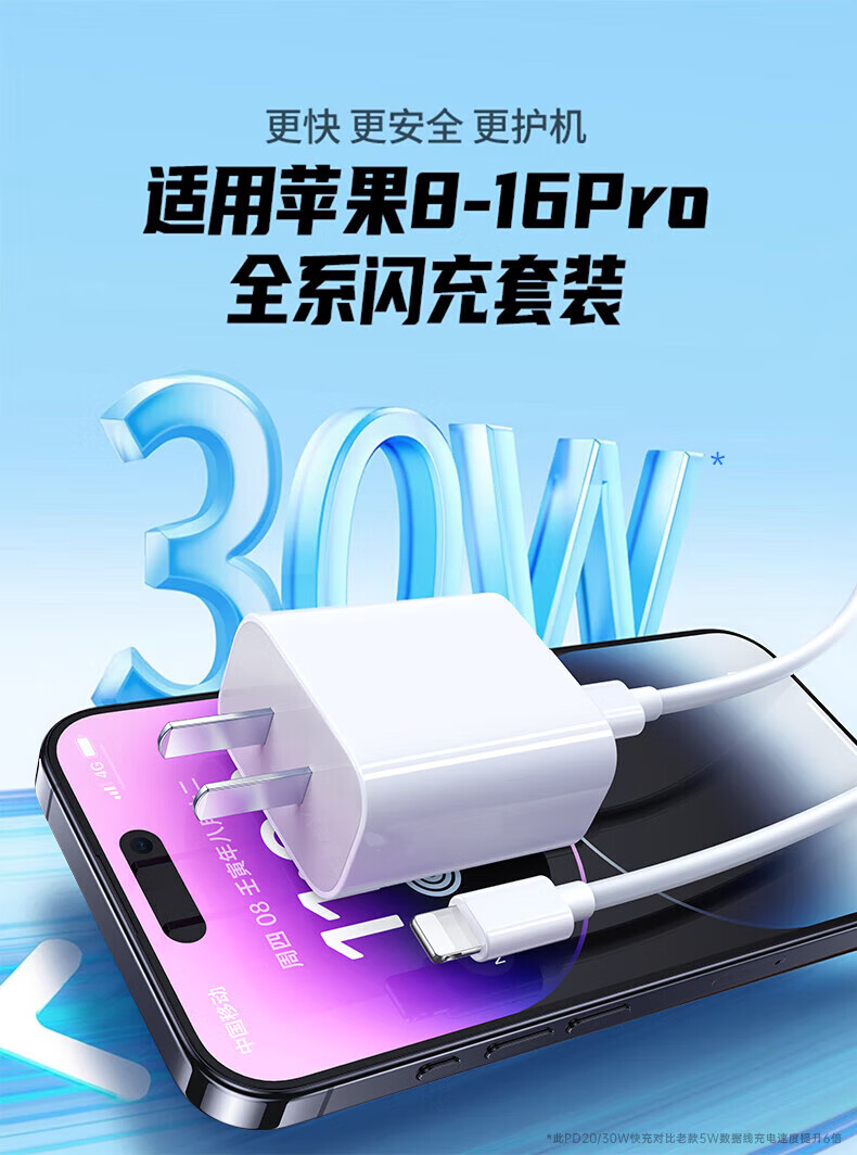 猎弗蒙适用苹果30WPD充电器插头充电线套装iPhone14ProMax 13 12/11/10/8手机9充电头x数据线插头线套装 2米PD快充线【单线/不含头】