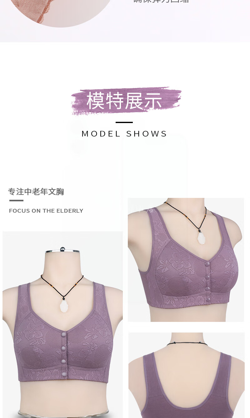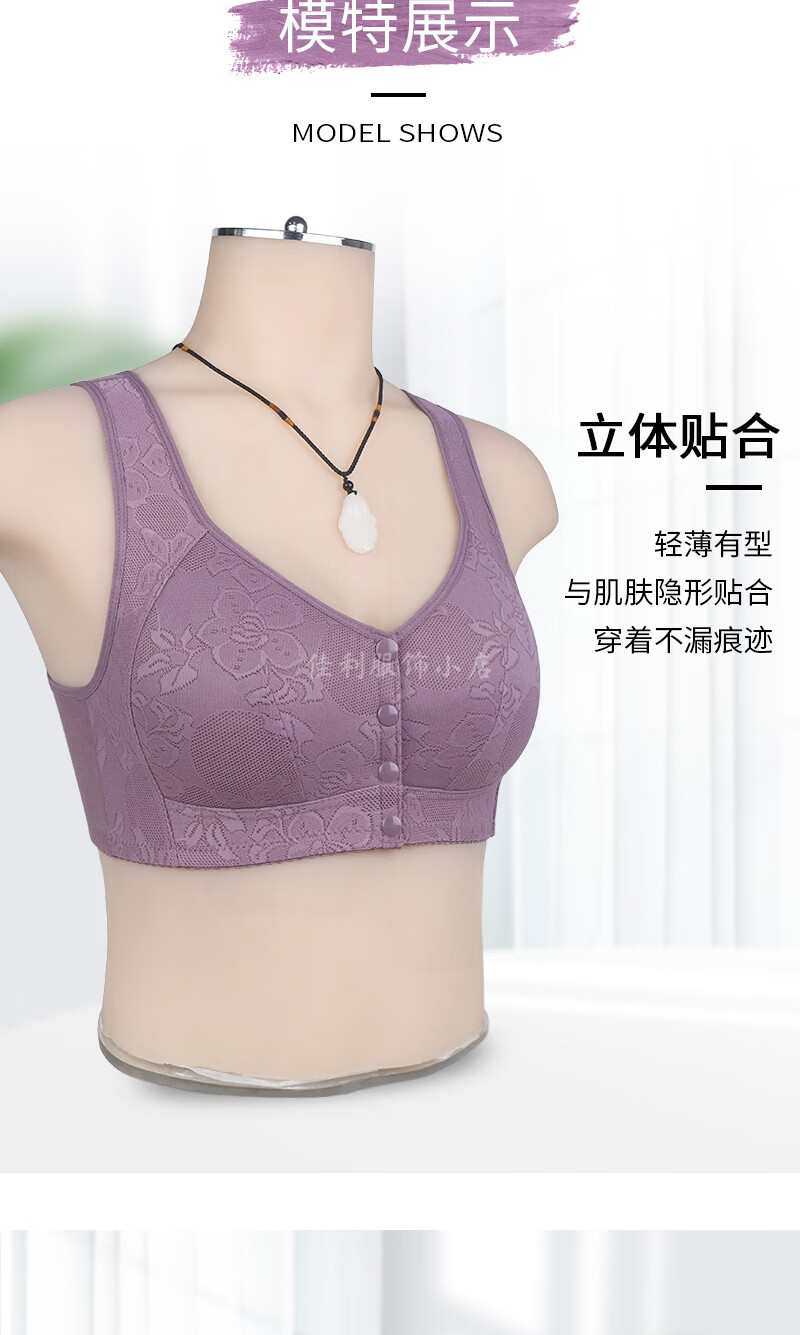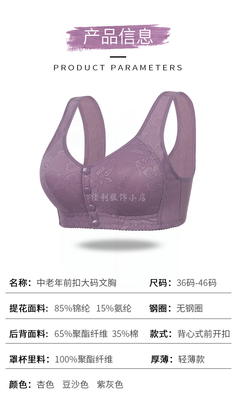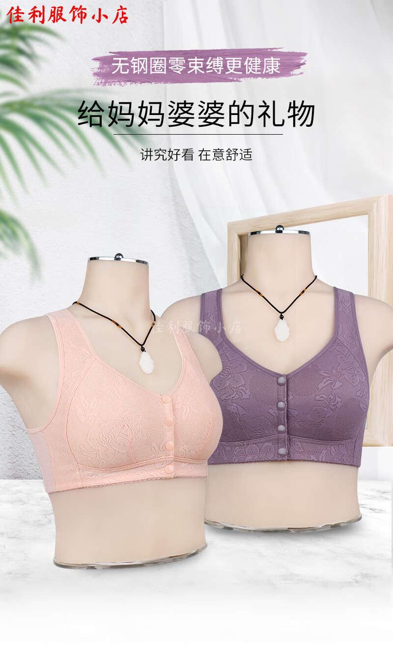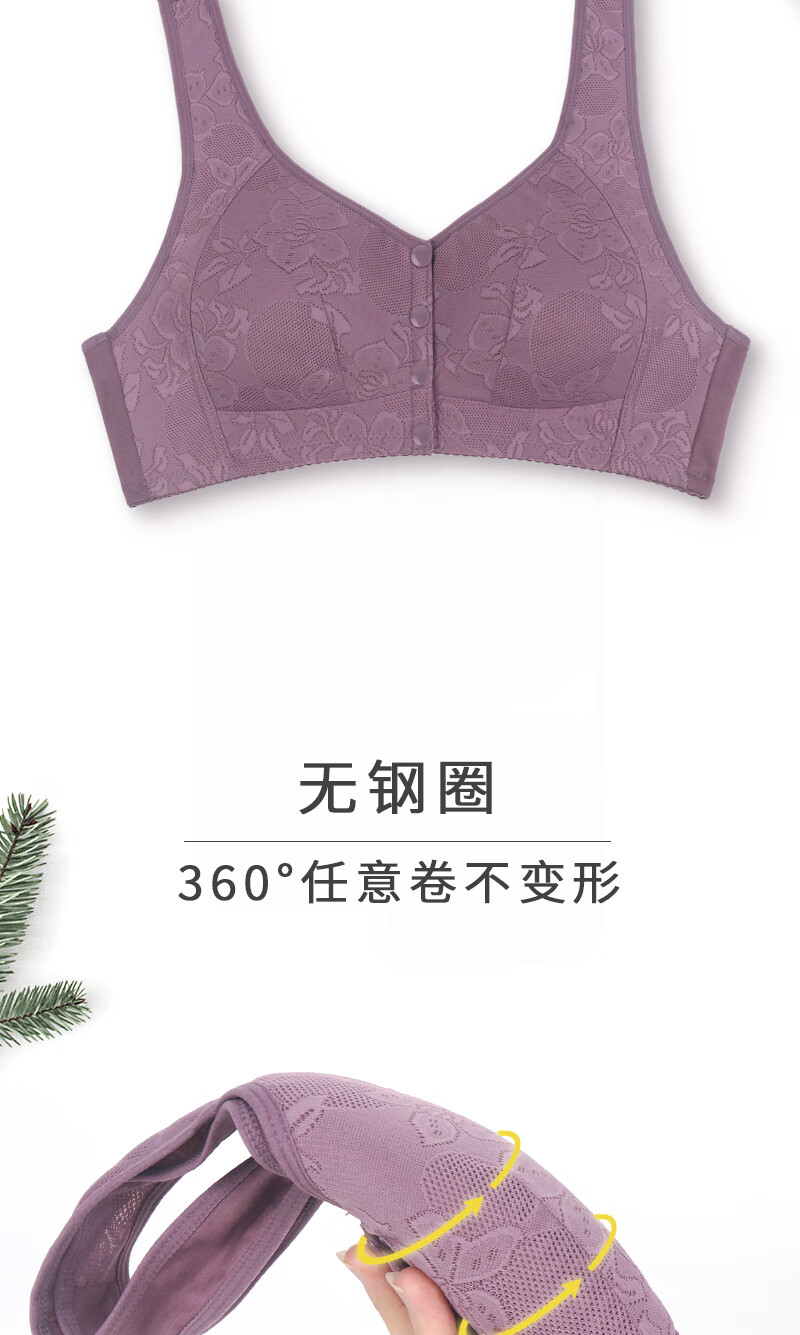 薄款前开扣文胸中老年妈妈无钢圈聚拢内衣女大码美背心式睡眠胸罩 【豆沙色+豆沙色】2件装 100B 【44码】建议130-146斤