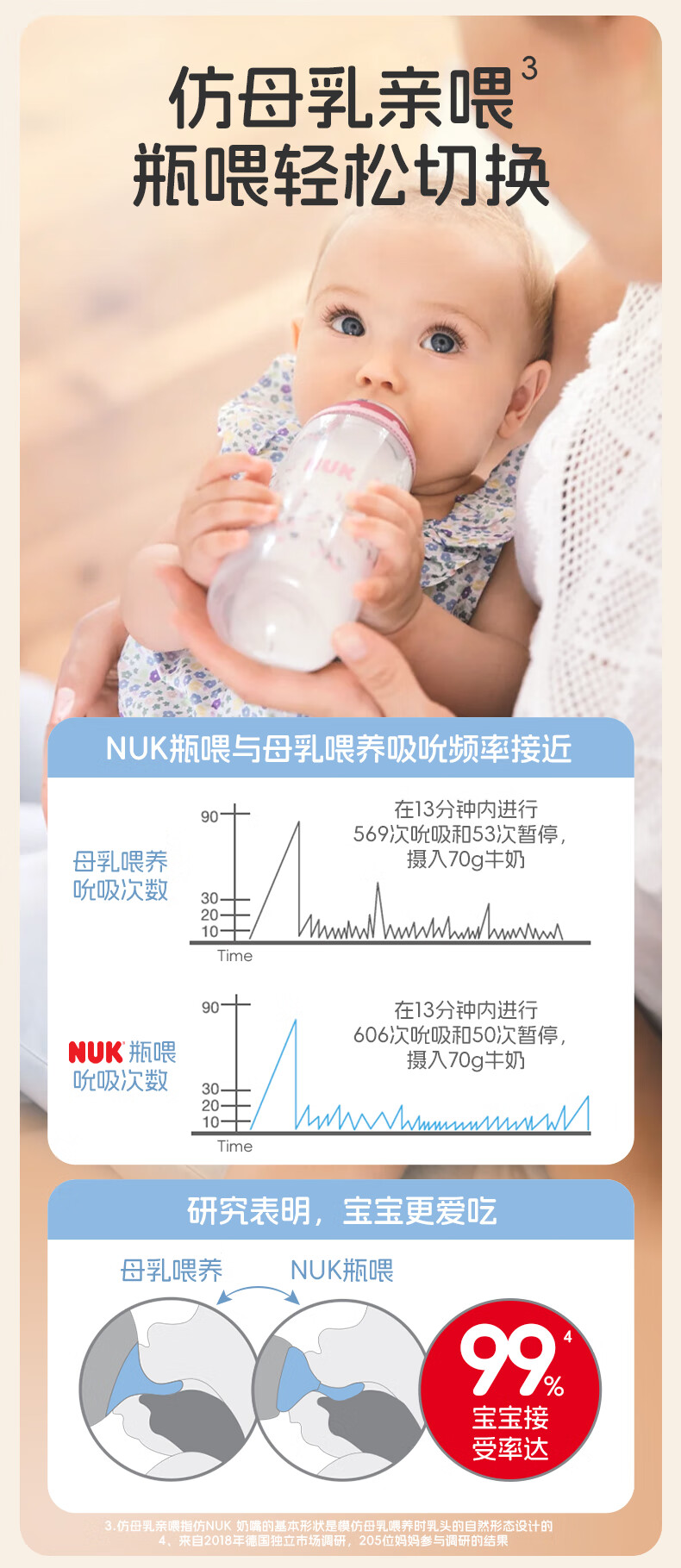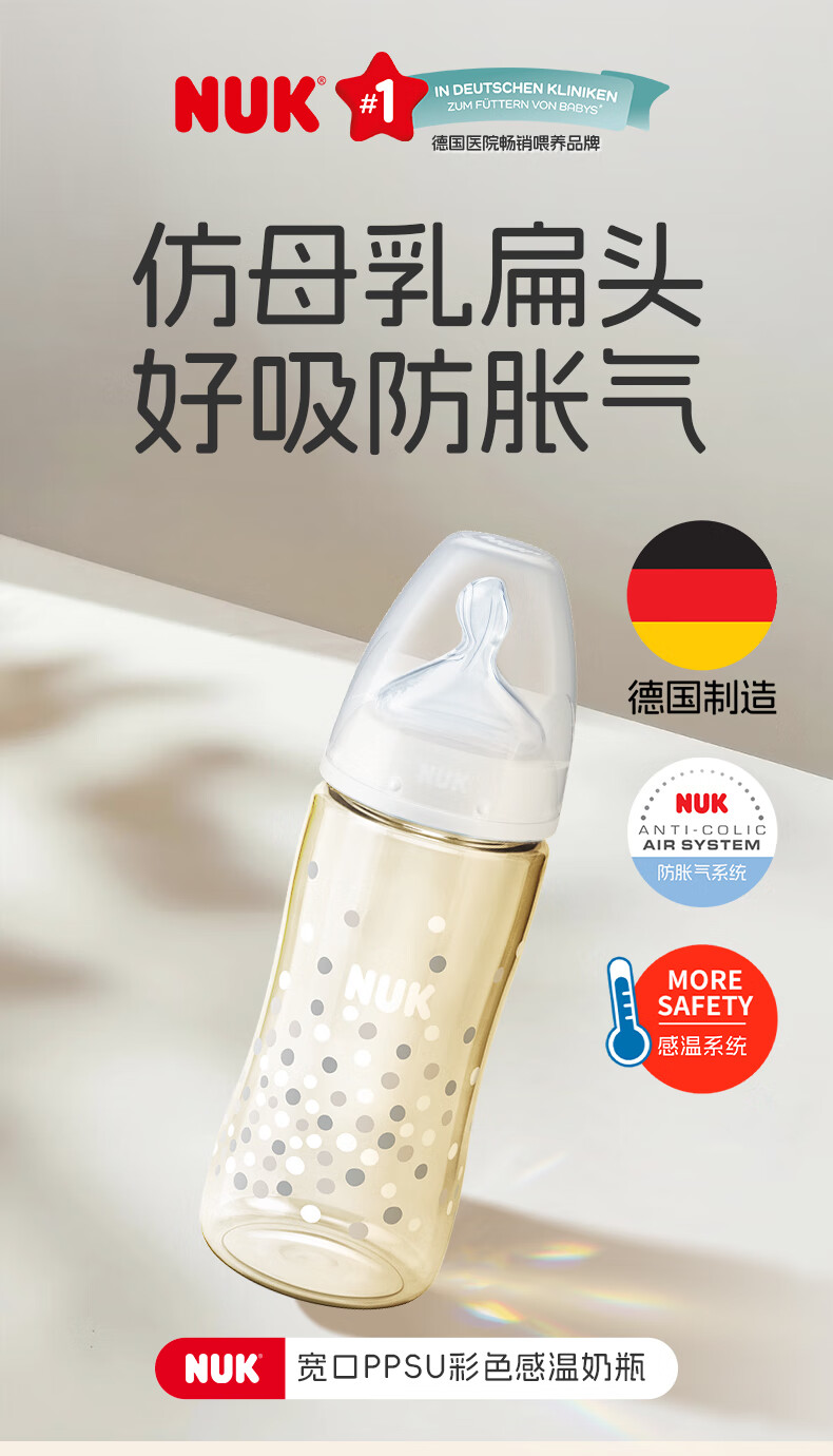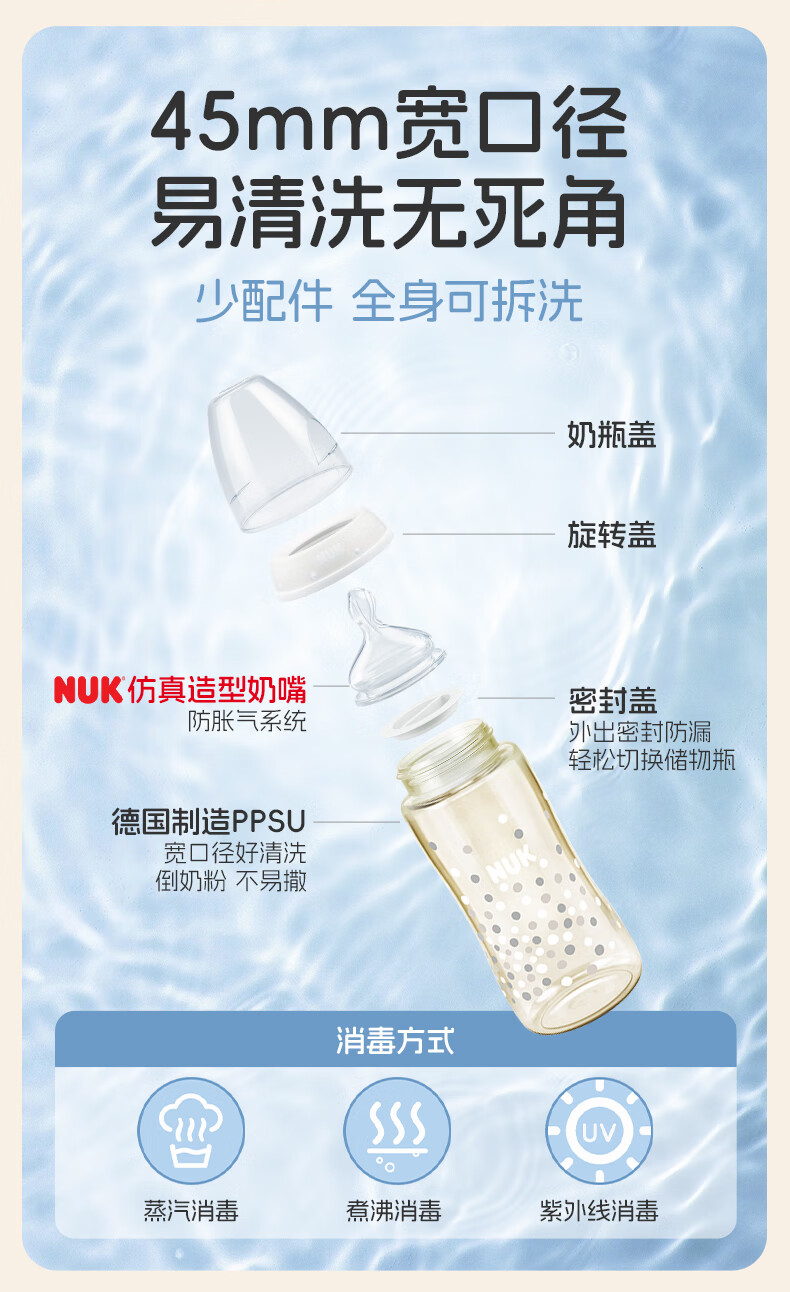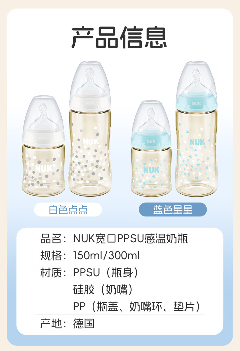 NUK德国进口新生儿PPSU奶瓶玻璃防胀气0到6个月以上宝宝奶嘴婴儿套装 【白色】PPSU+玻璃+硅胶奶嘴*4