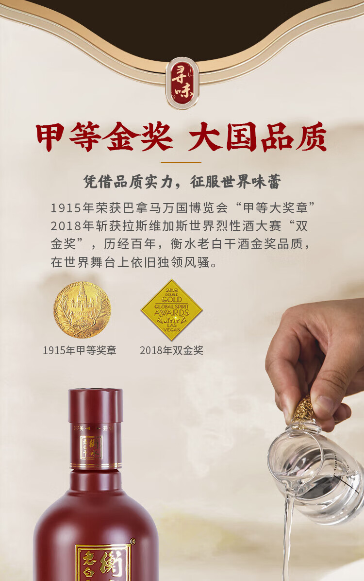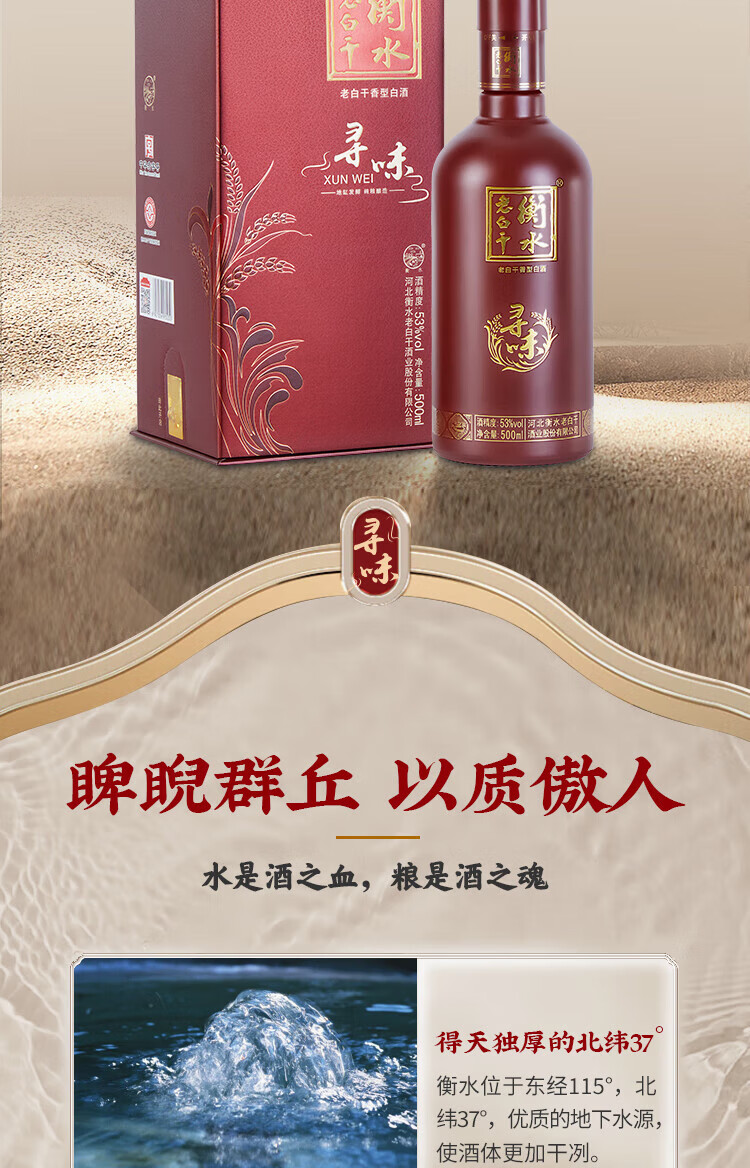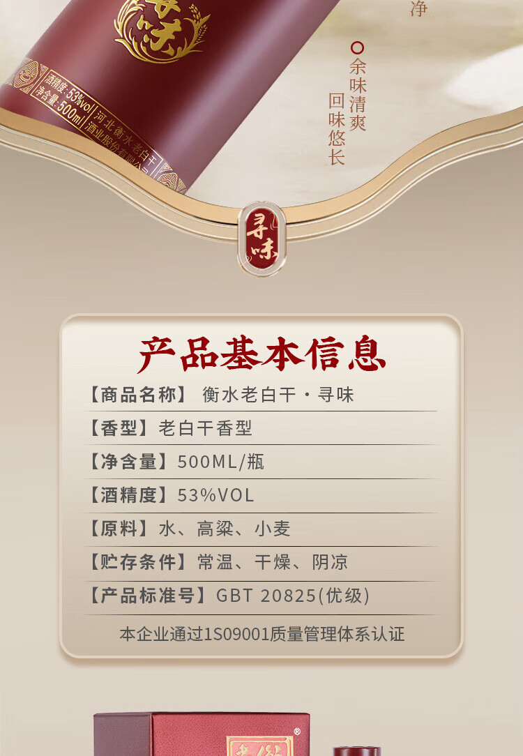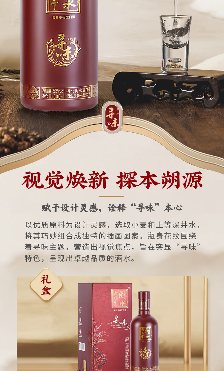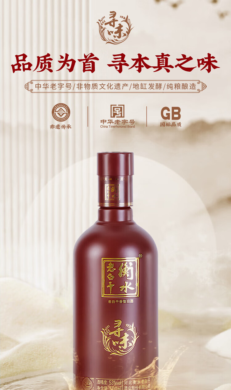 衡水老白干53度寻味 老白干香型白酒 手提礼盒 古法酿造 聚会自饮 53度 500mL 4瓶 (500ml*4)手提装
