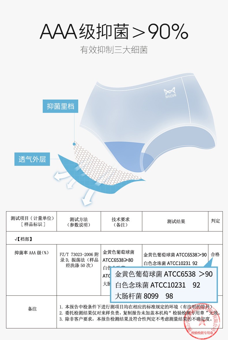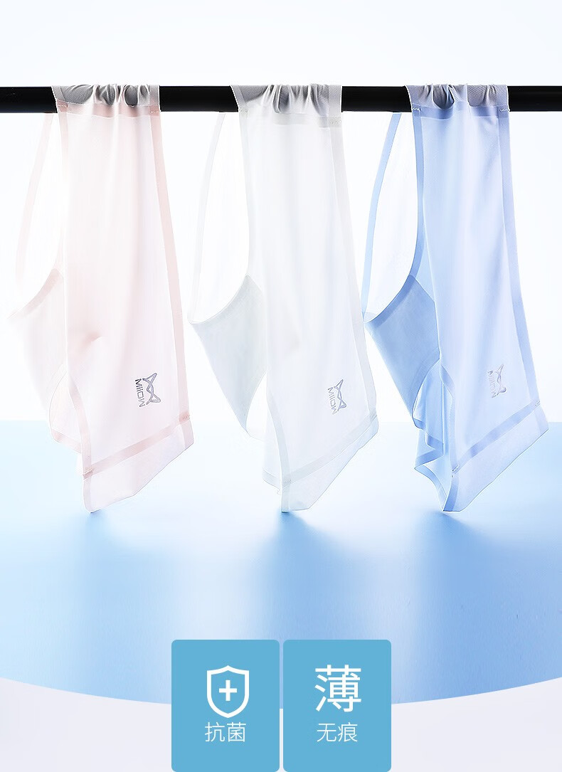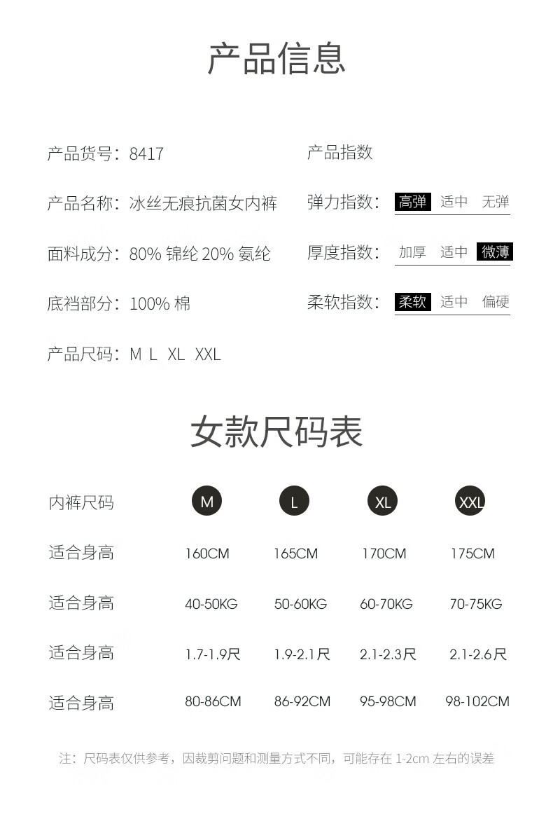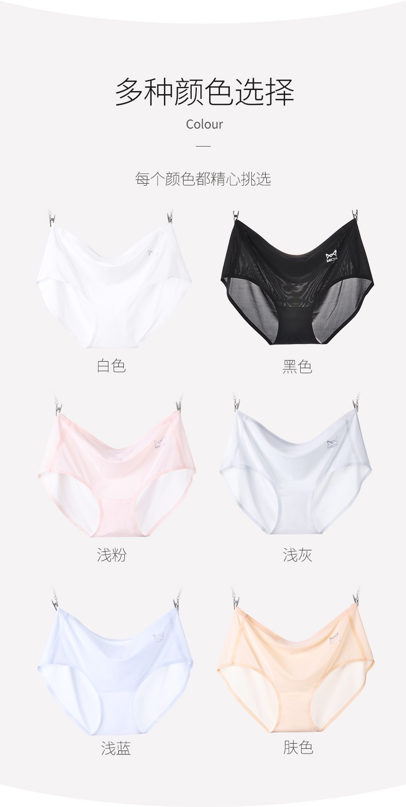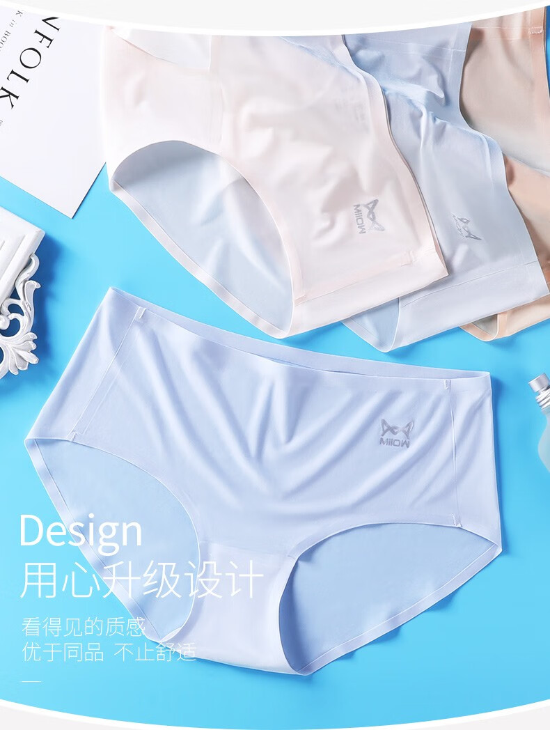 猫人3条女士无痕内裤女冰丝一片式中腰薄款夏季棉质抑菌裆三角短裤 浅粉+浅灰+黑色 3条 XL (110-125斤)