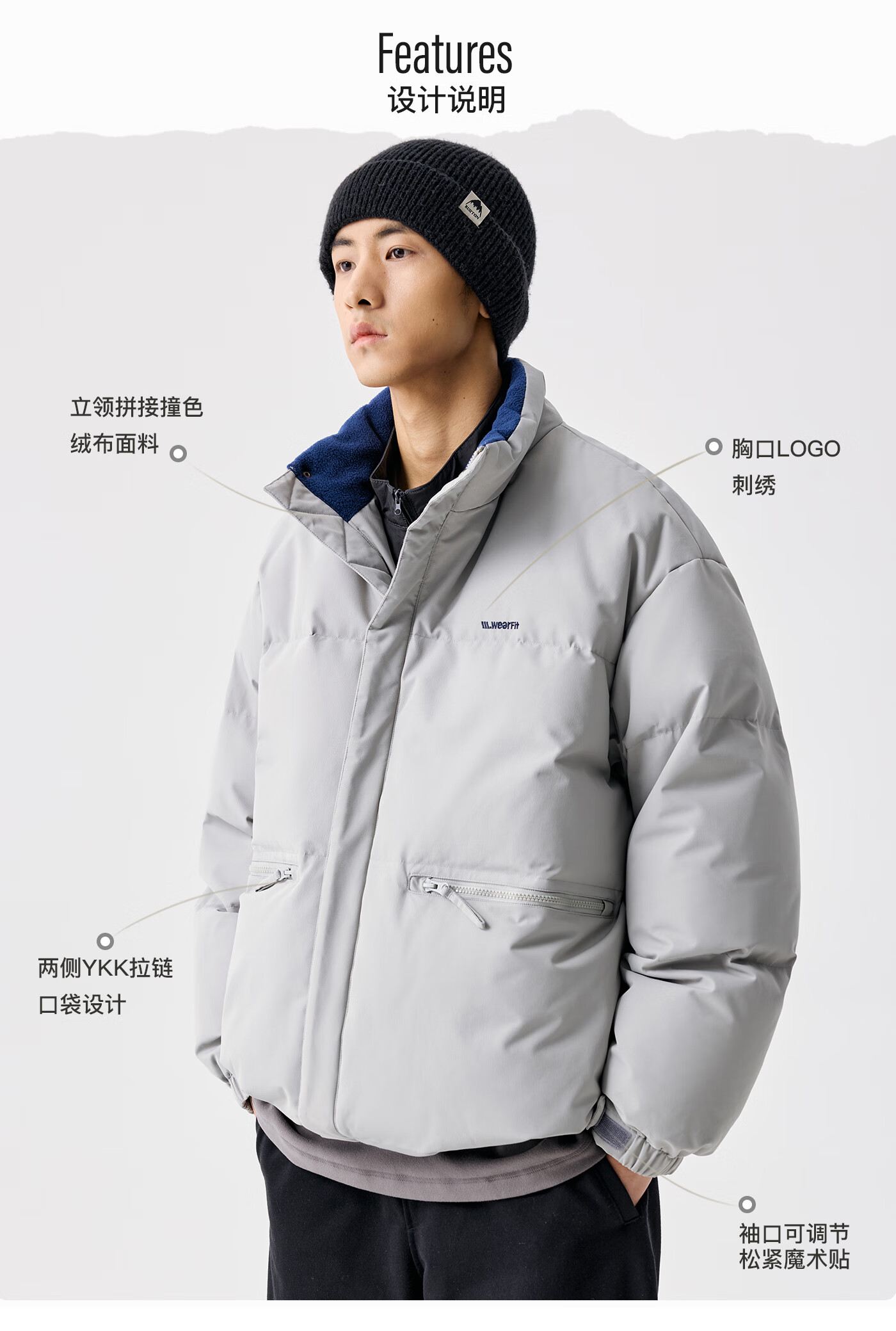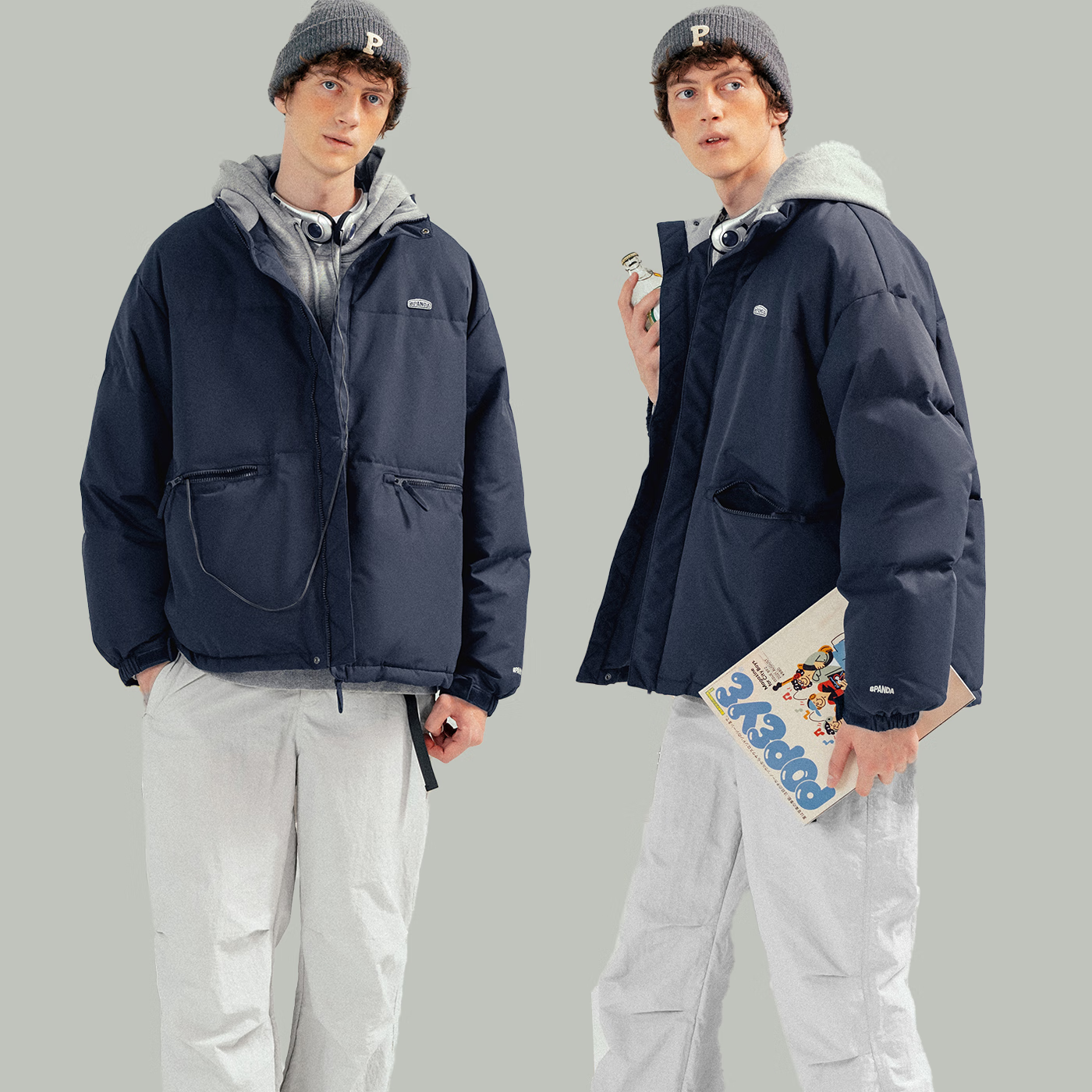 熊猫·本(ben.panda)工装羽绒服男厚款宽松日系立领防寒保暖短款衣秋冬多穿面包服外套 藏青色 「24款1.0」85绒子·新国标 XL