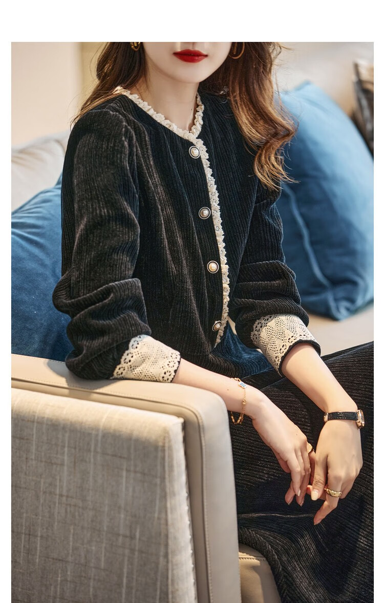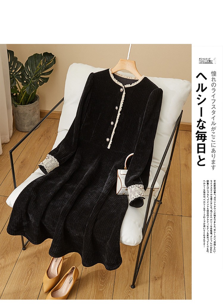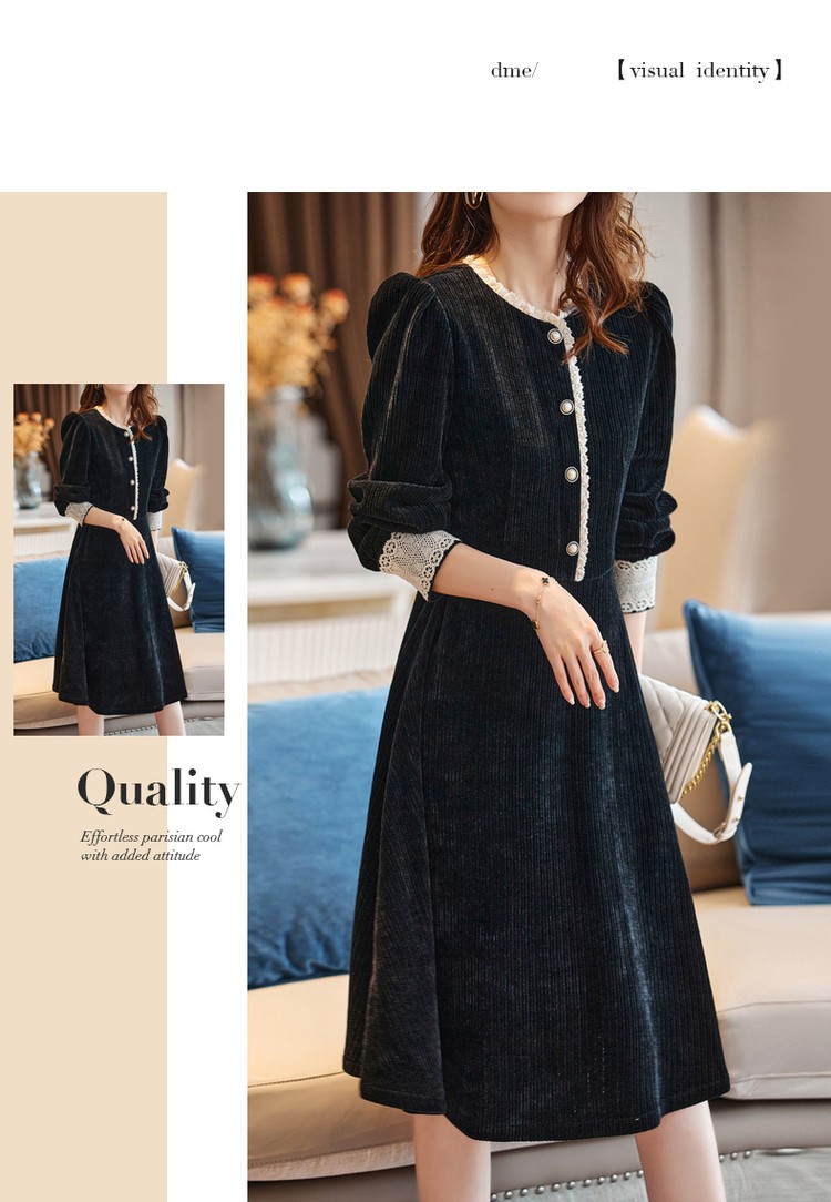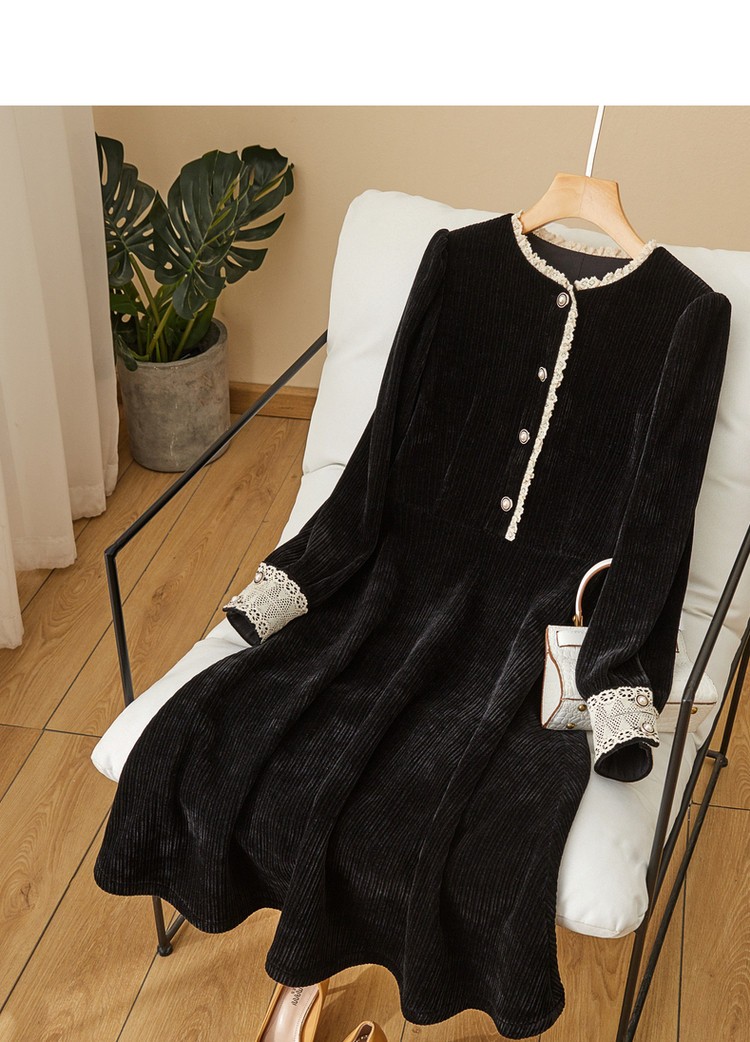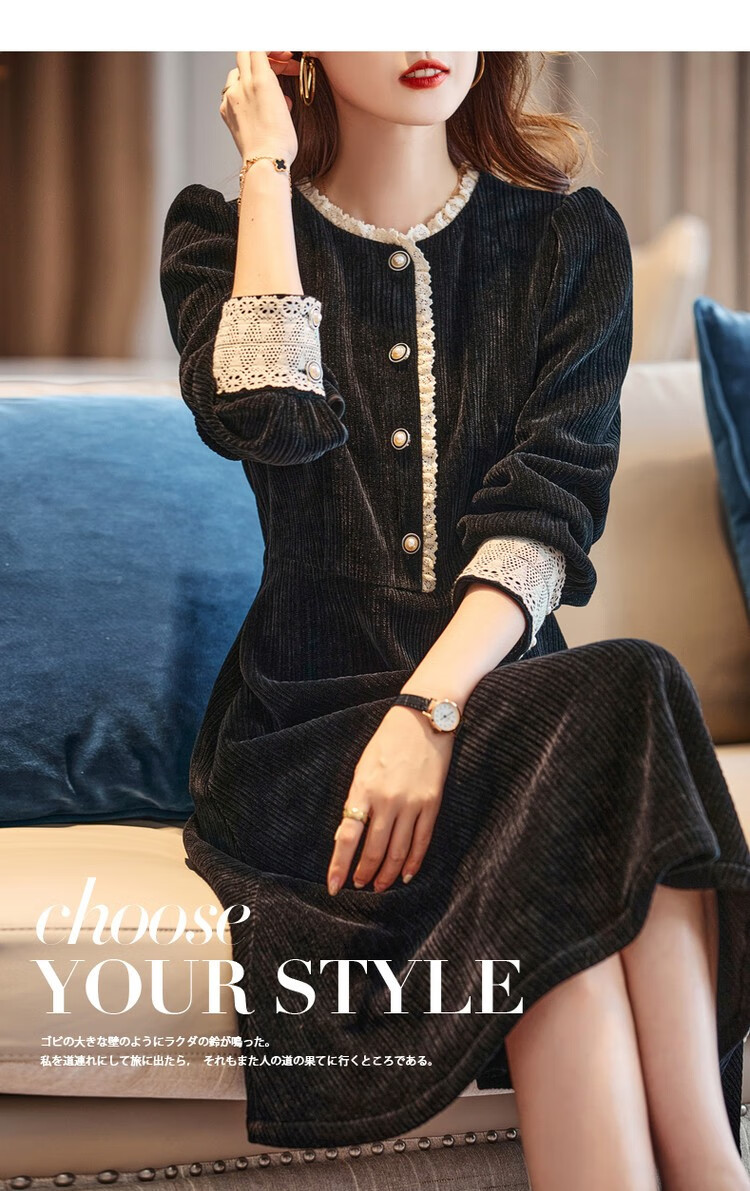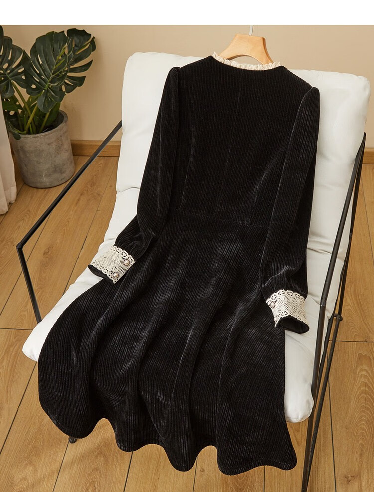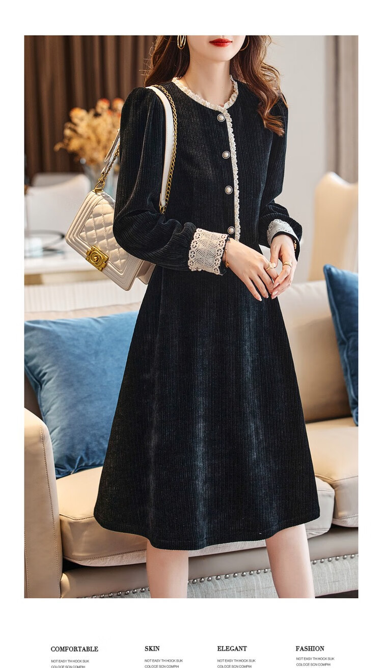莎妮朵罗大码女装连衣裙秋冬新品胖mm胖人显瘦款遮肚遮肉修身小黑裙17820 黑色- 加绒 2XL 建议120-140斤穿着
