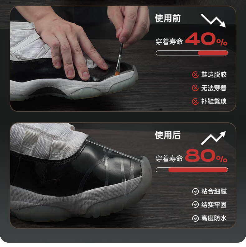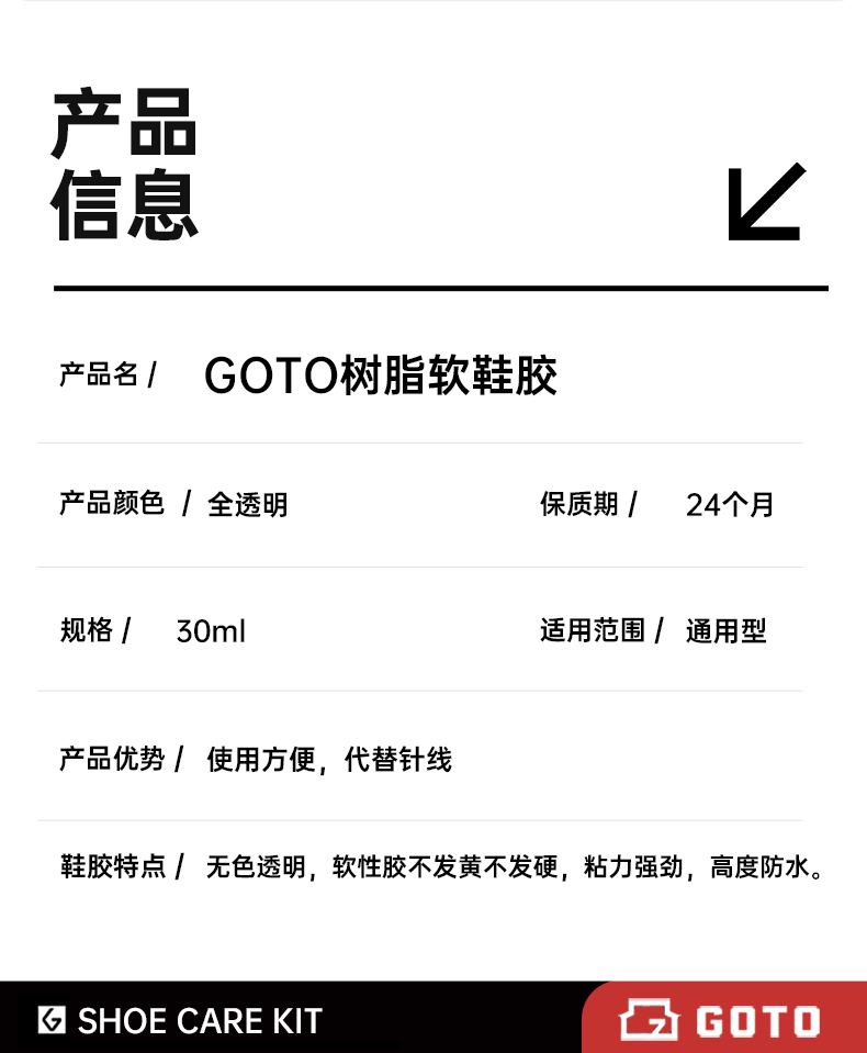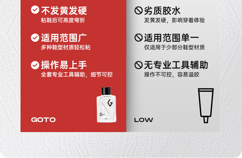 GOTO球鞋修补胶水VANS运动球鞋皮鞋帆布鞋软性树脂胶防水强力粘鞋胶 快速鞋胶(含解胶剂)