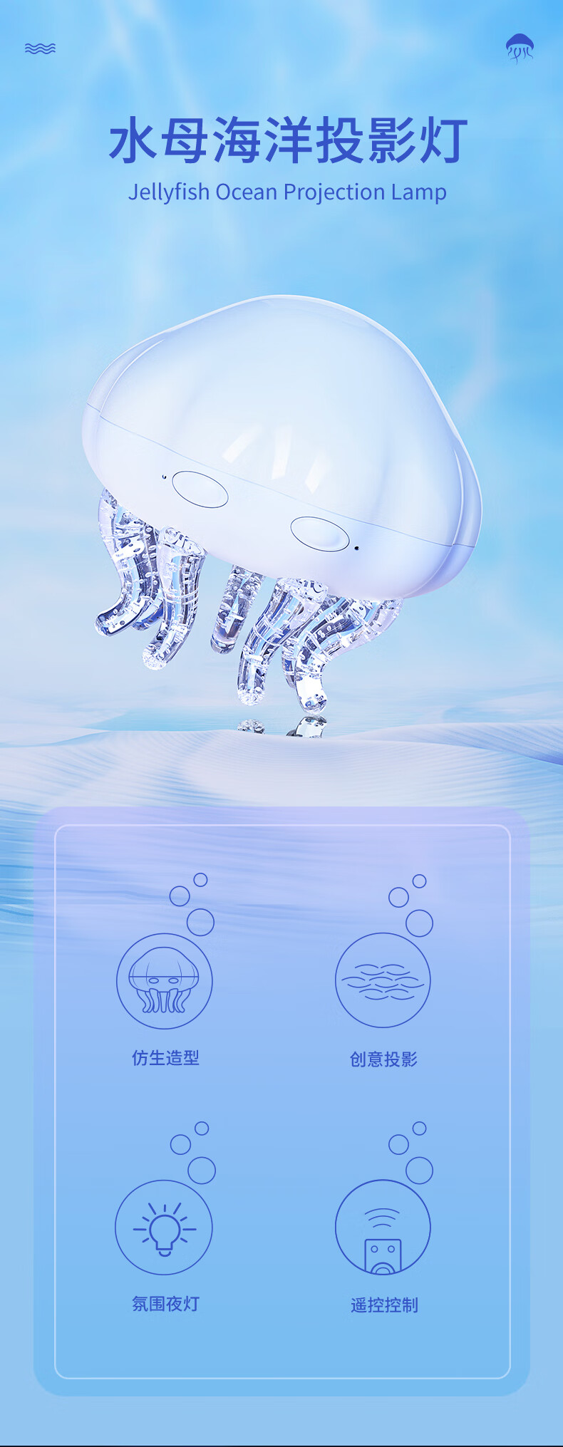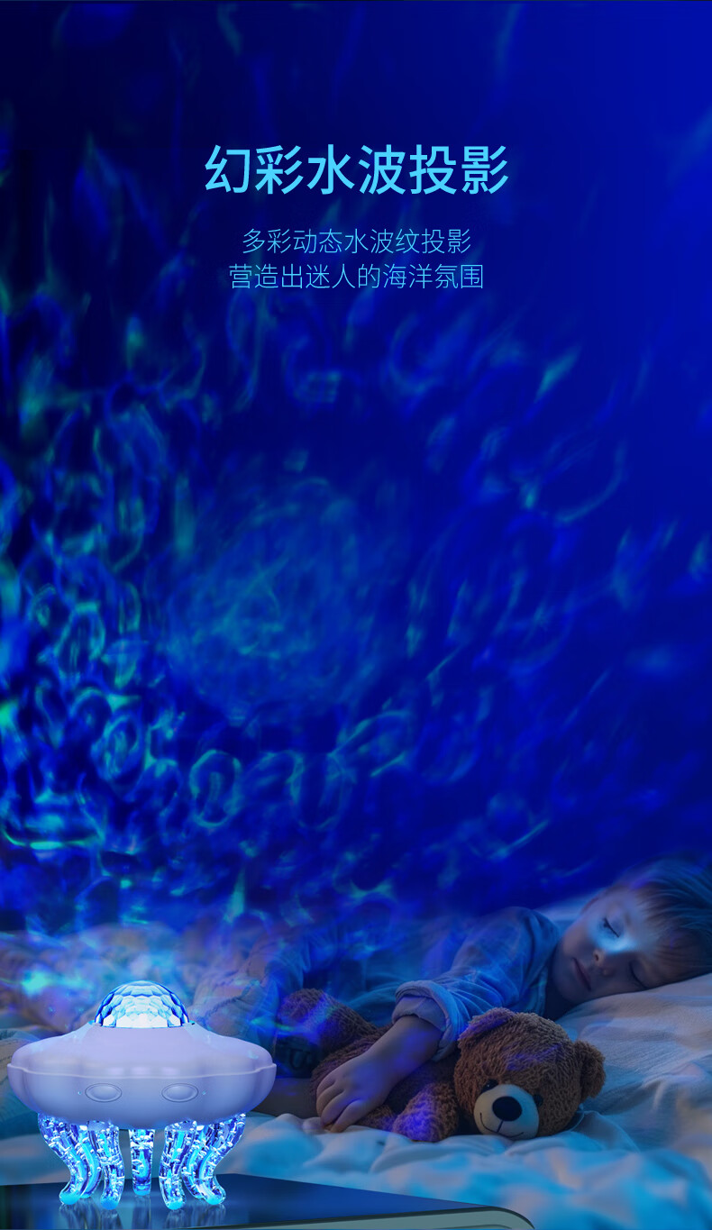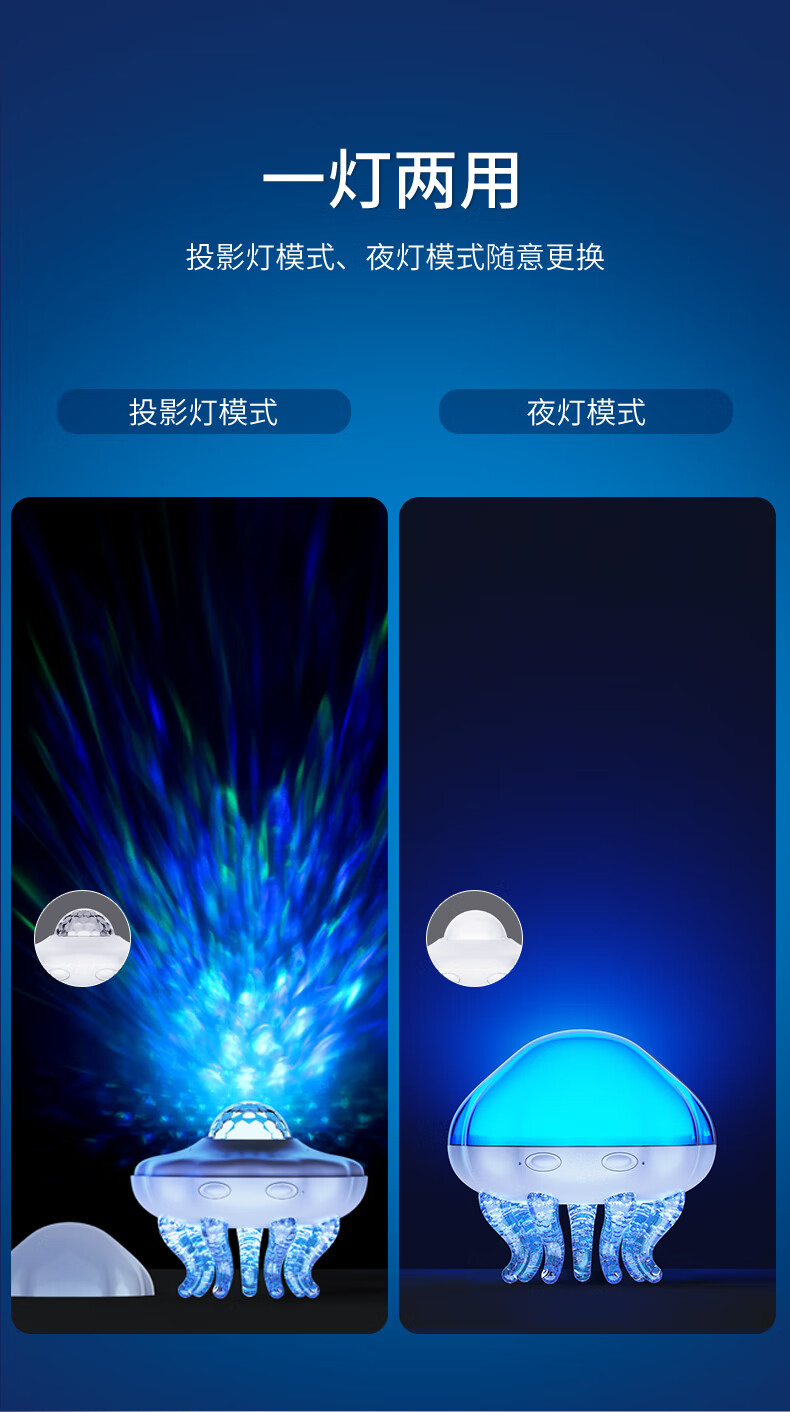 富缘水母蓝牙音响星空投影灯小音响创意儿童礼物卧室氛围灯音箱播放器 海洋水母星空投影灯插电蓝牙版