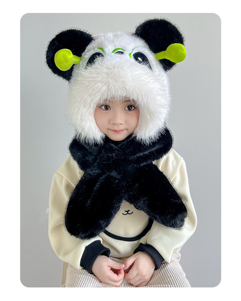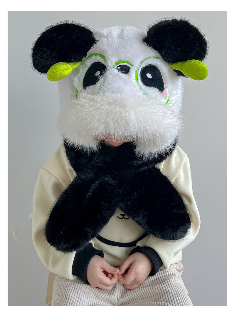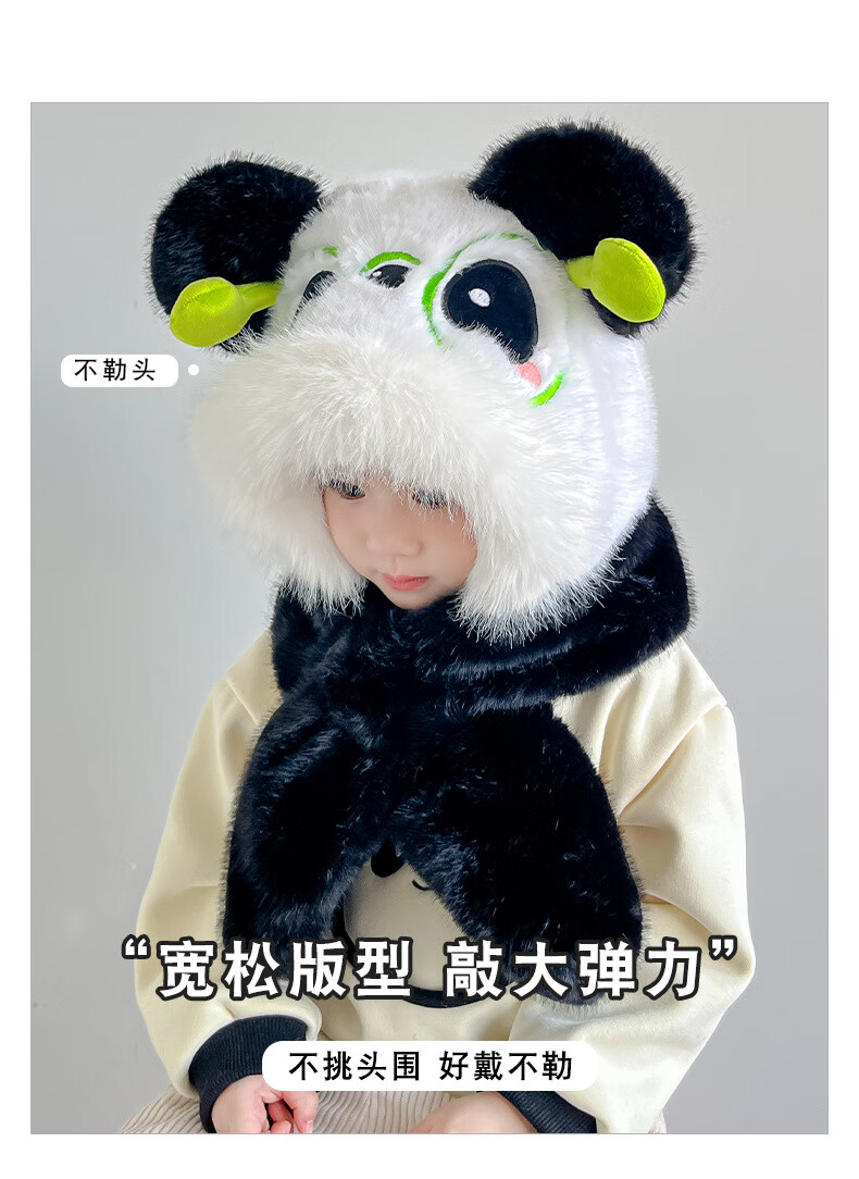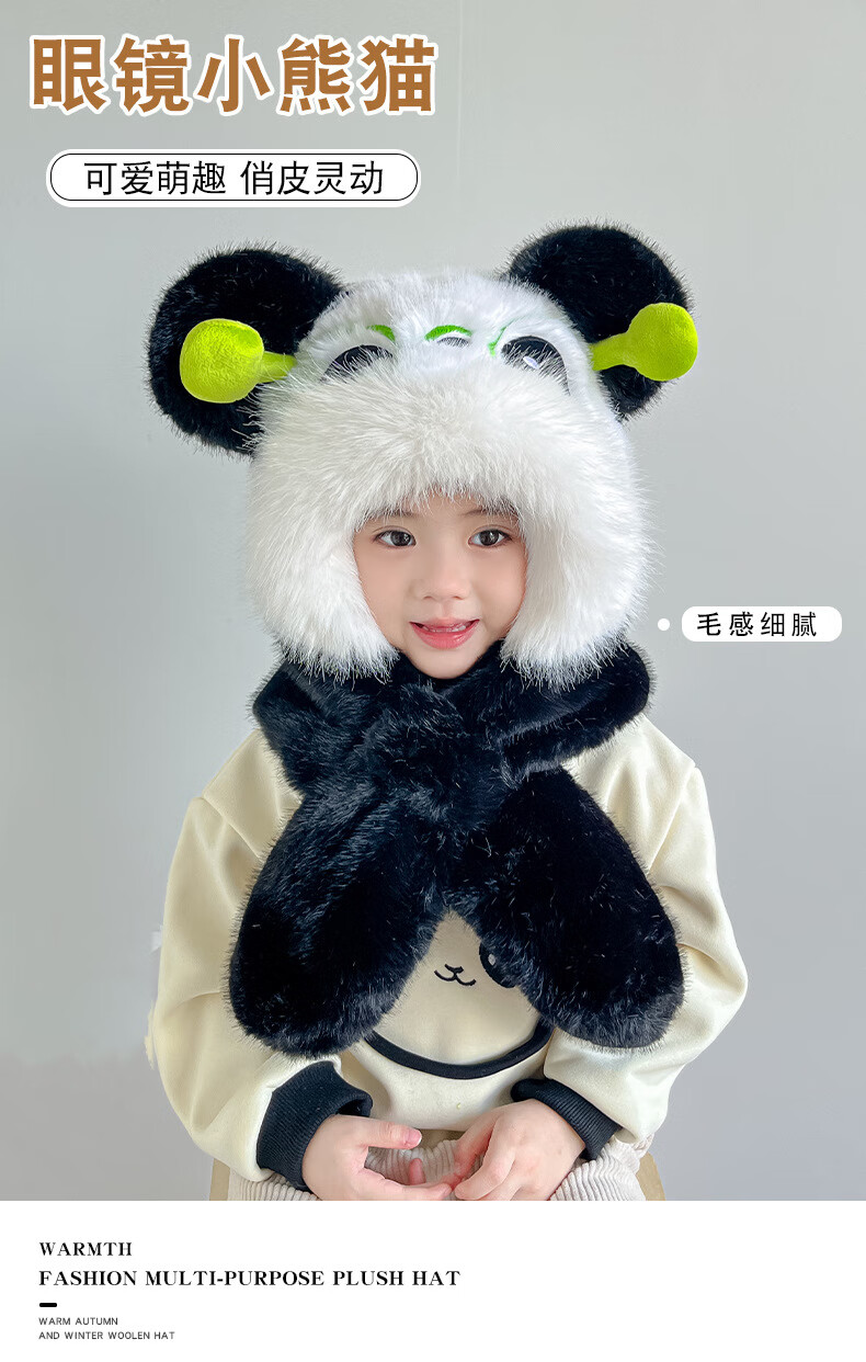 G.duck小黄鸭宝宝加厚帽子围巾一体秋冬款可爱儿童防风帽男童女童熊猫护 儿童眼镜熊猫款【二件套】 均码