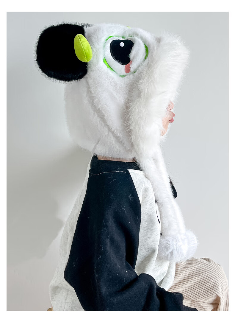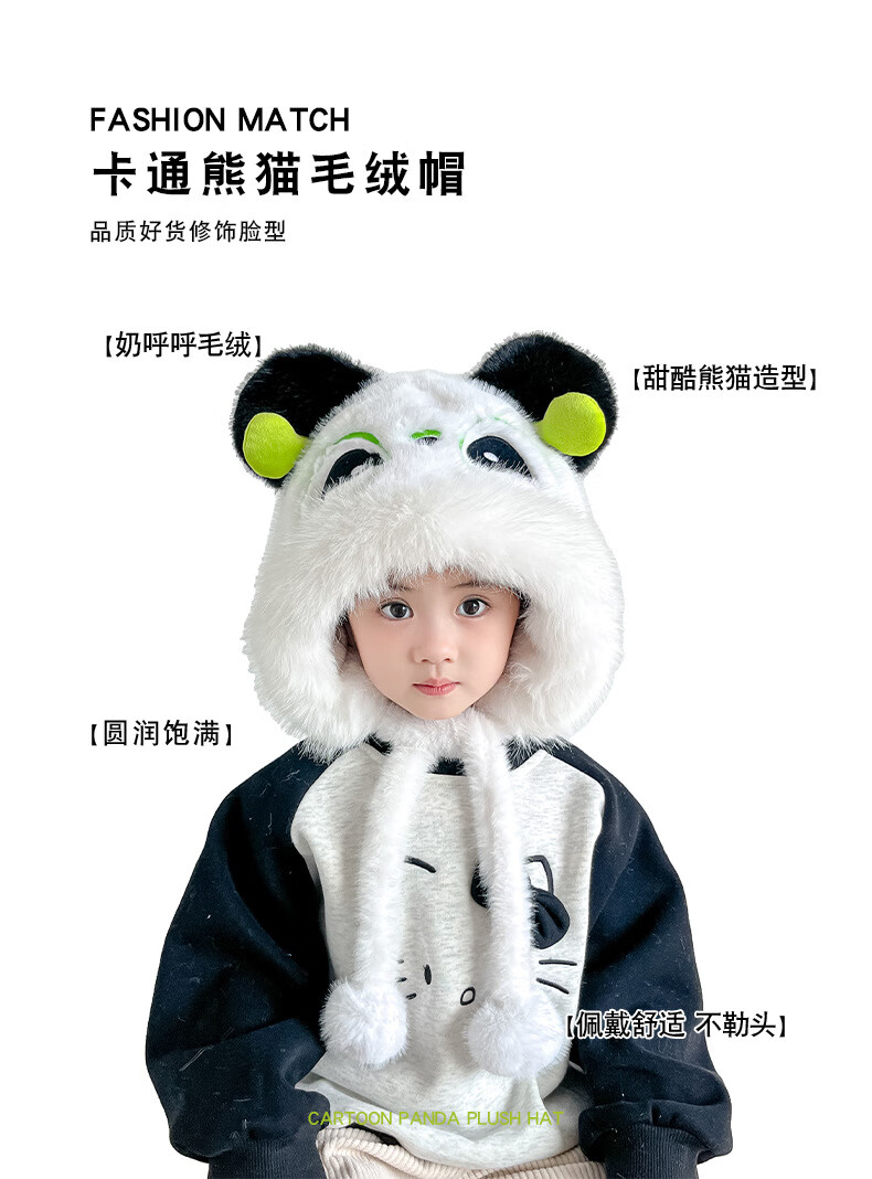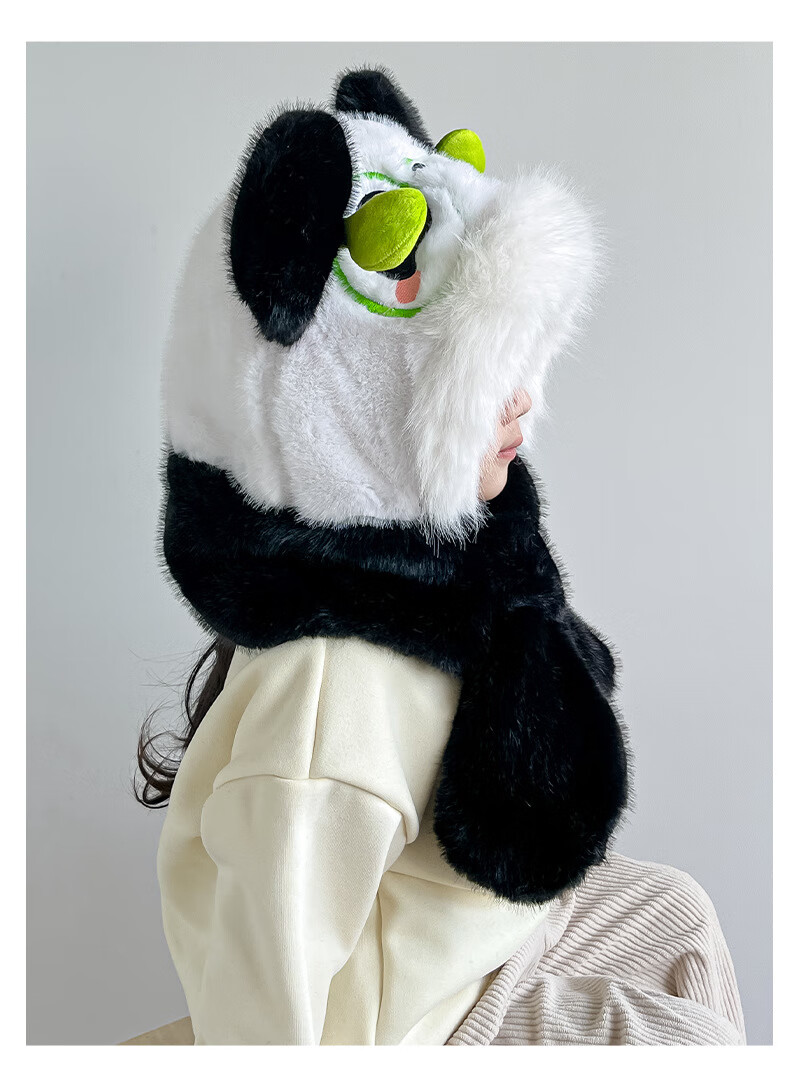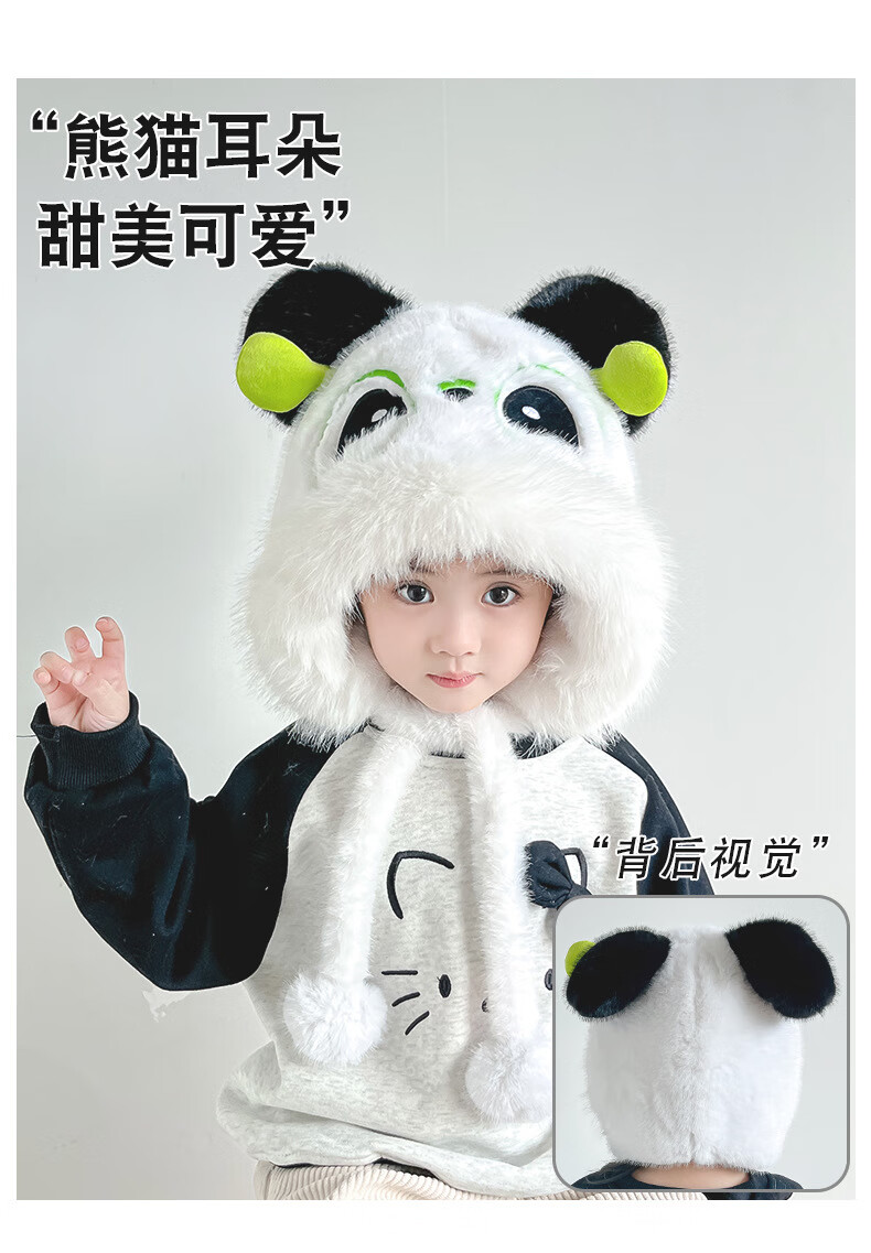 G.duck小黄鸭宝宝加厚帽子围巾一体秋冬款可爱儿童防风帽男童女童熊猫护 儿童眼镜熊猫款【二件套】 均码