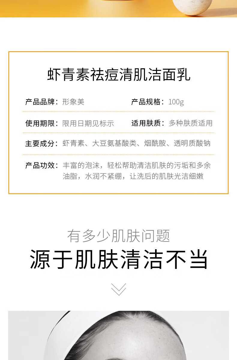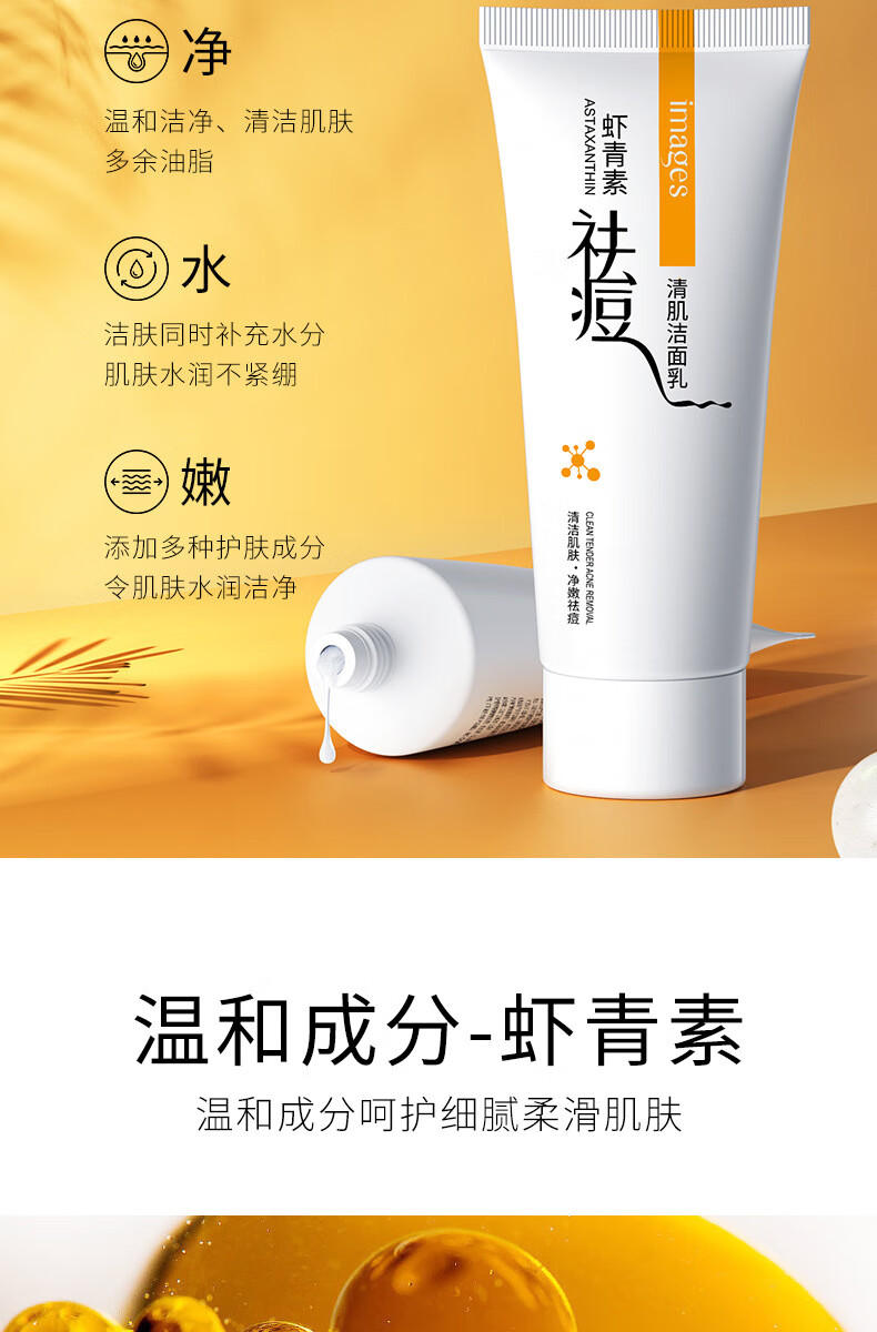 玖美堂烟酰胺氨基酸洗面奶温和美白保湿补水绵密泡沫洗面奶批发 100g 形象美虾青素祛痘清肌洁面乳(新