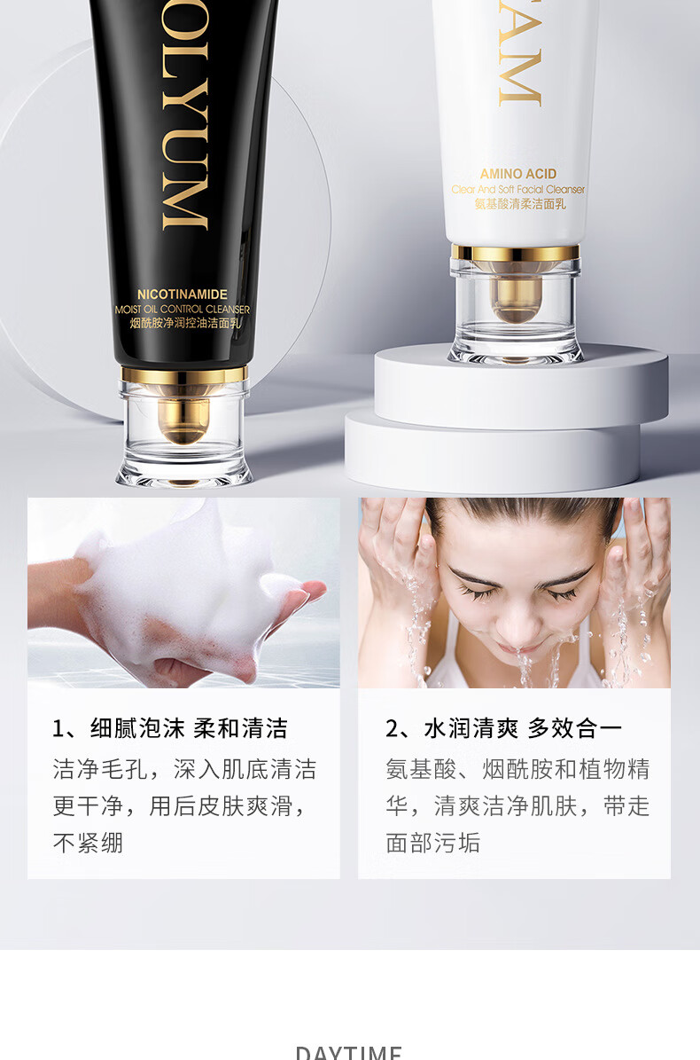 安蓓芮氨基酸洗面奶泡沫洁面慕斯卸妆二合一深层清洁收缩毛孔控油祛痘女 轻柔净澈清爽控油(2瓶优惠装)