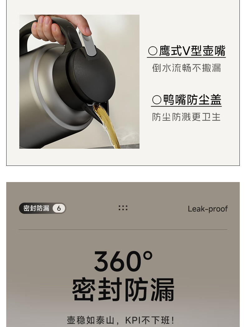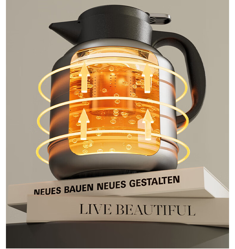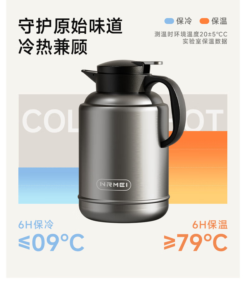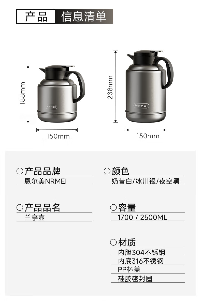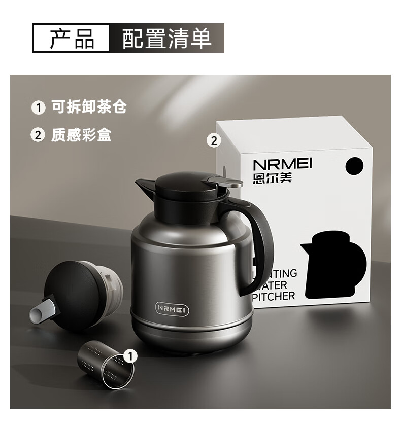 恩尔美(nRMEi)大容量焖茶壶316不锈钢茶水分离办公家用新款保温热水壶 黑色2.5L【48h长效保温+可拆卸茶仓】