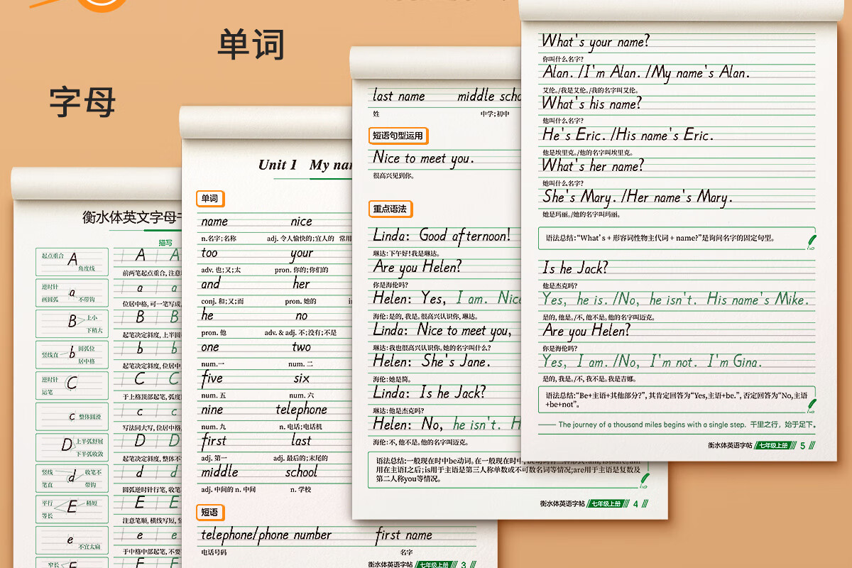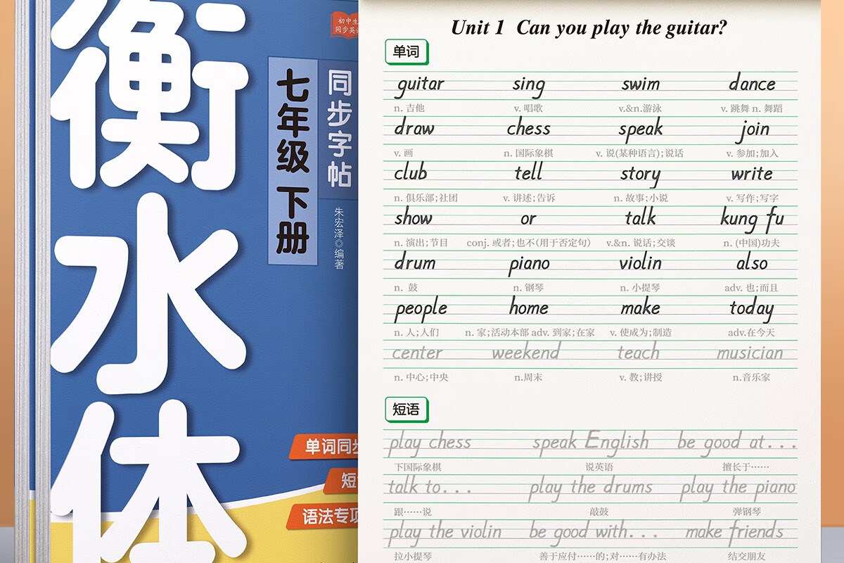 金枝叶衡水体英语字帖七年级八年级上册下册九年级2025人教版同步练字帖语文初中生专用临摹练字本英文字母书写练习单词初一初二钢笔每日一练 七年级英语上册