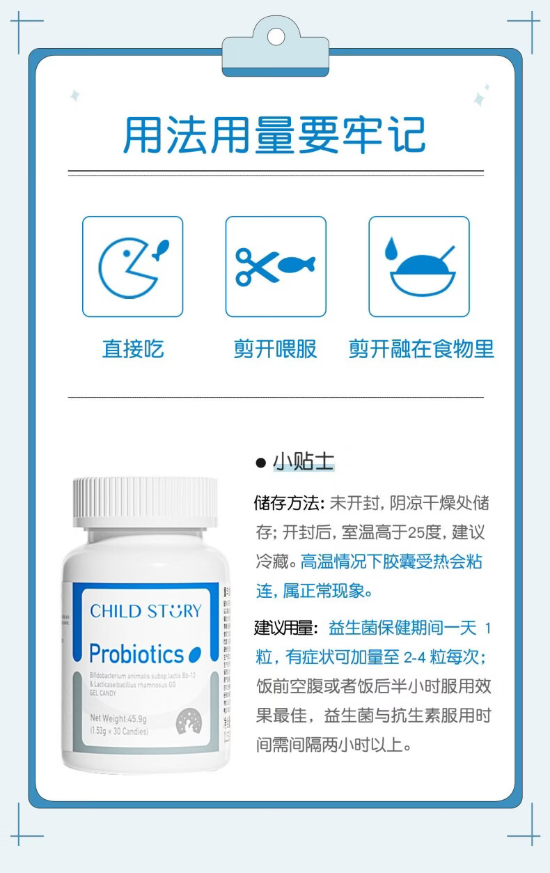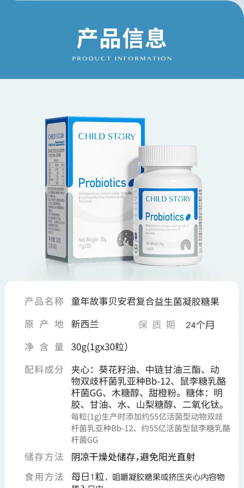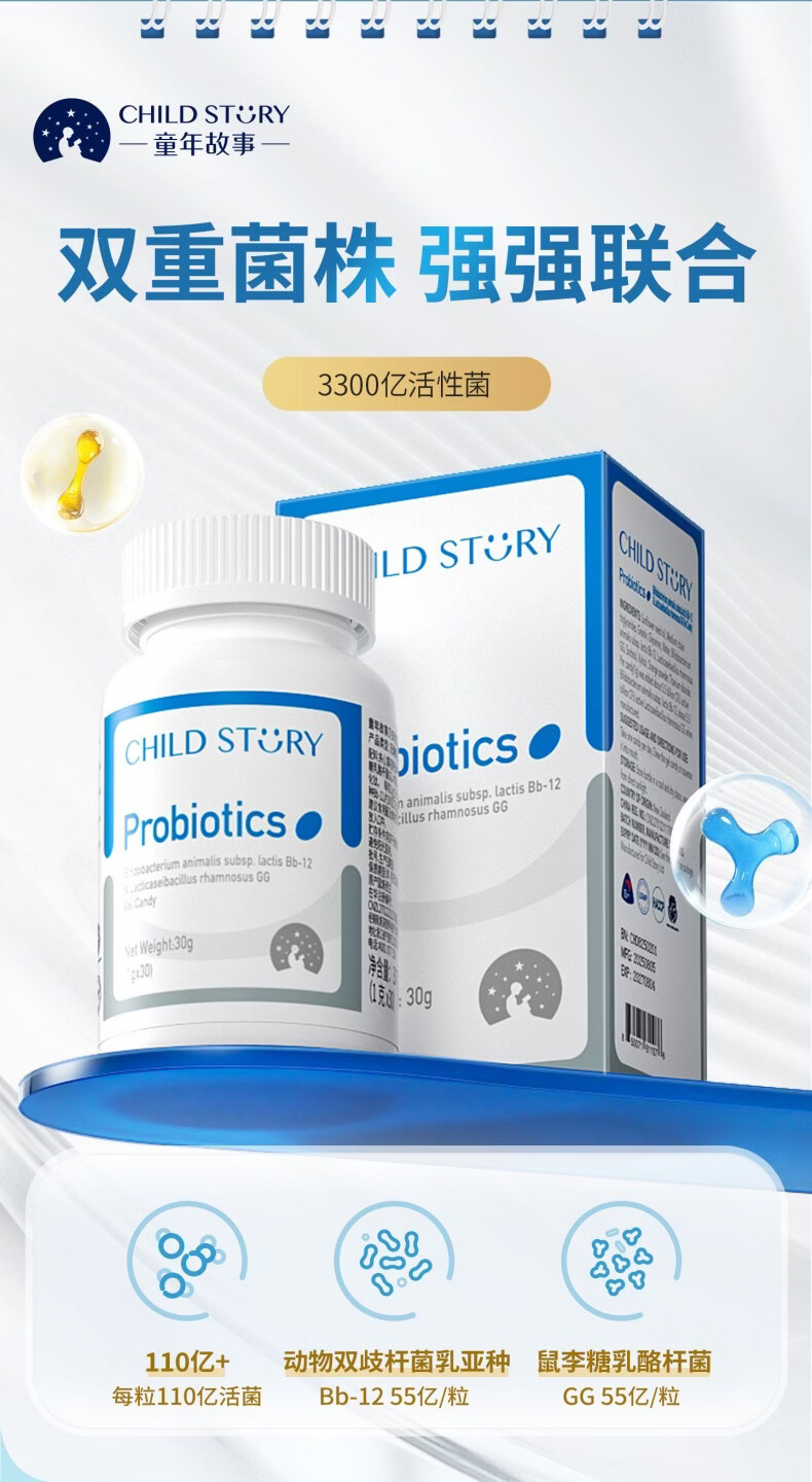 童年故事Child Story动物双岐杆菌+鼠李糖乳杆菌GG 复合益生菌胶囊 儿童宝宝益生菌胶囊(新西兰原装进口) 30粒*1瓶