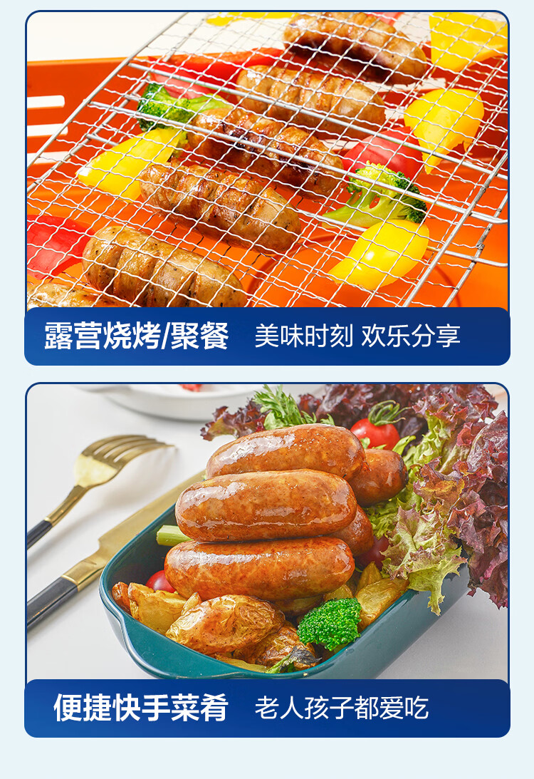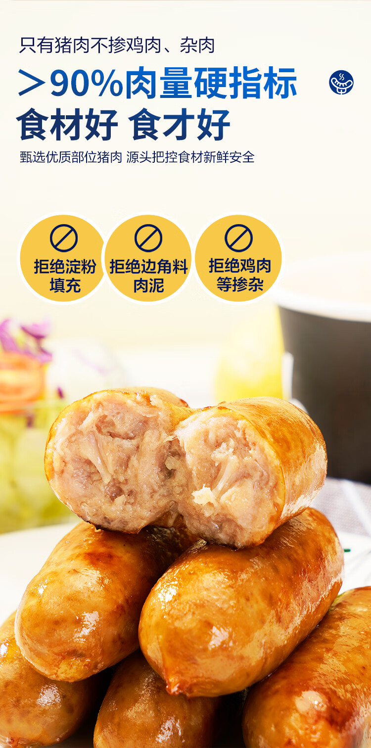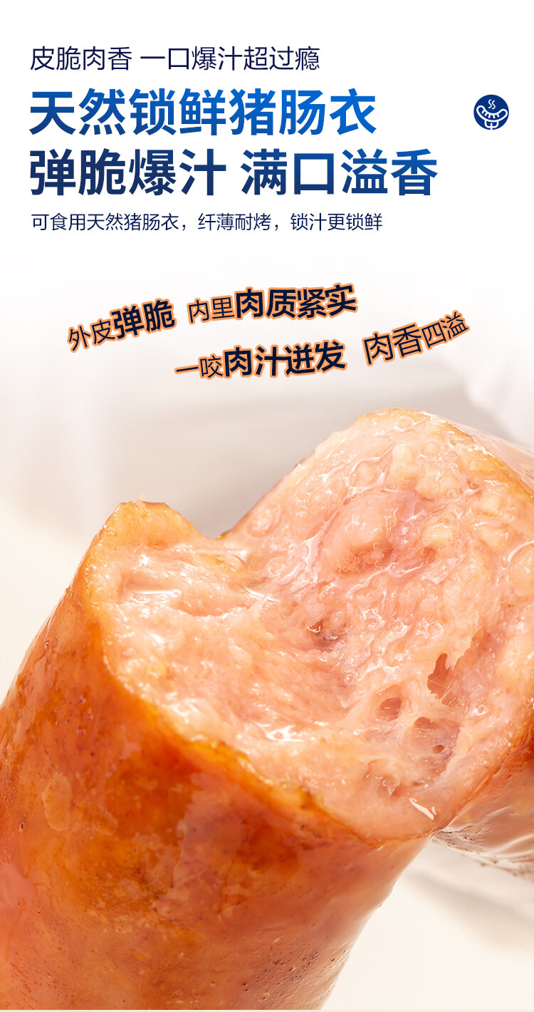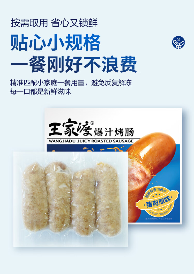 王家渡90%纯肉爆汁烤肠儿童早餐火山石烤肠空气炸锅烧烤食材 180g*5盒【黑椒】