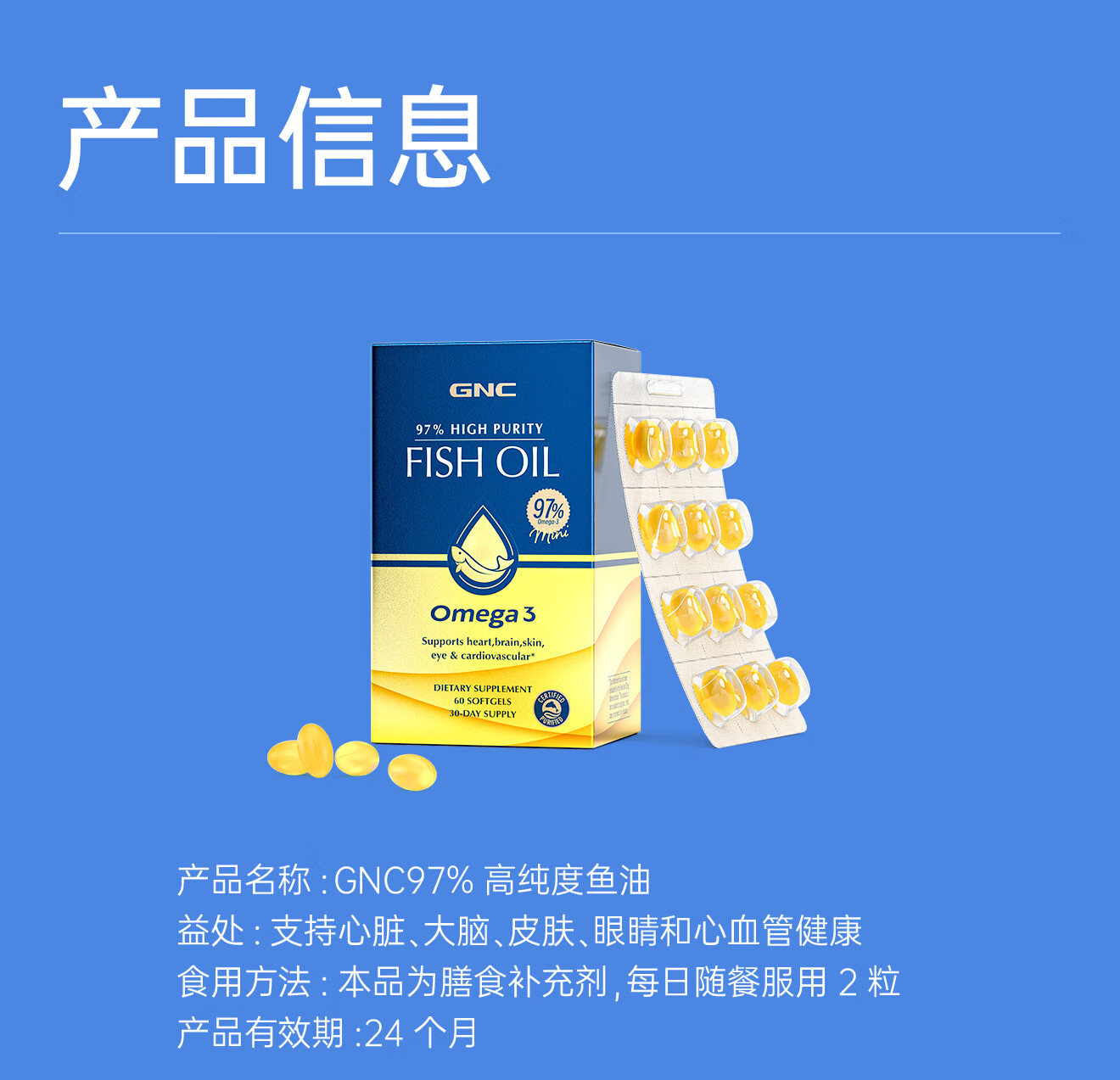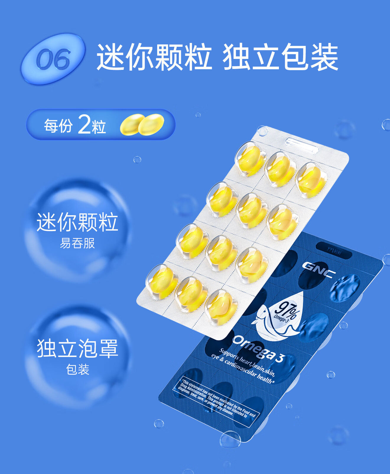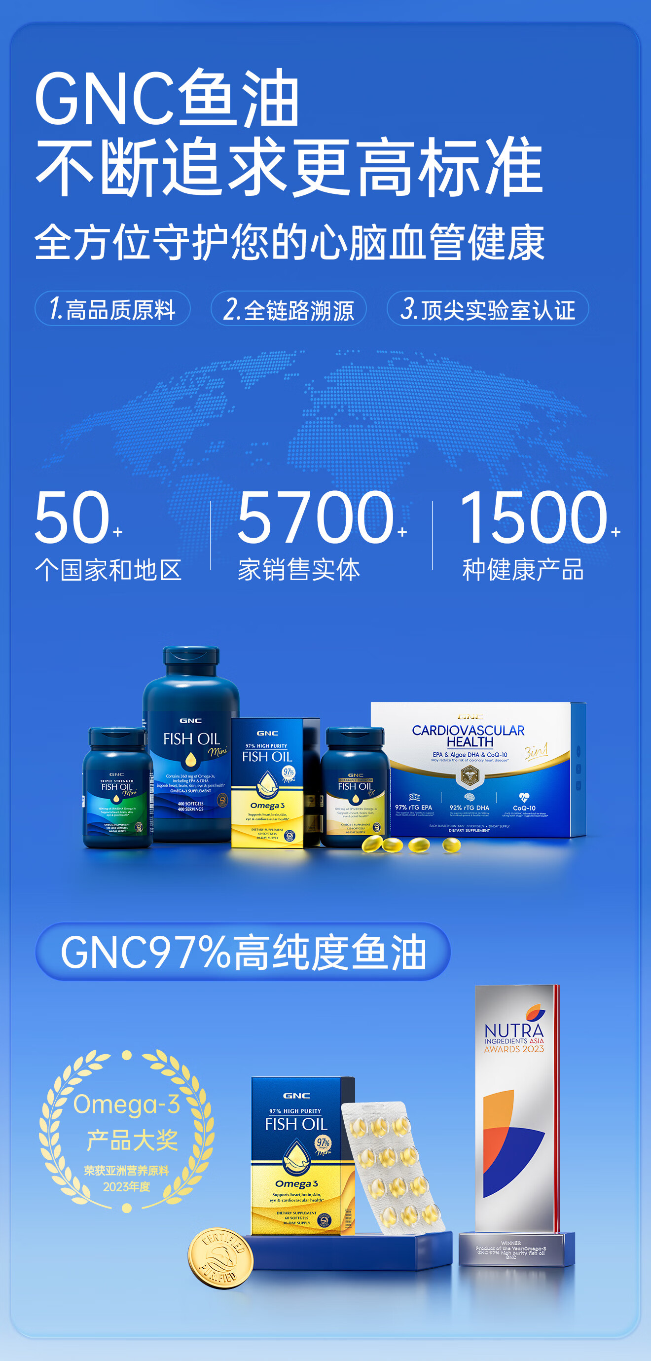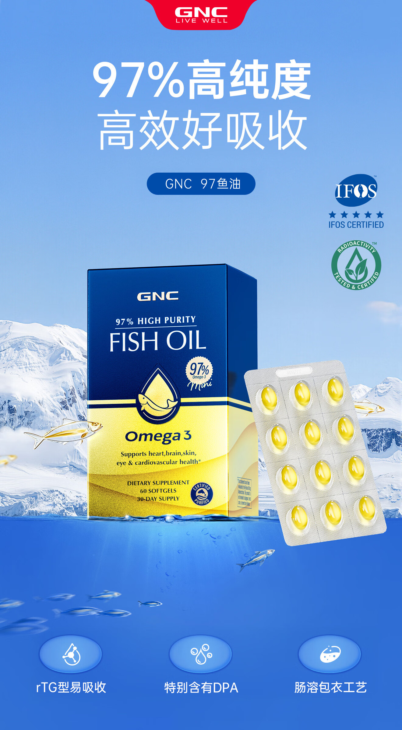 健安喜GNC健安喜97%鱼油深海高纯度高吸收 无腥深海鱼油迷你独立包装 【周期装90天量】 60粒*3盒