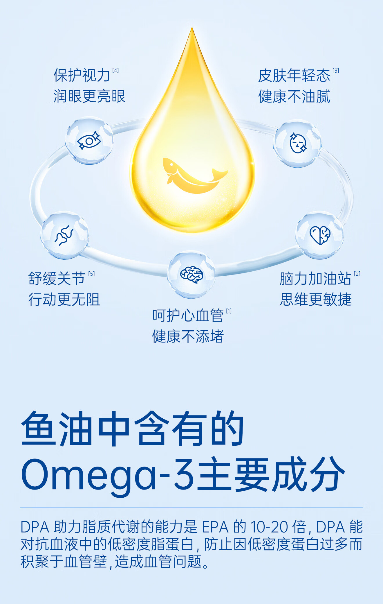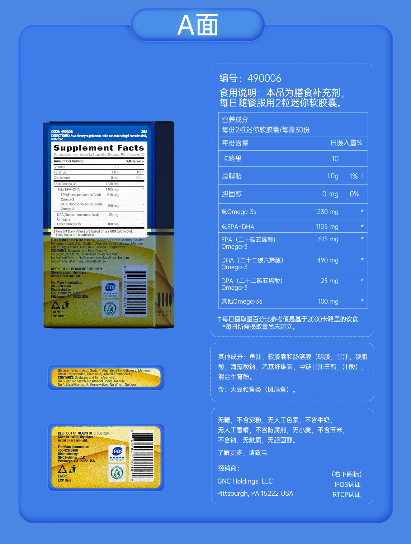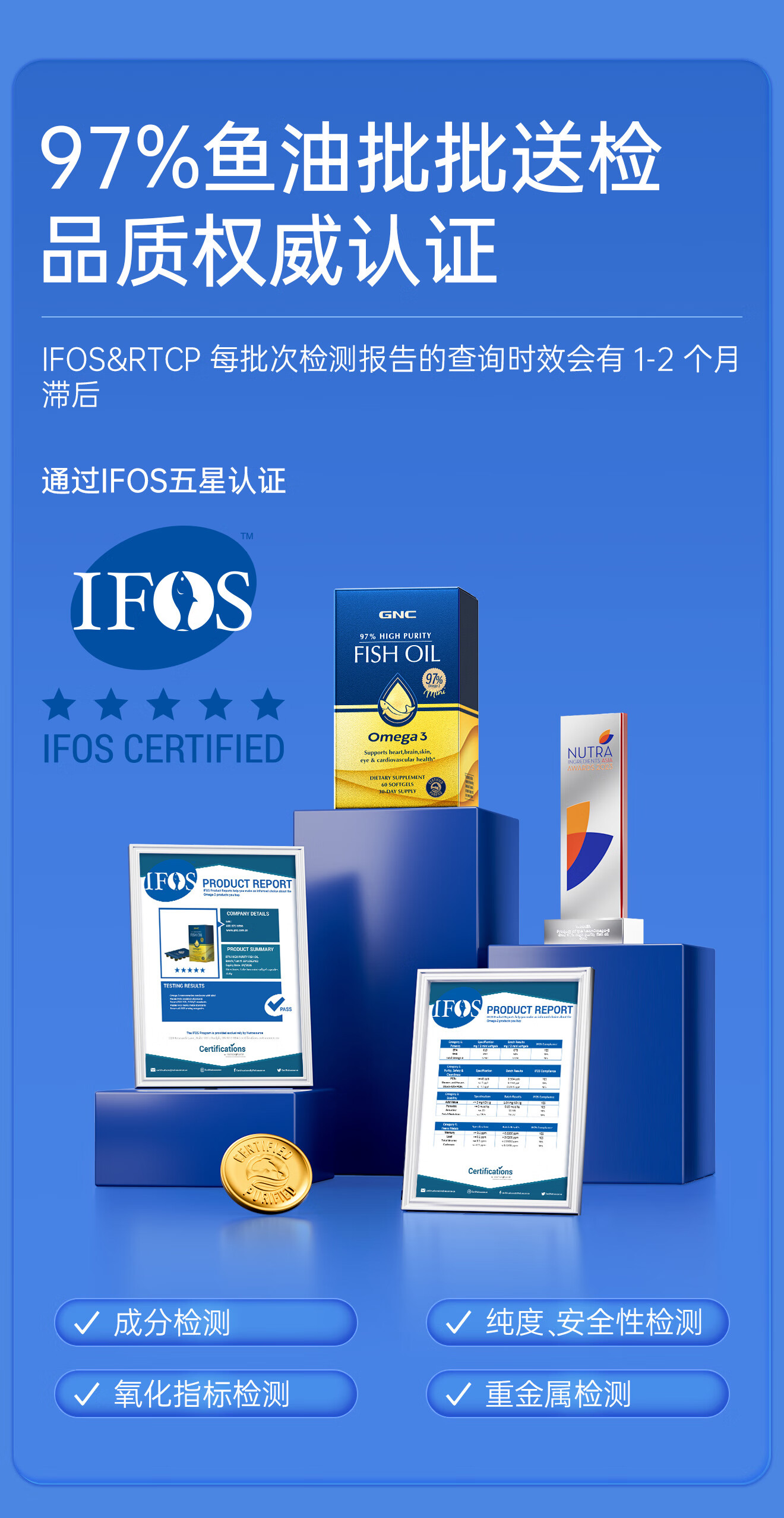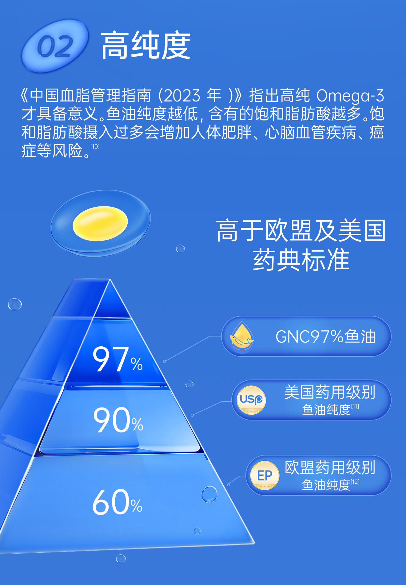 健安喜GNC健安喜97%鱼油深海高纯度高吸收 无腥深海鱼油迷你独立包装 【周期装90天量】 60粒*3盒