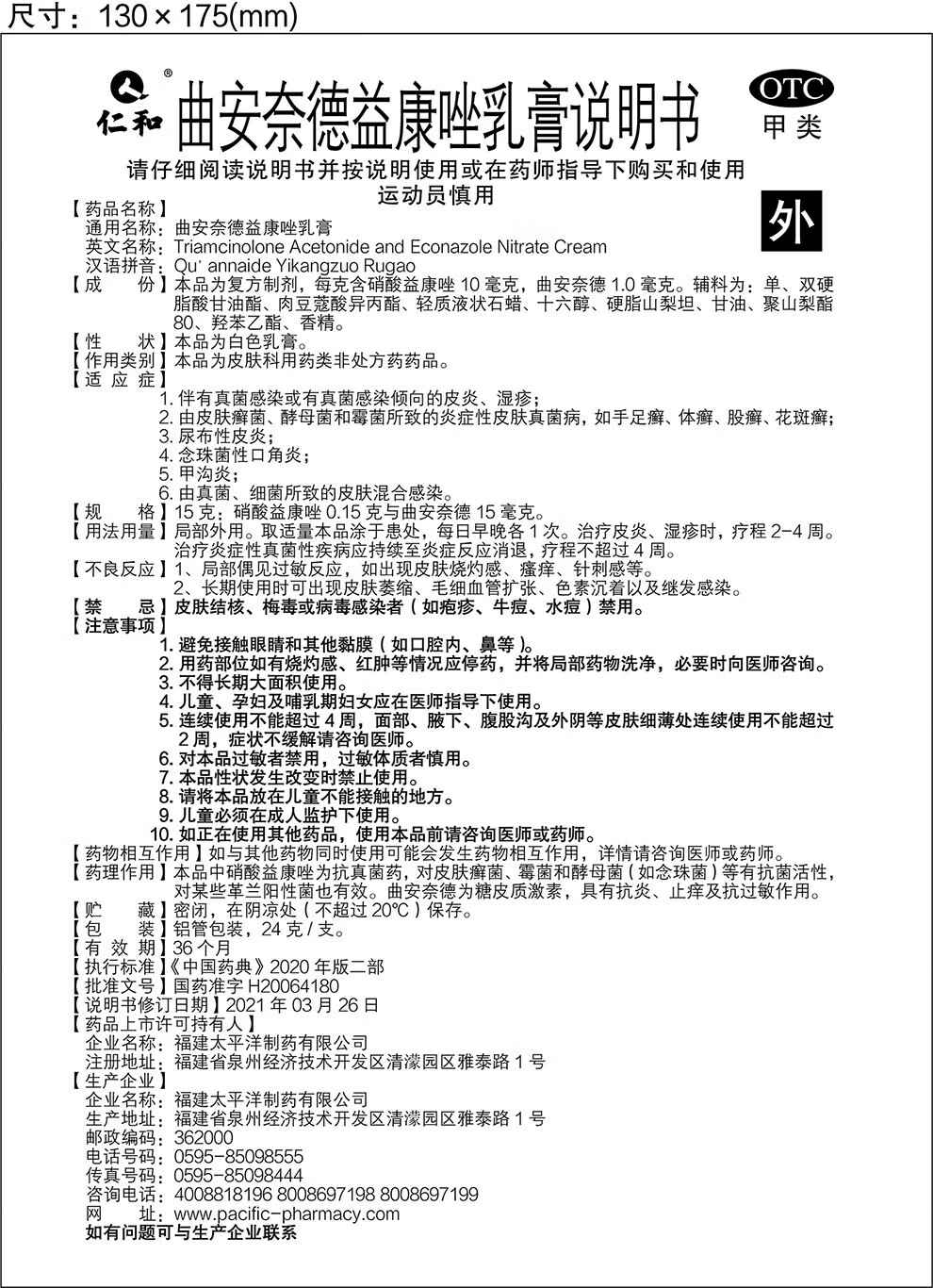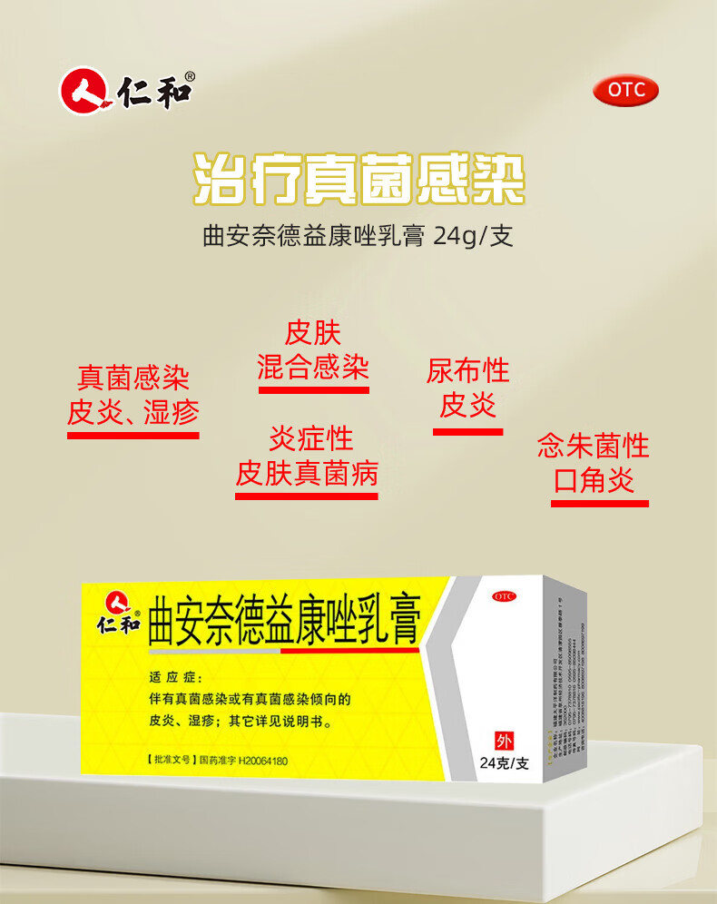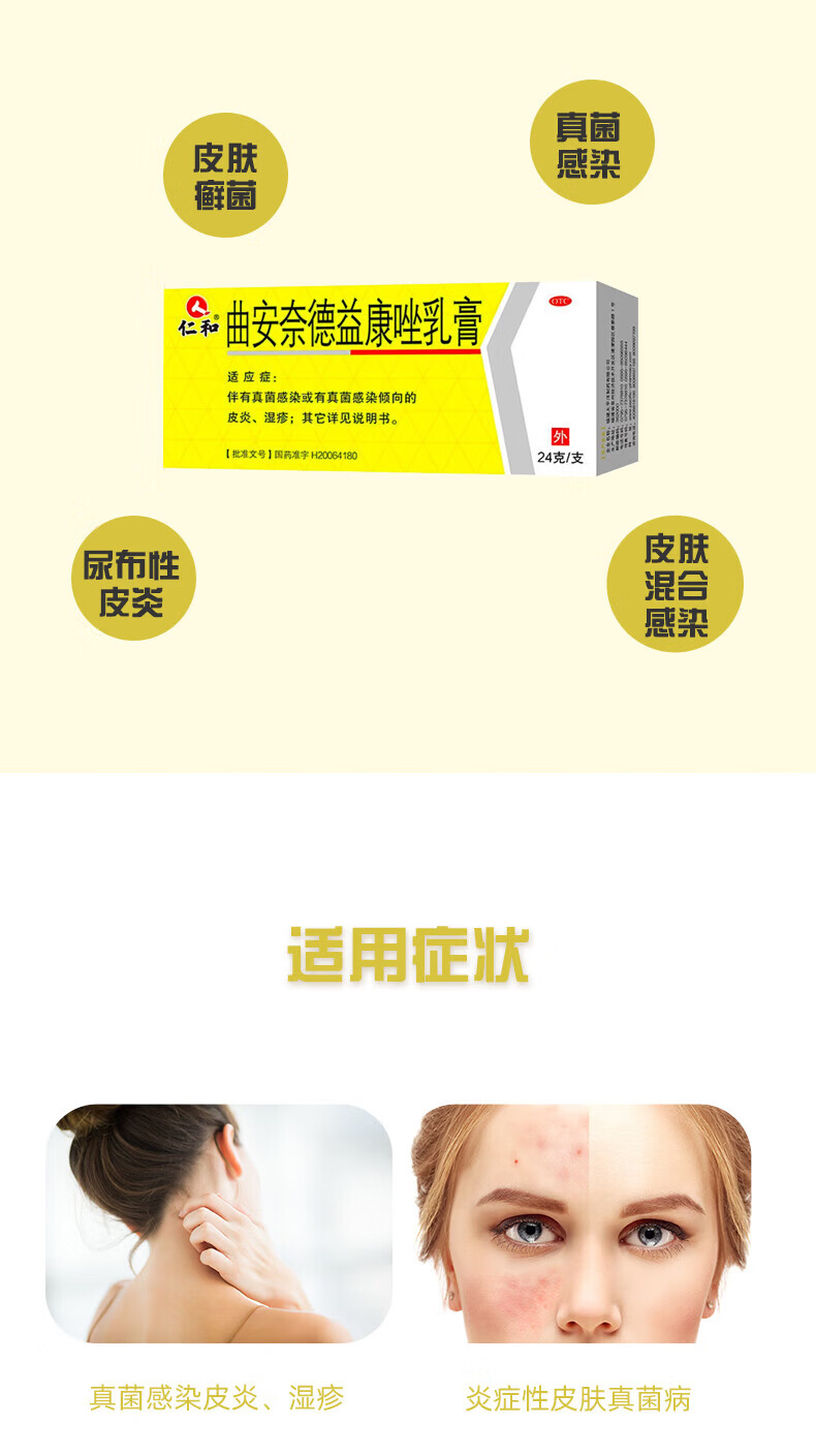[仁和]曲安奈德益康唑乳膏 24g 1支装 皮肤炎症用药 真菌感染 甲沟炎 皮炎 湿疹 手足癣体癣