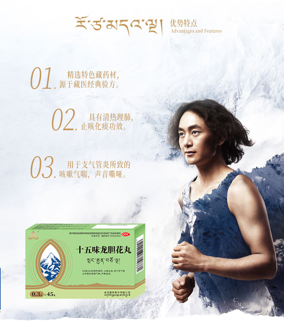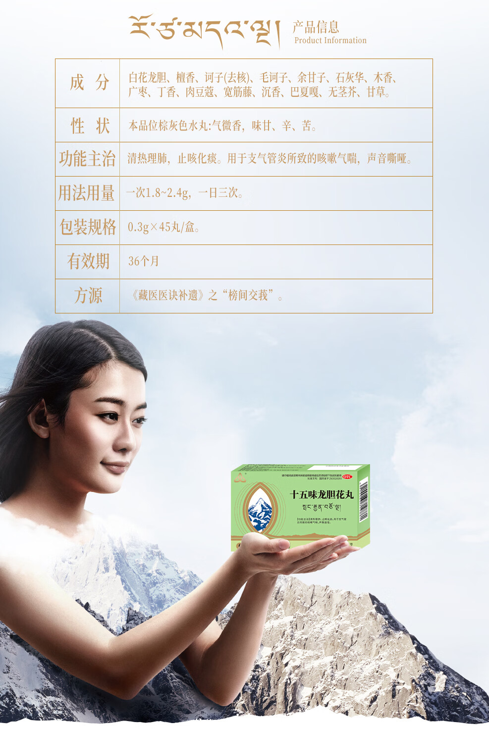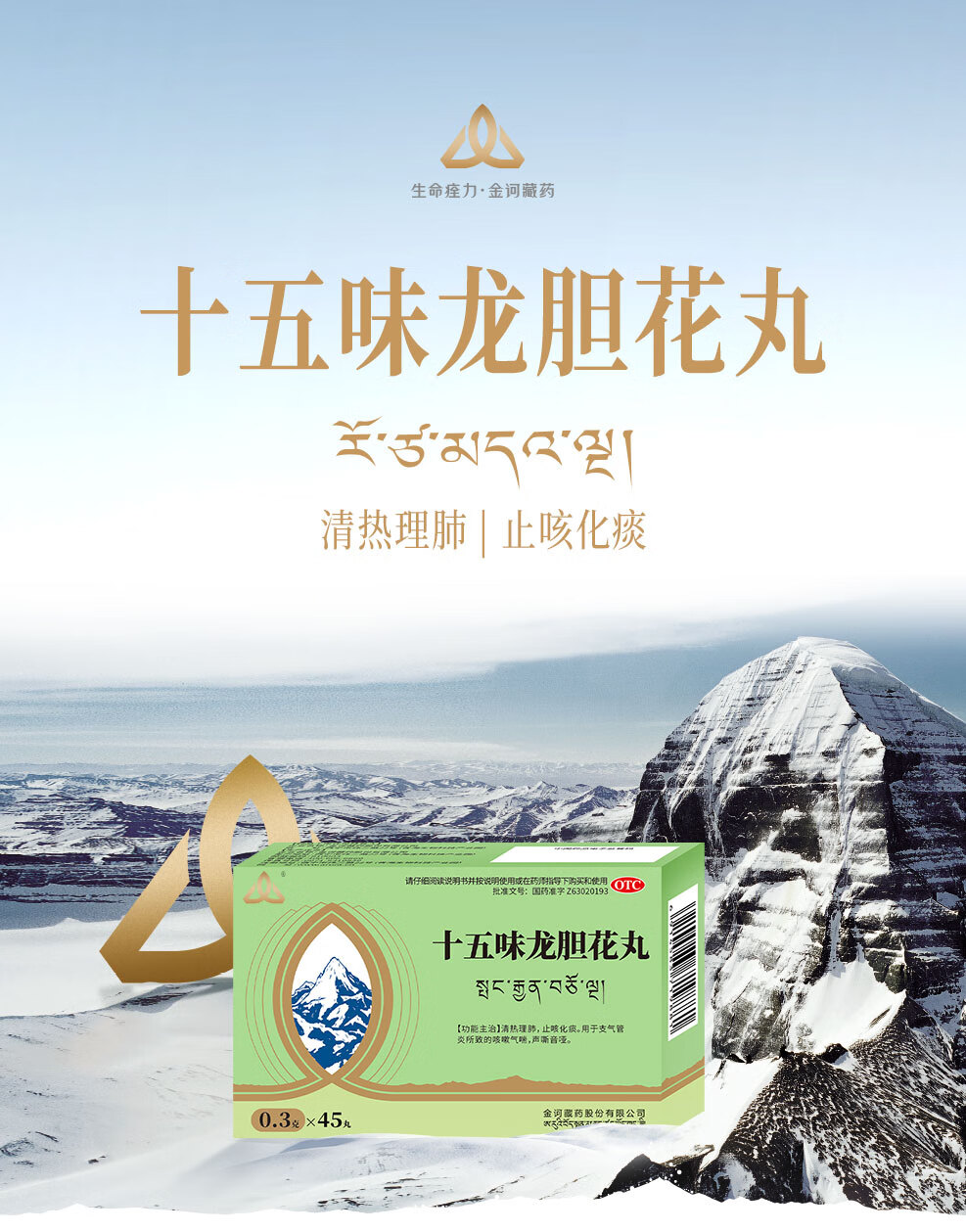 [金诃]十五味龙胆花丸 0.3g*45丸 1盒装 0.3g*45丸 清热理肺 止咳化痰 支气管炎所致的咳嗽气喘大药房旗舰店 赠维生素C