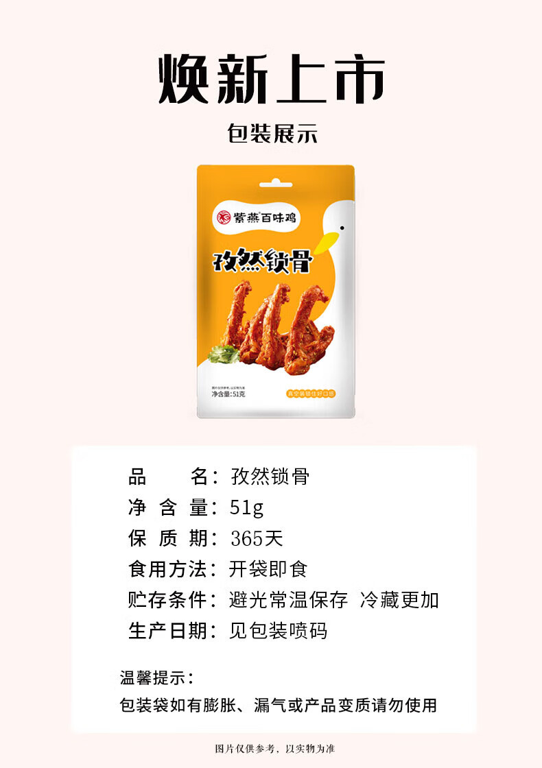 紫燕百味鸡孜然锁骨零食预制菜休闲卤味熟食即鸭肉网红鸭锁骨开袋51g